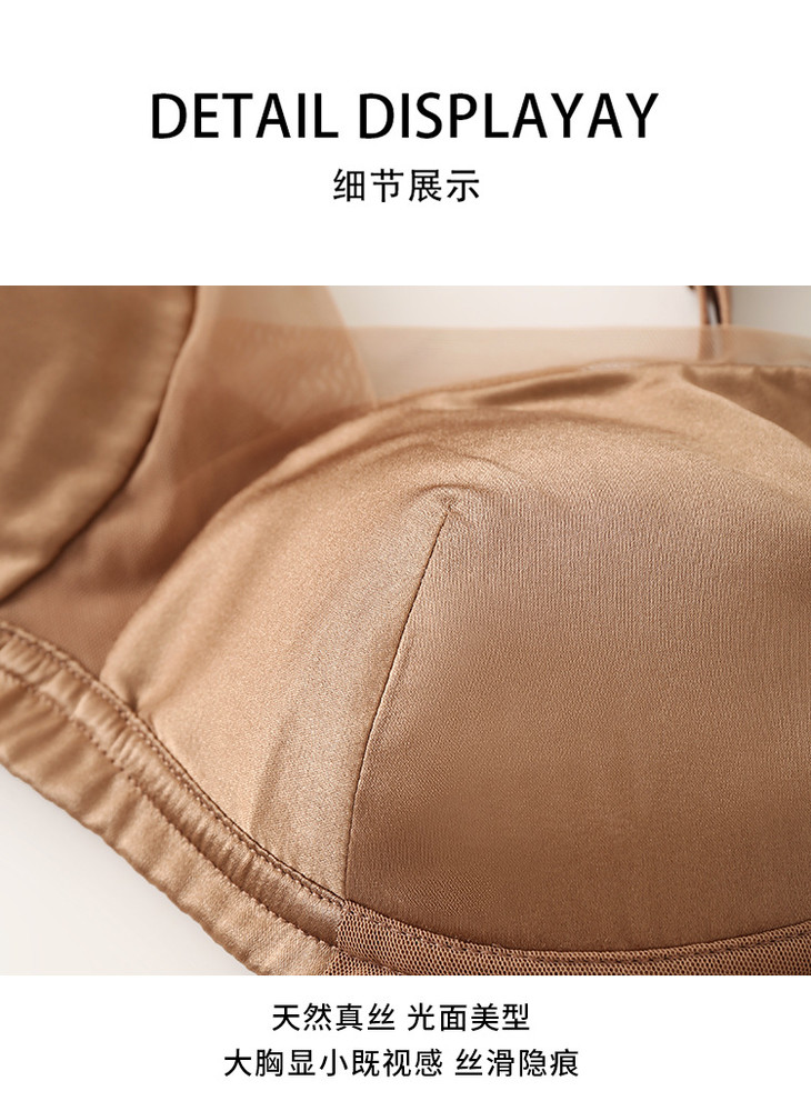 19姆米缎面真丝超薄无钢圈 桑蚕丝深V聚拢网纱拼接文胸 TG02S276