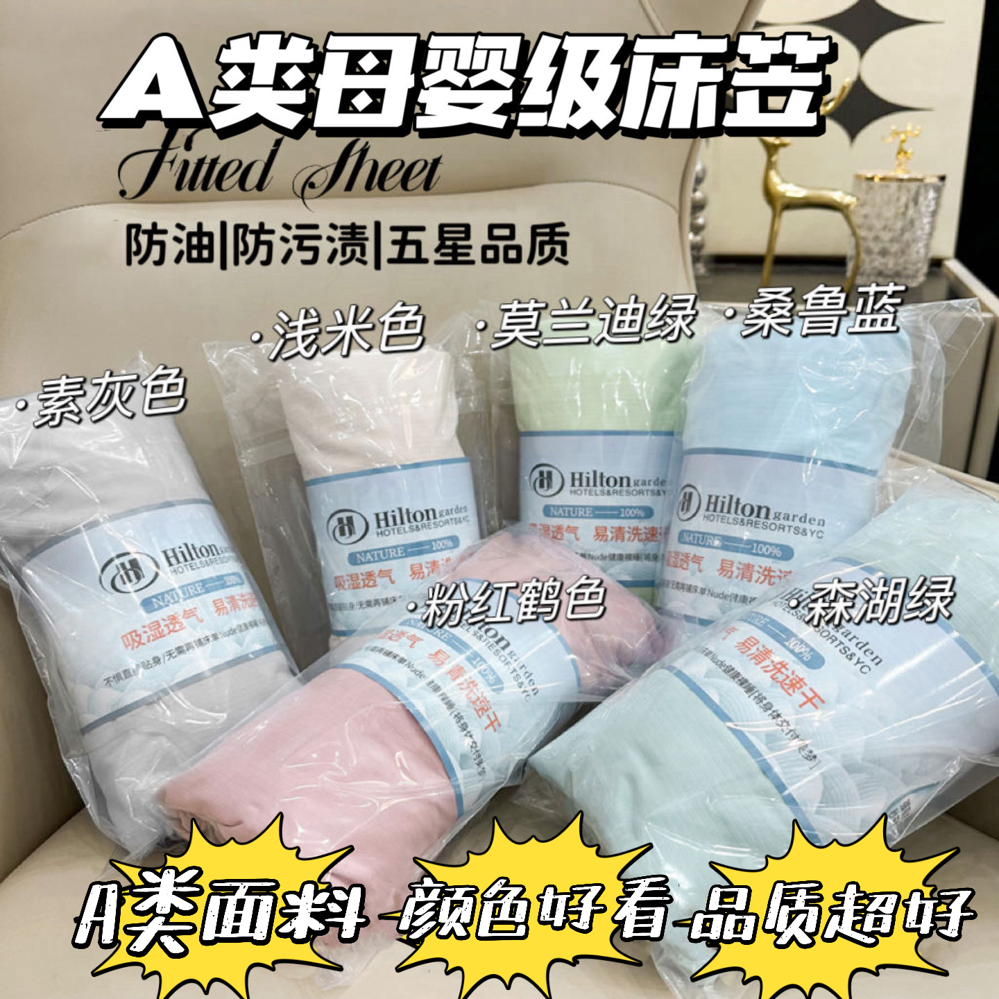【希尔顿花园同款床笠】速干防油污 吸湿透气 A类母婴级 防滑不移位