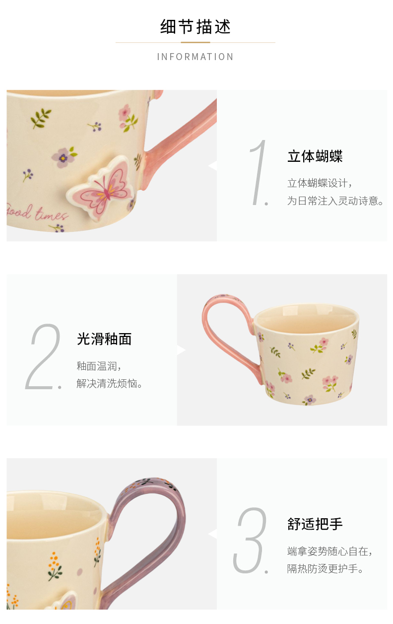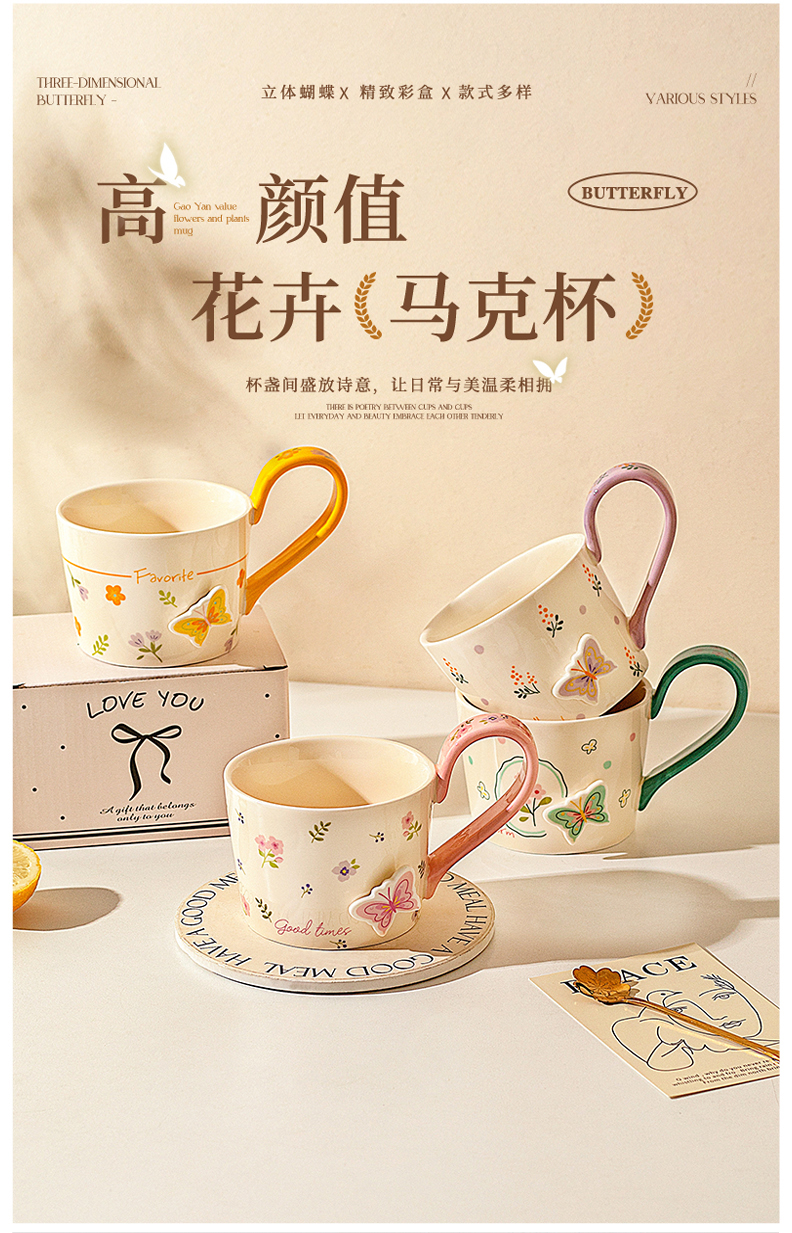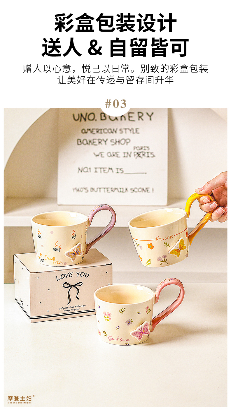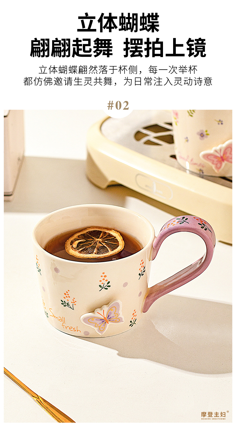 摩登主妇浮雕马克杯高颜值陶瓷杯家用漂亮喝水杯咖啡杯子早餐杯