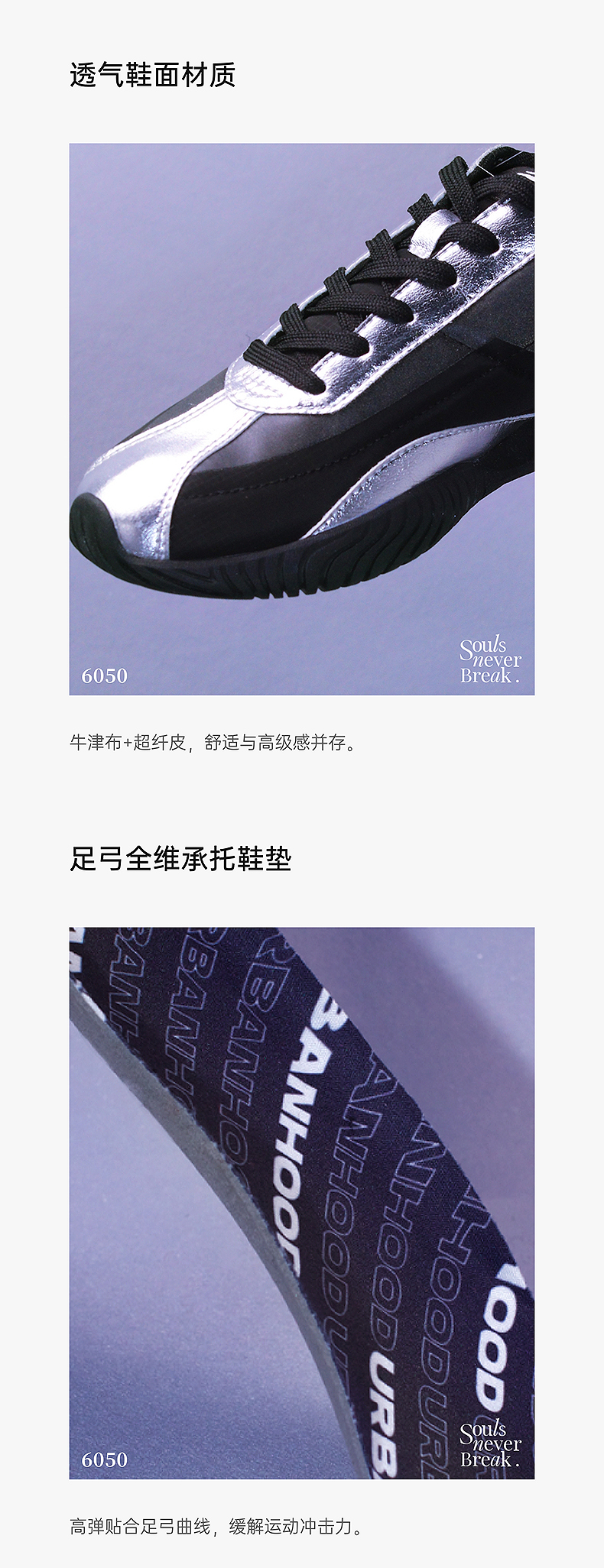 URBANHOOD 6050系列潮流舒适防滑耐磨低帮薄底运动休闲复古慢跑鞋