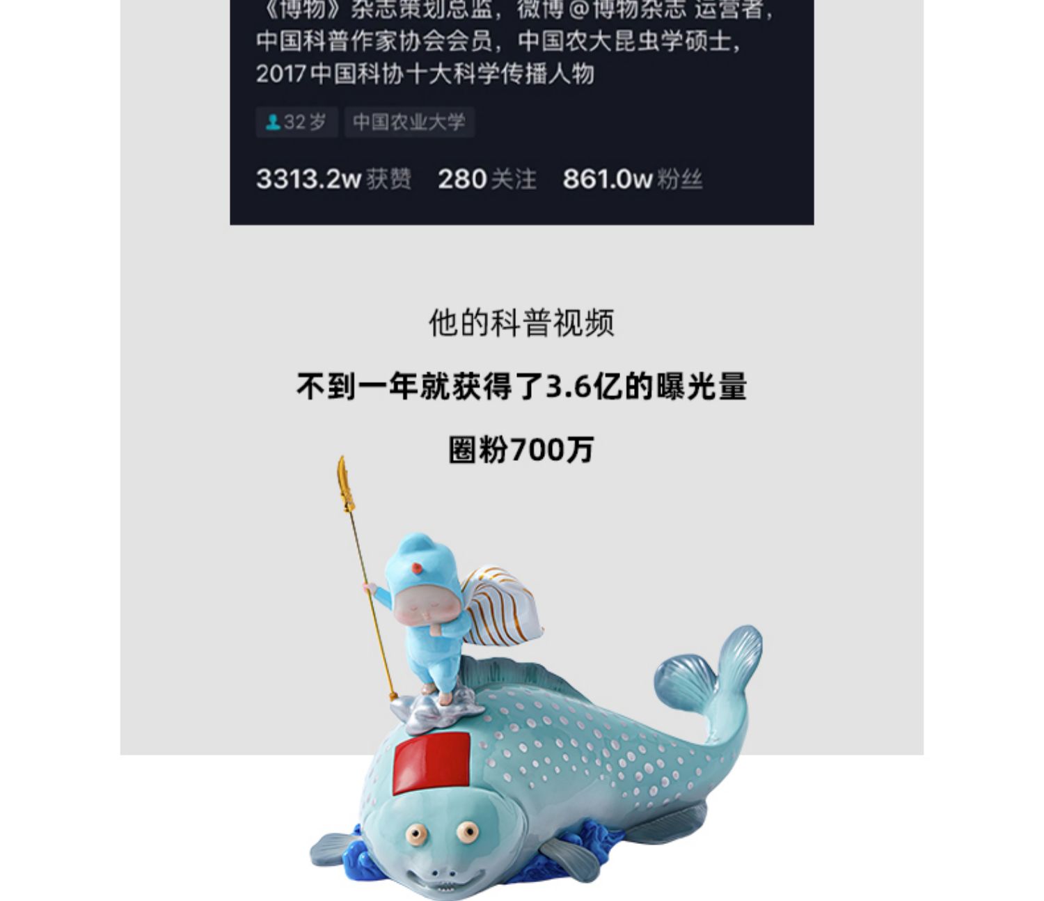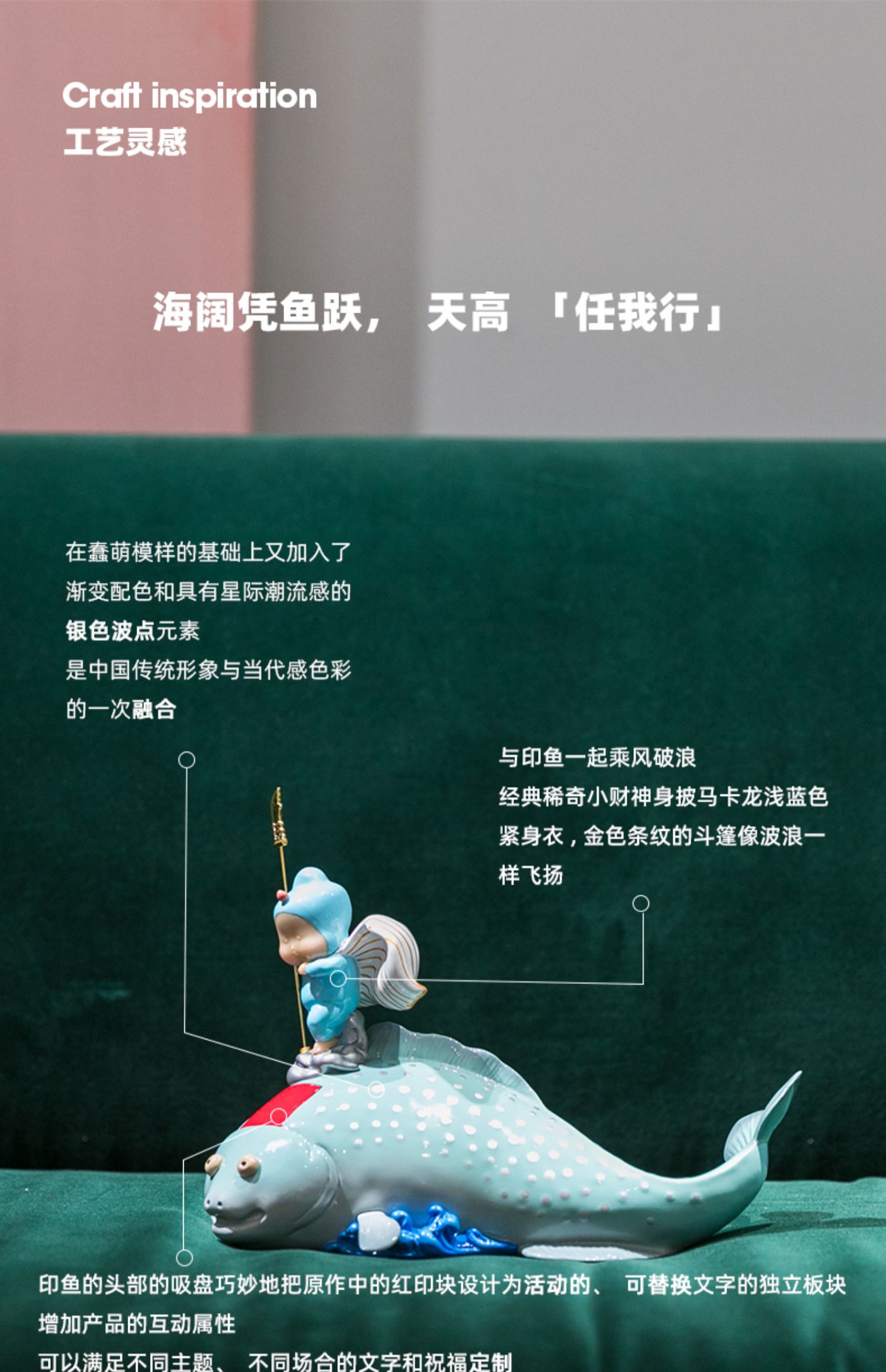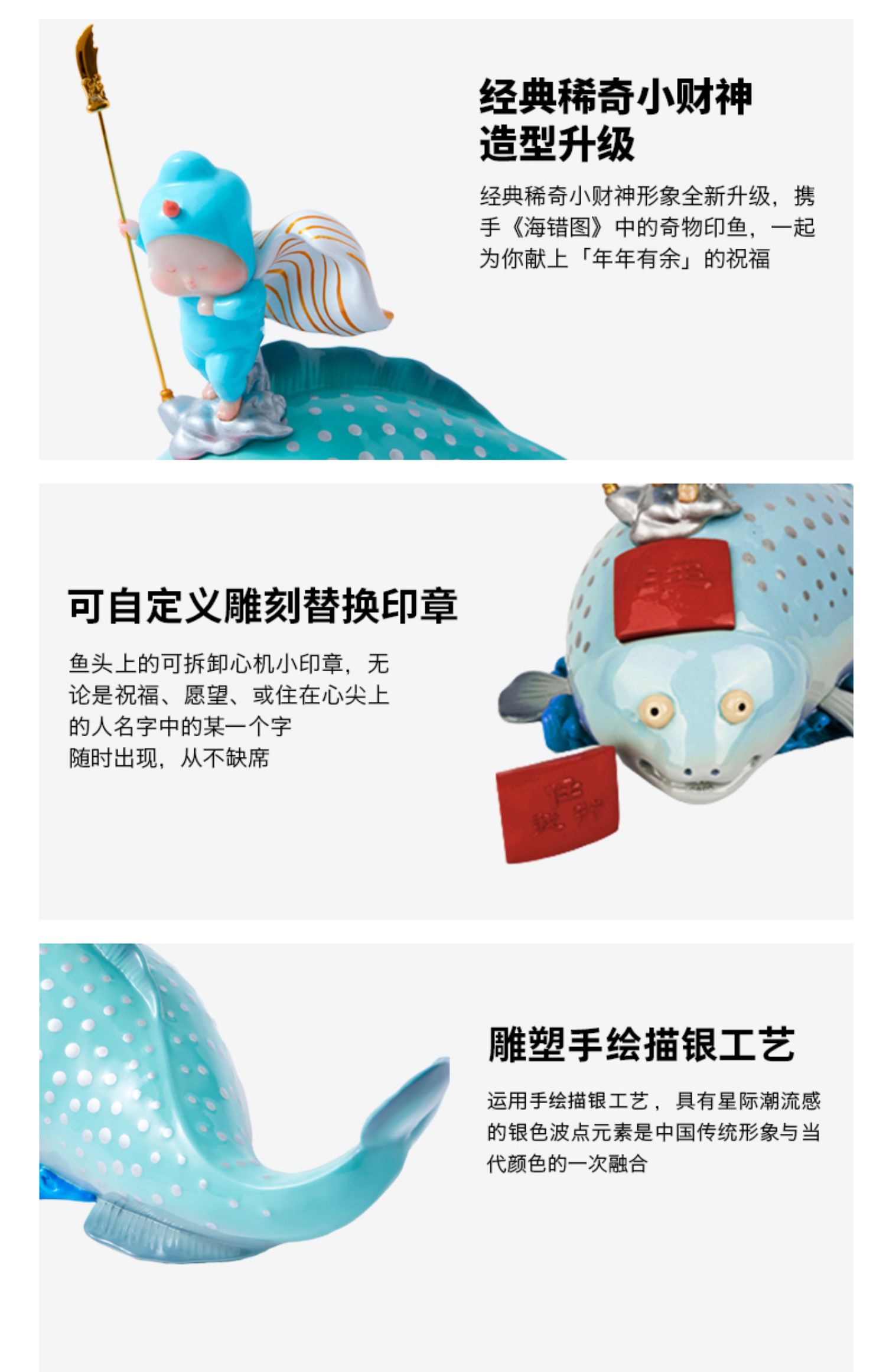稀奇艺术瞿广慈海错图作者无穷小亮联名款印鱼《任我行》雕塑摆件