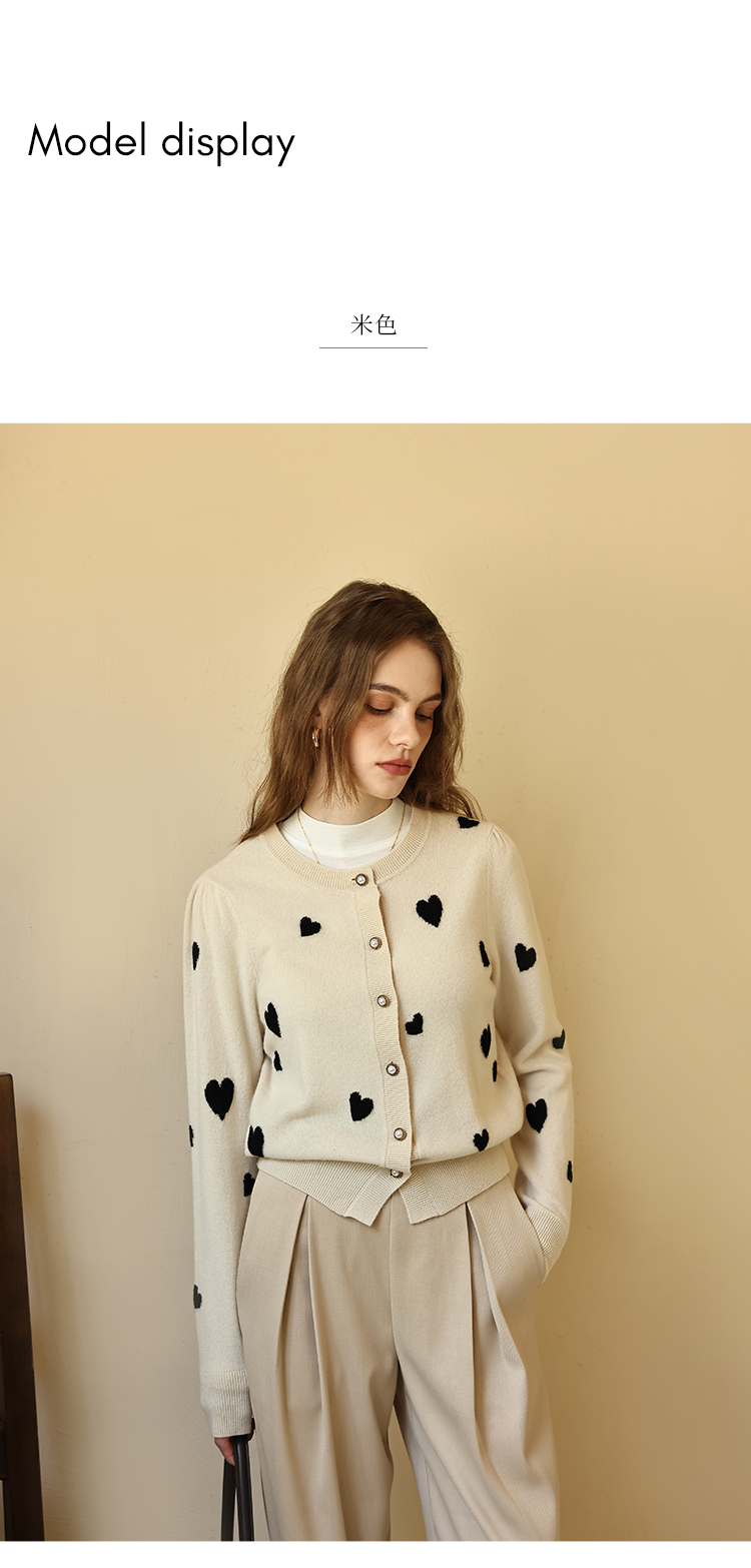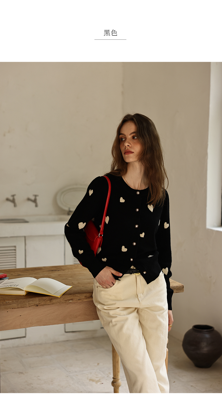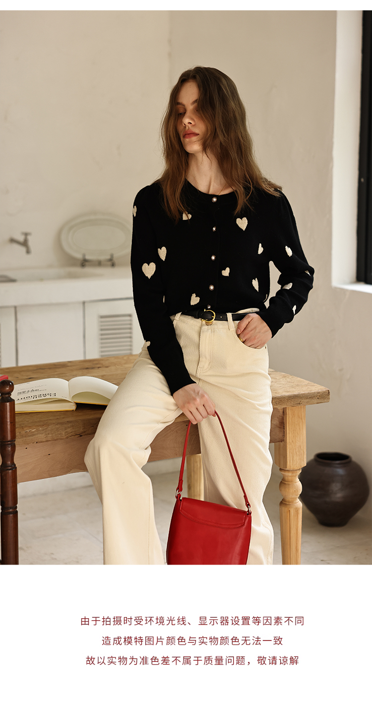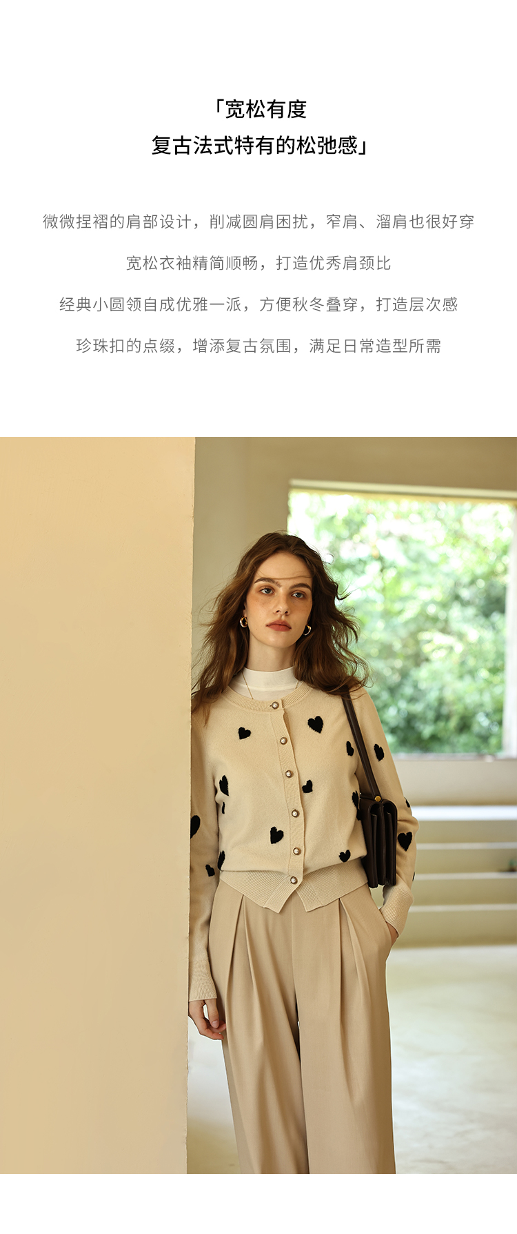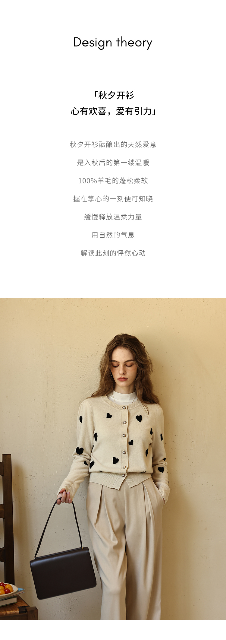 HeyDress爱心针织开衫女秋季法式复古羊毛衫毛衣上衣