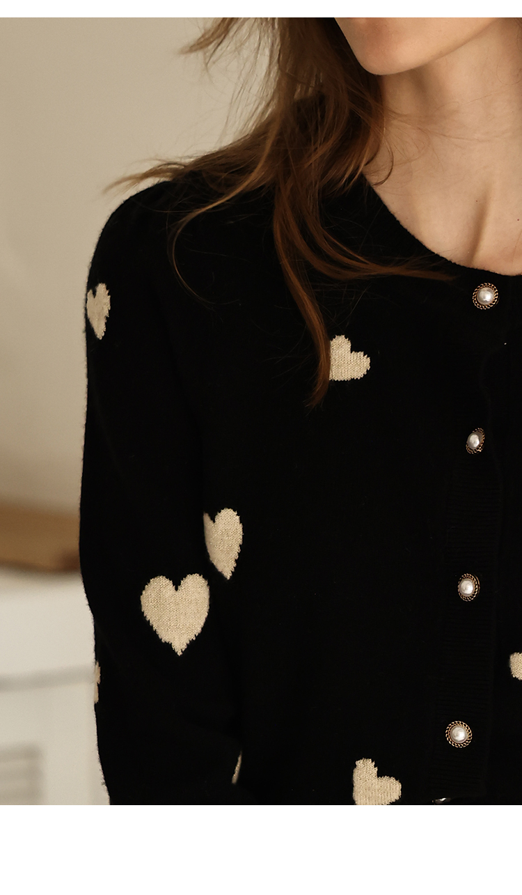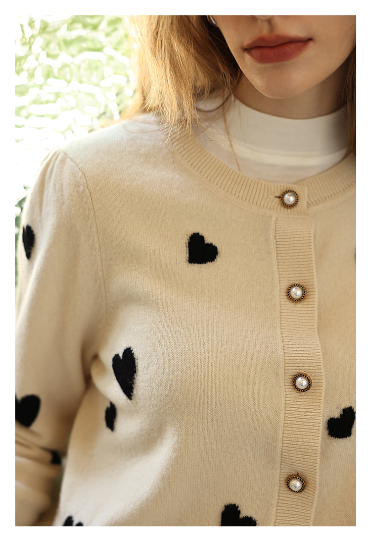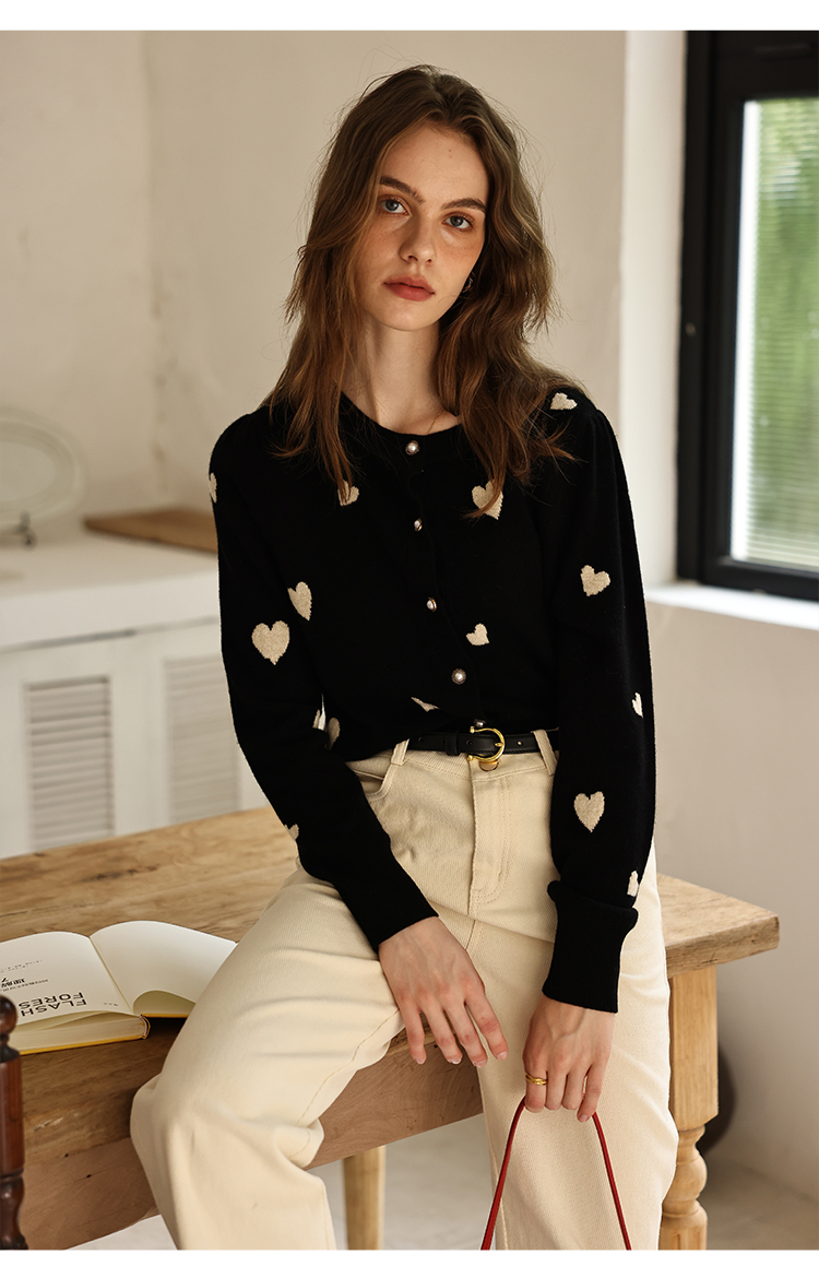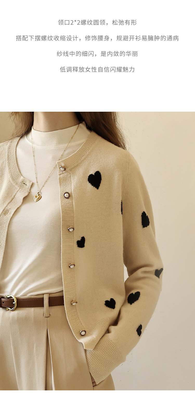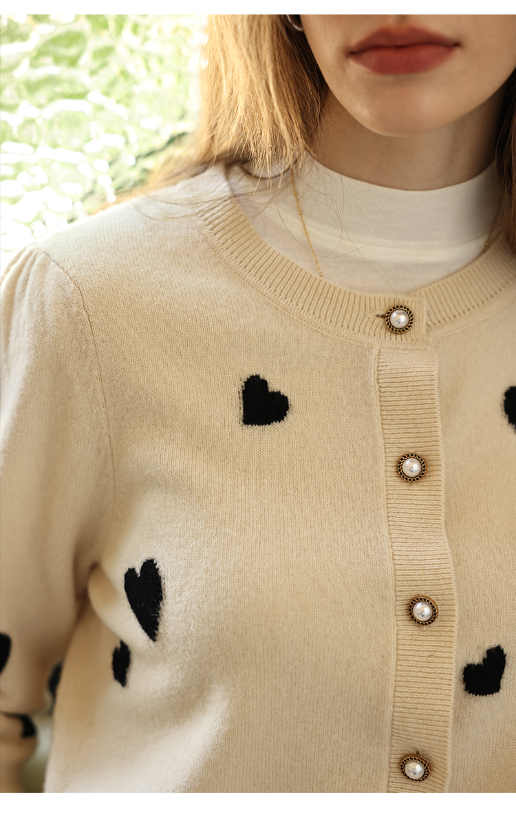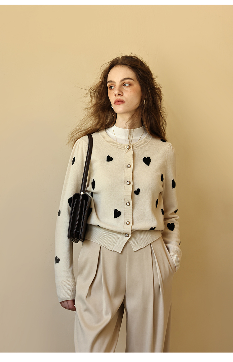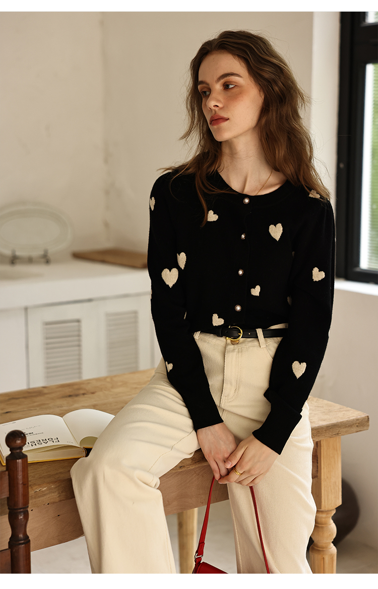 HeyDress爱心针织开衫女秋季法式复古羊毛衫毛衣上衣
