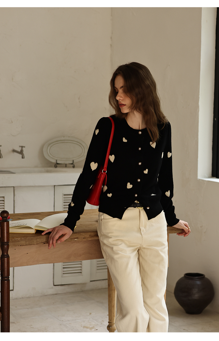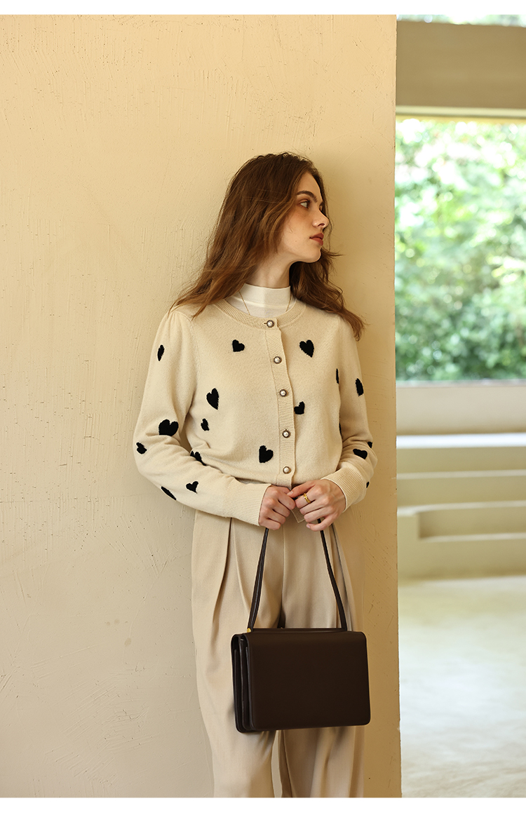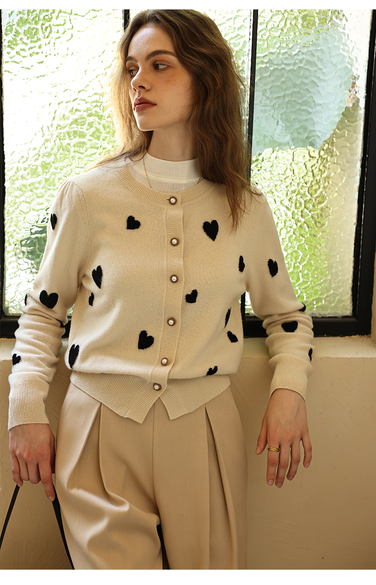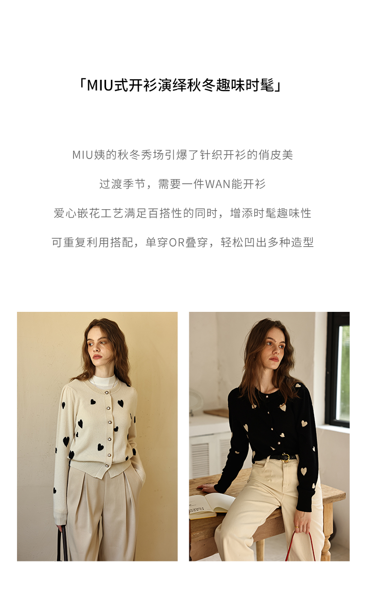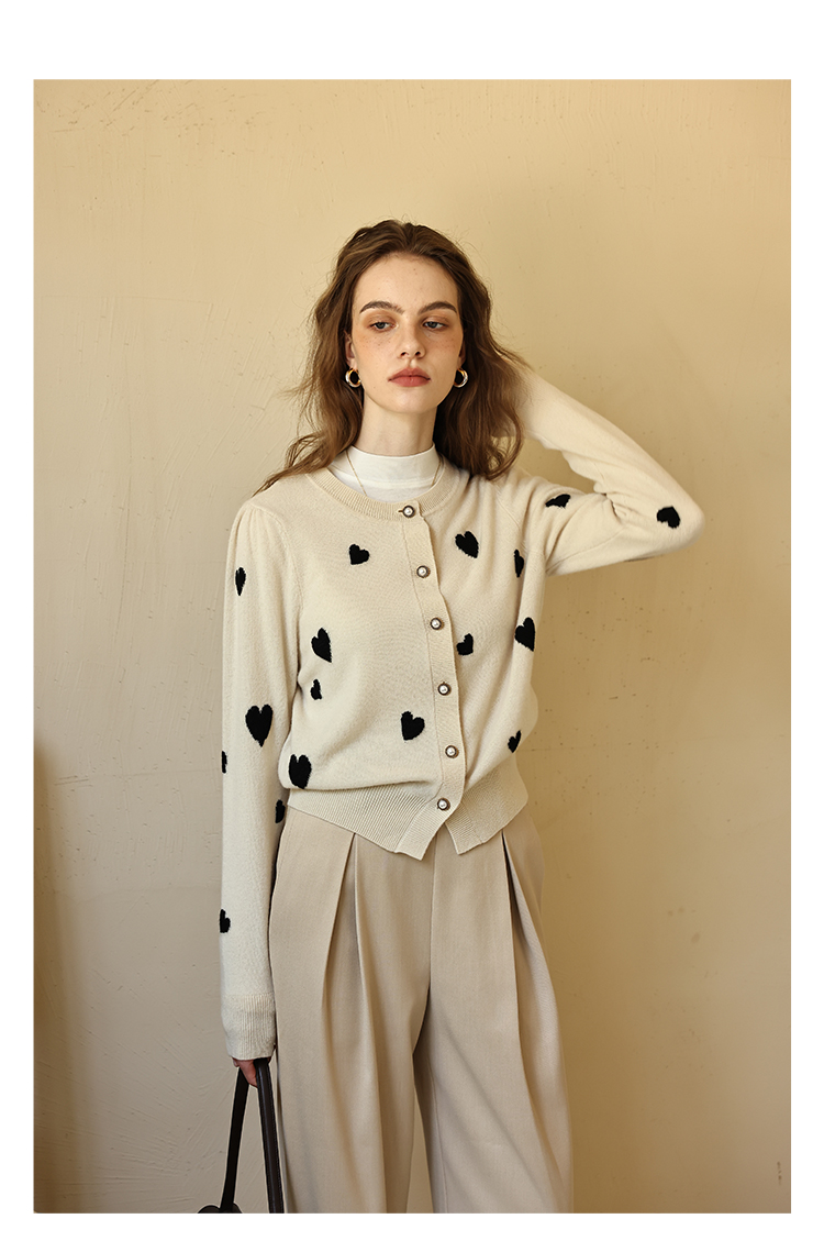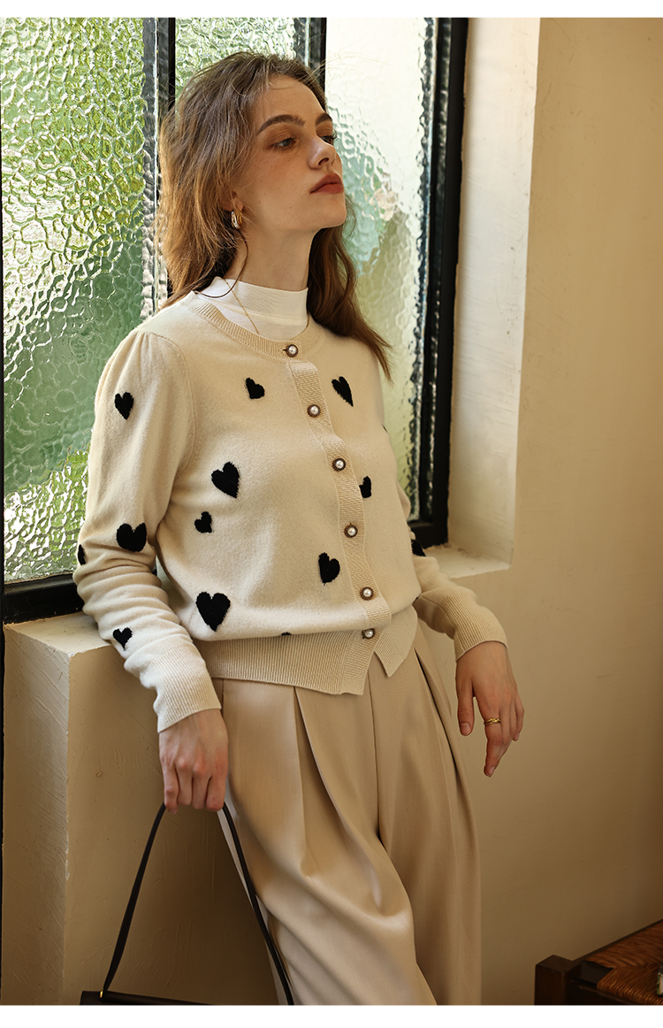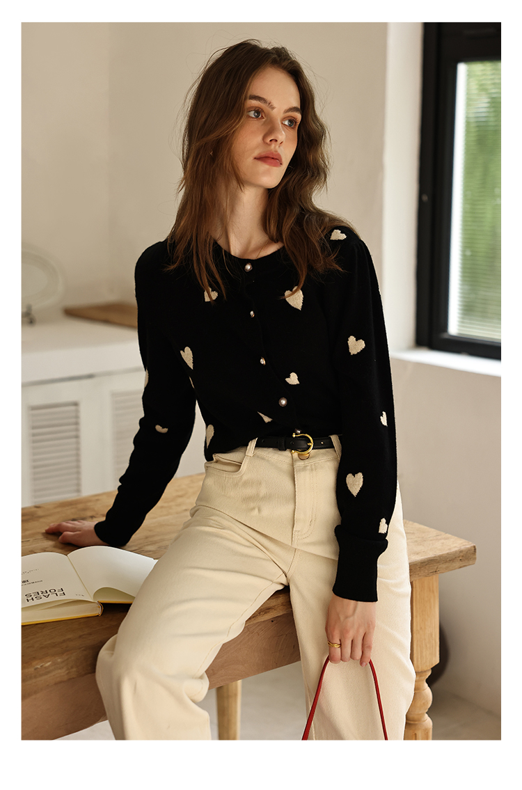 HeyDress爱心针织开衫女秋季法式复古羊毛衫毛衣上衣