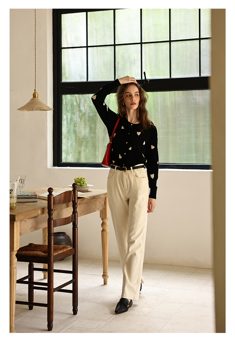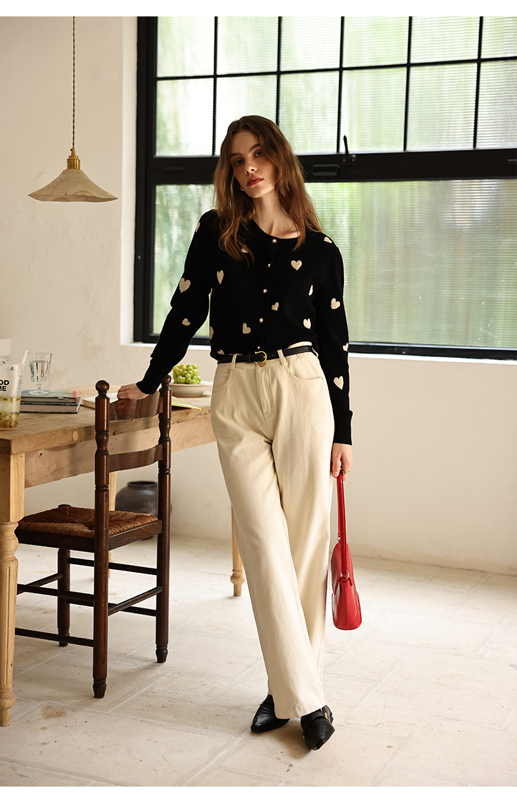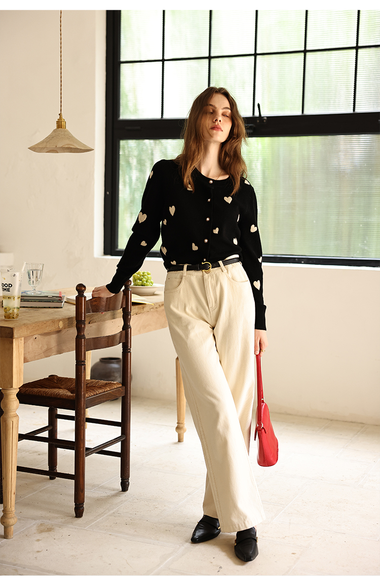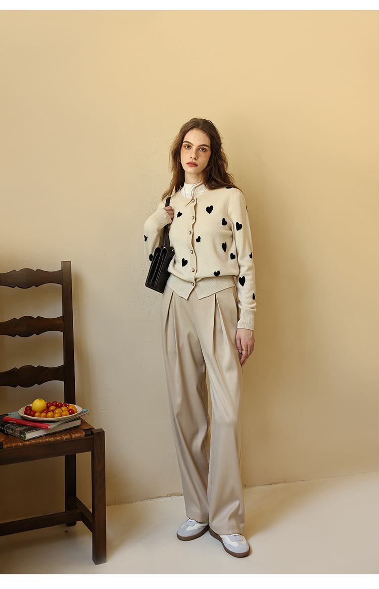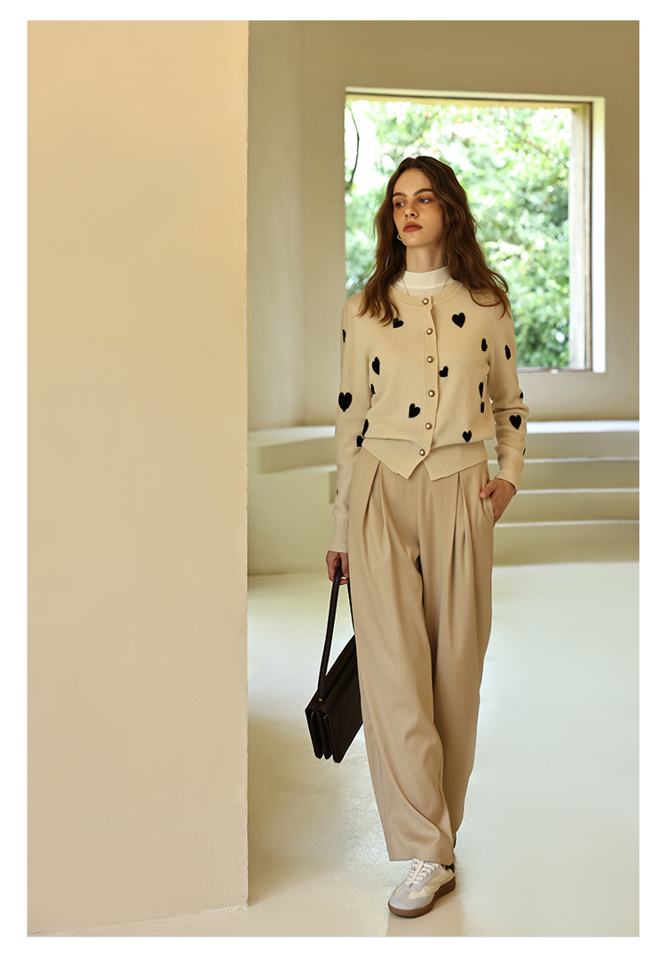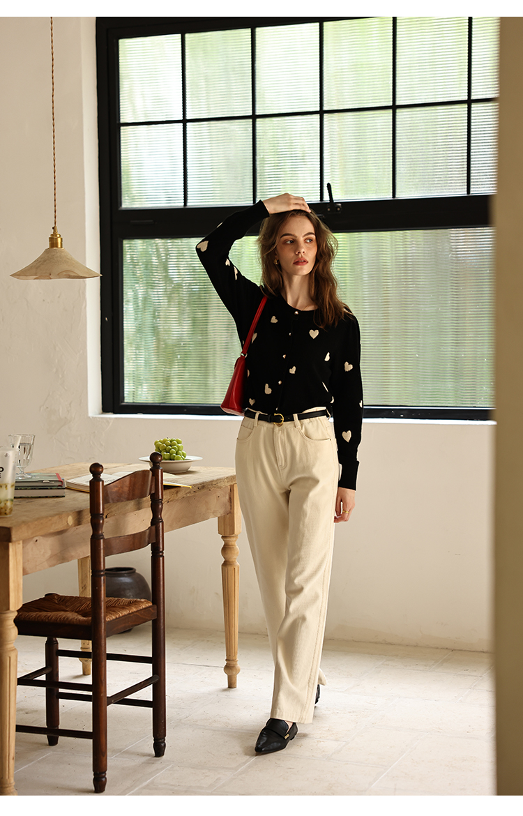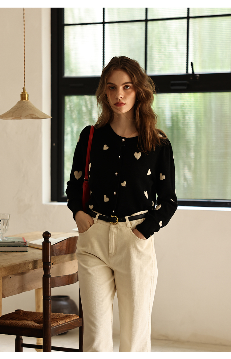 HeyDress爱心针织开衫女秋季法式复古羊毛衫毛衣上衣
