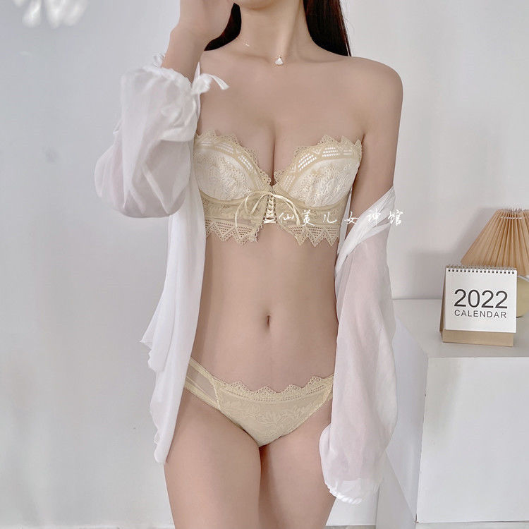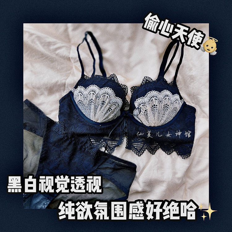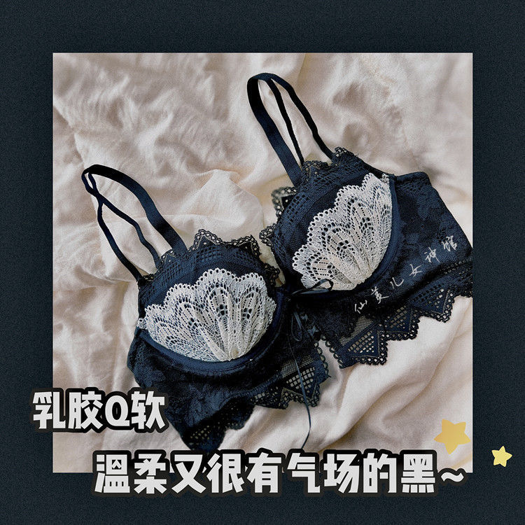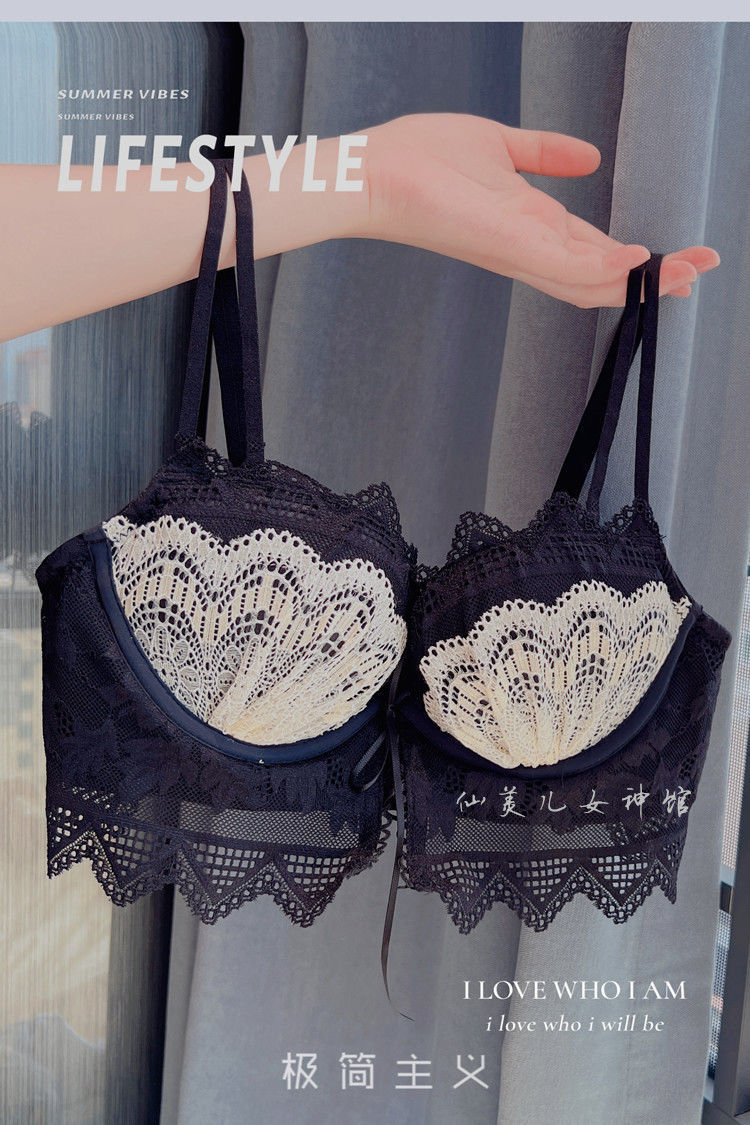 【温柔又很有气场的内衣】黛唯梵撞色蕾丝内衣女小胸聚拢无钢圈性感无肩带胸罩上托收副乳文胸
