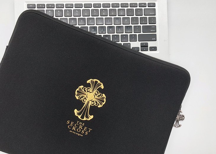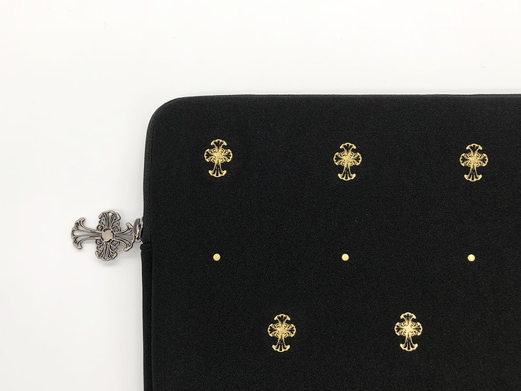 背面满排金色十字,美学上完美对称,强迫症患者的福音!服帖的拉链设计搭配十字扣,可爱个性,完美保护你的笔记本。