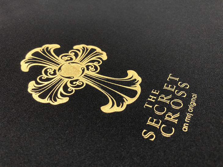系列主图腾“巴洛克黄金秘密十字架”,以烫金工艺印制在内胆包表面,金色光泽十分吸睛。