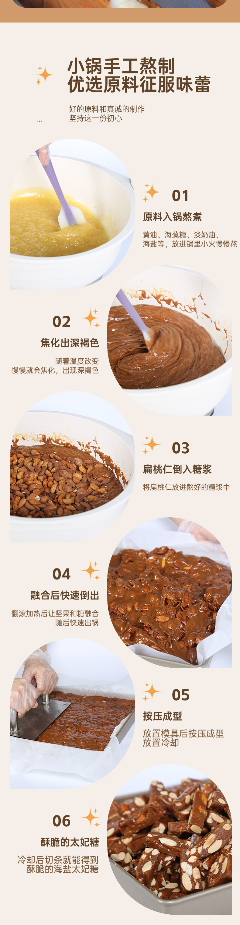 巴旦木海盐太妃糖 纯手工制作小锅熬制 不甜不腻不粘牙大果仁铺