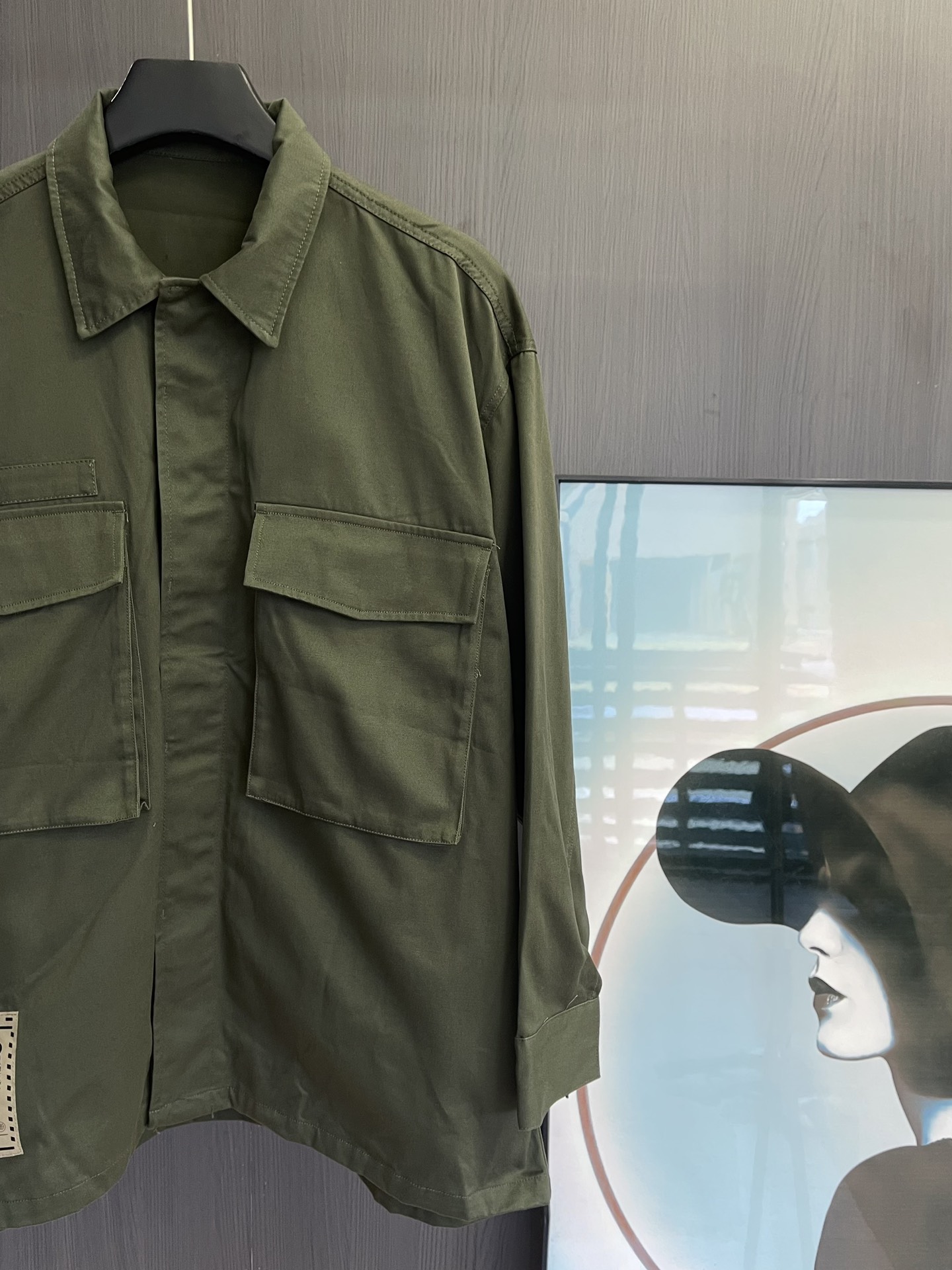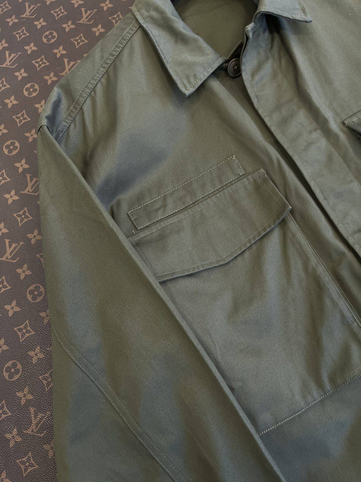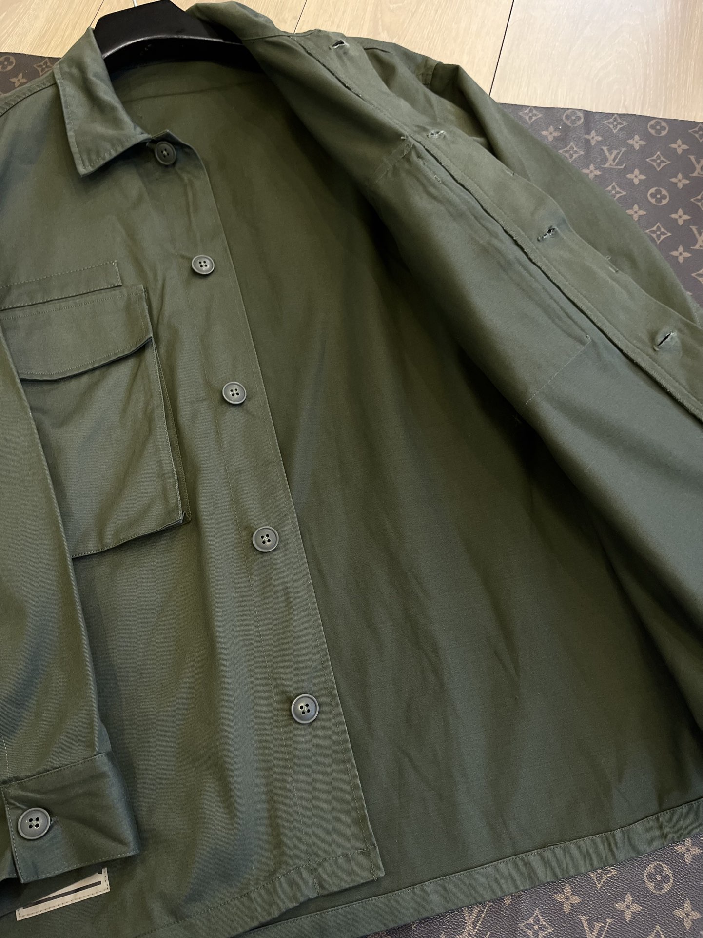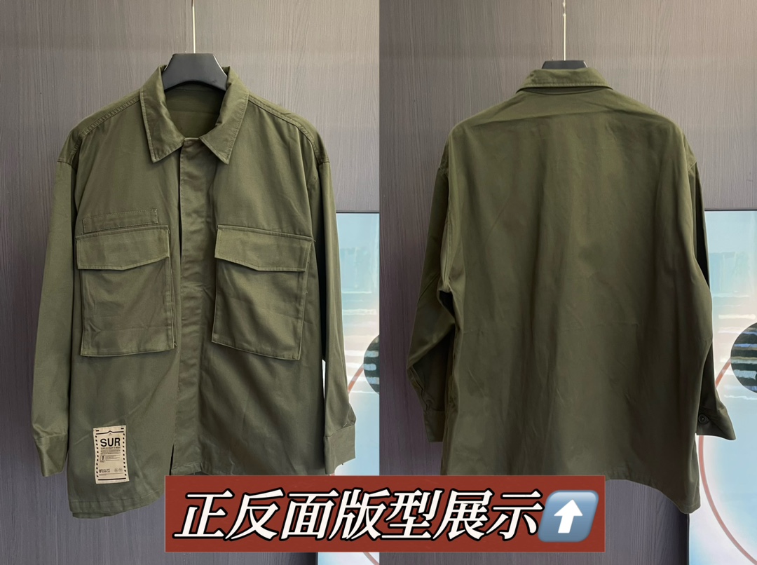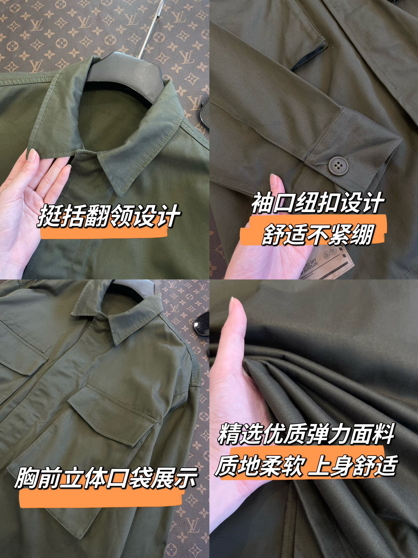 面料考究,剪裁得体,每一针每一线都透出耐磨与质感,简直是干练与帅气的最佳代言。面料是很硬挺的纯棉材质,上身立挺且舒适,整体版型偏宽松,作为夏季的外套很合适,复古绿的颜色很耐看!