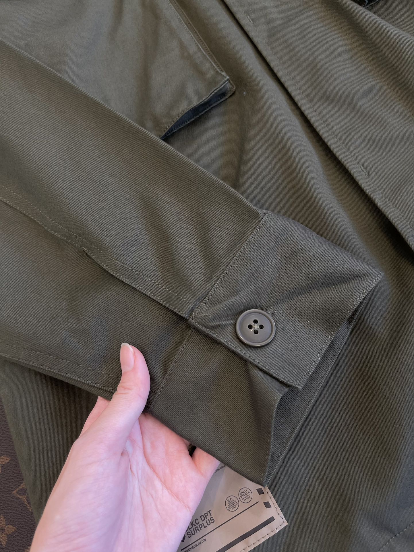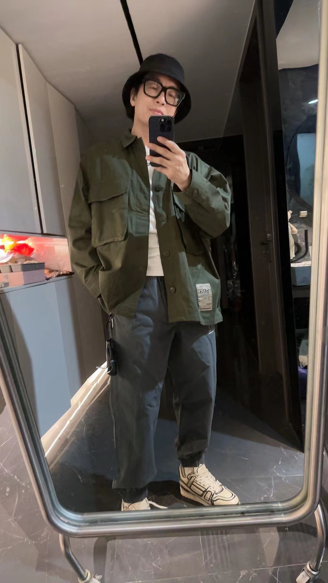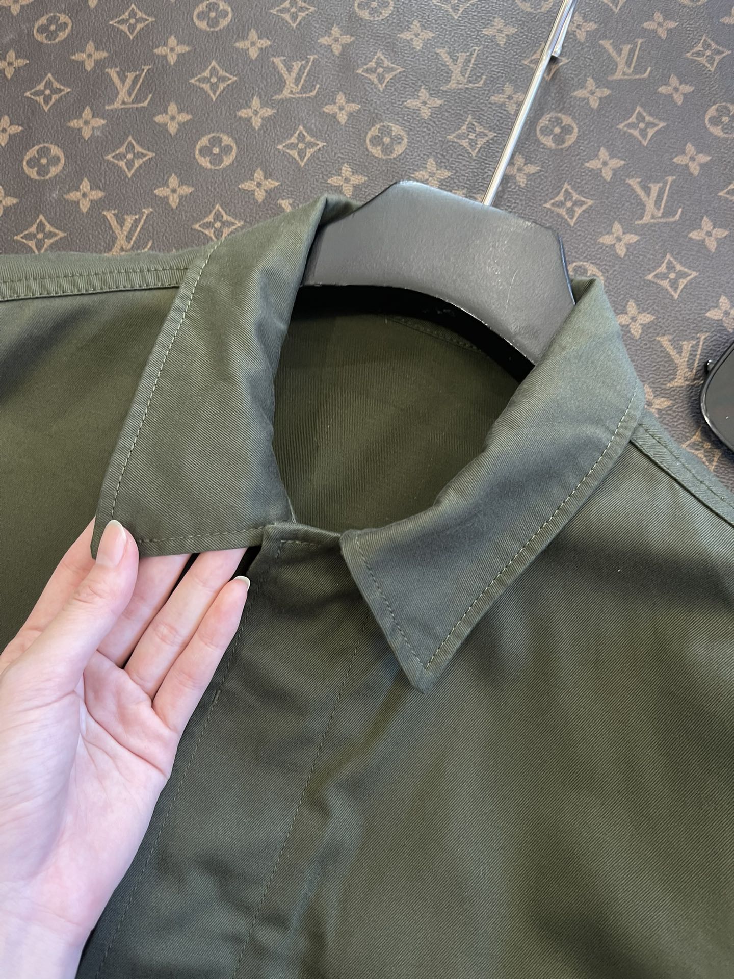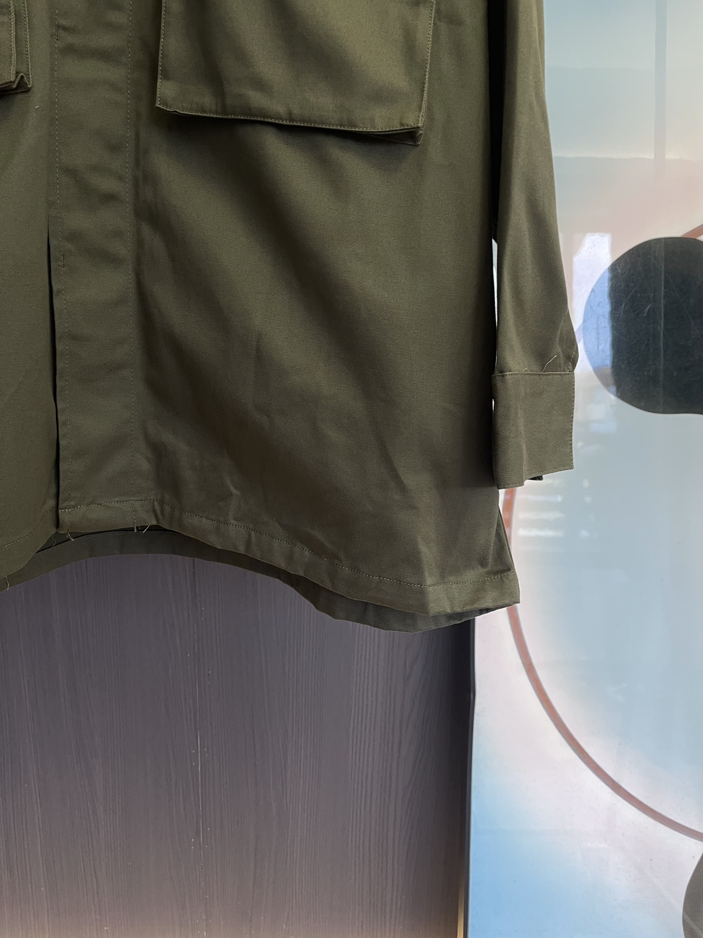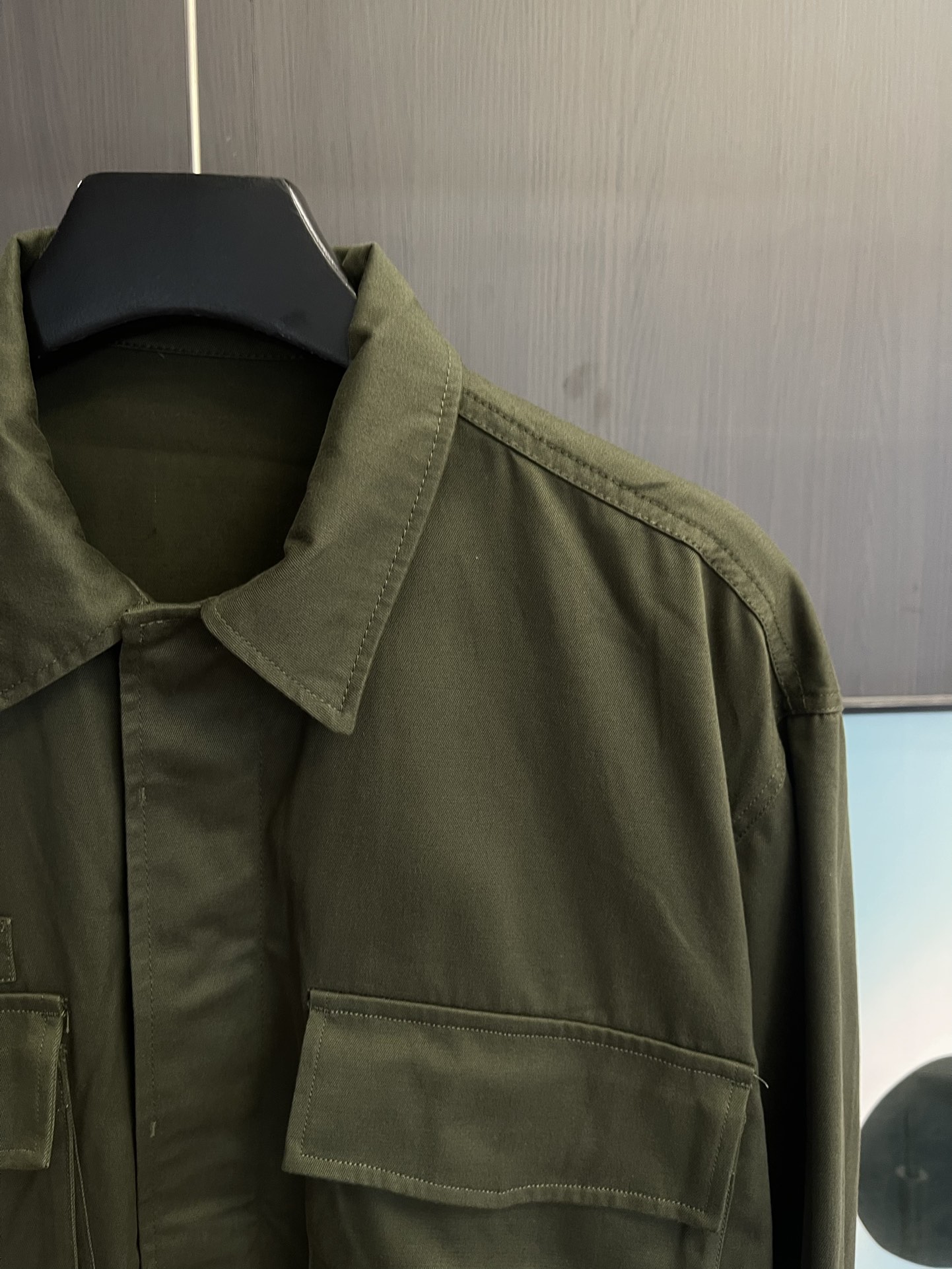 面料考究,剪裁得体,每一针每一线都透出耐磨与质感,简直是干练与帅气的最佳代言。面料是很硬挺的纯棉材质,上身立挺且舒适,整体版型偏宽松,作为夏季的外套很合适,复古绿的颜色很耐看!