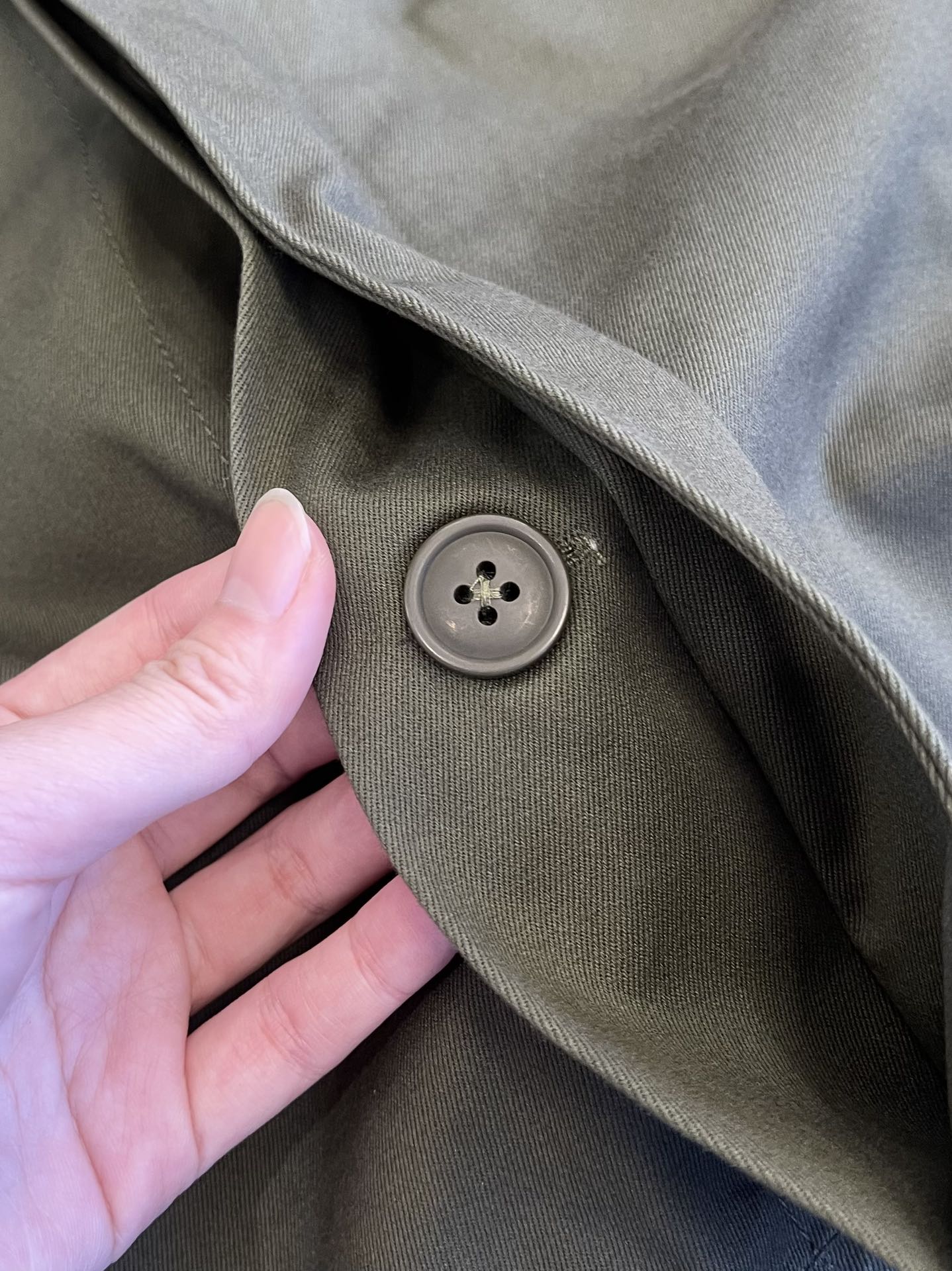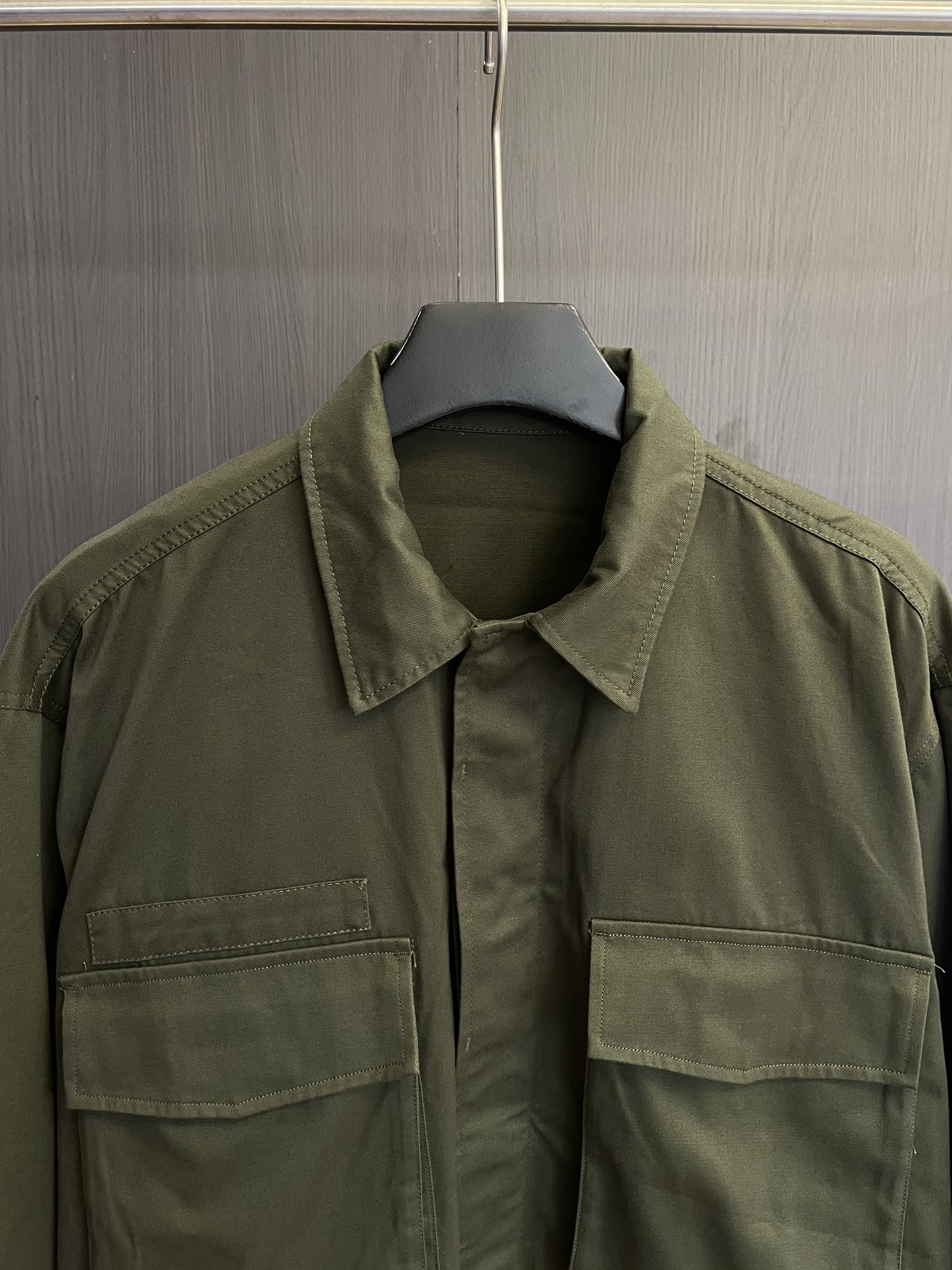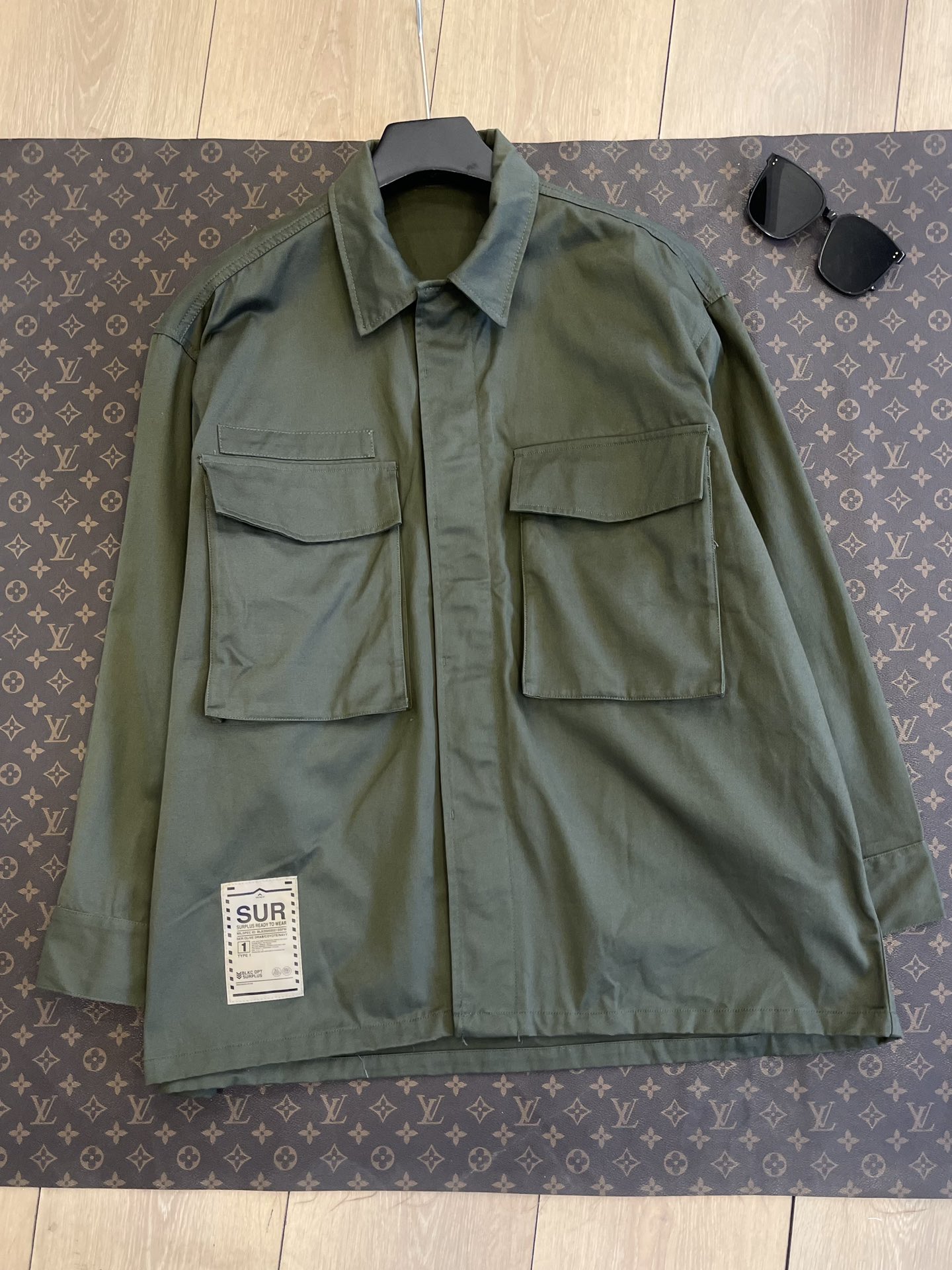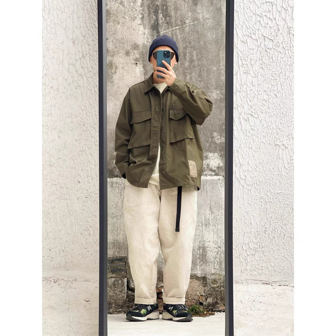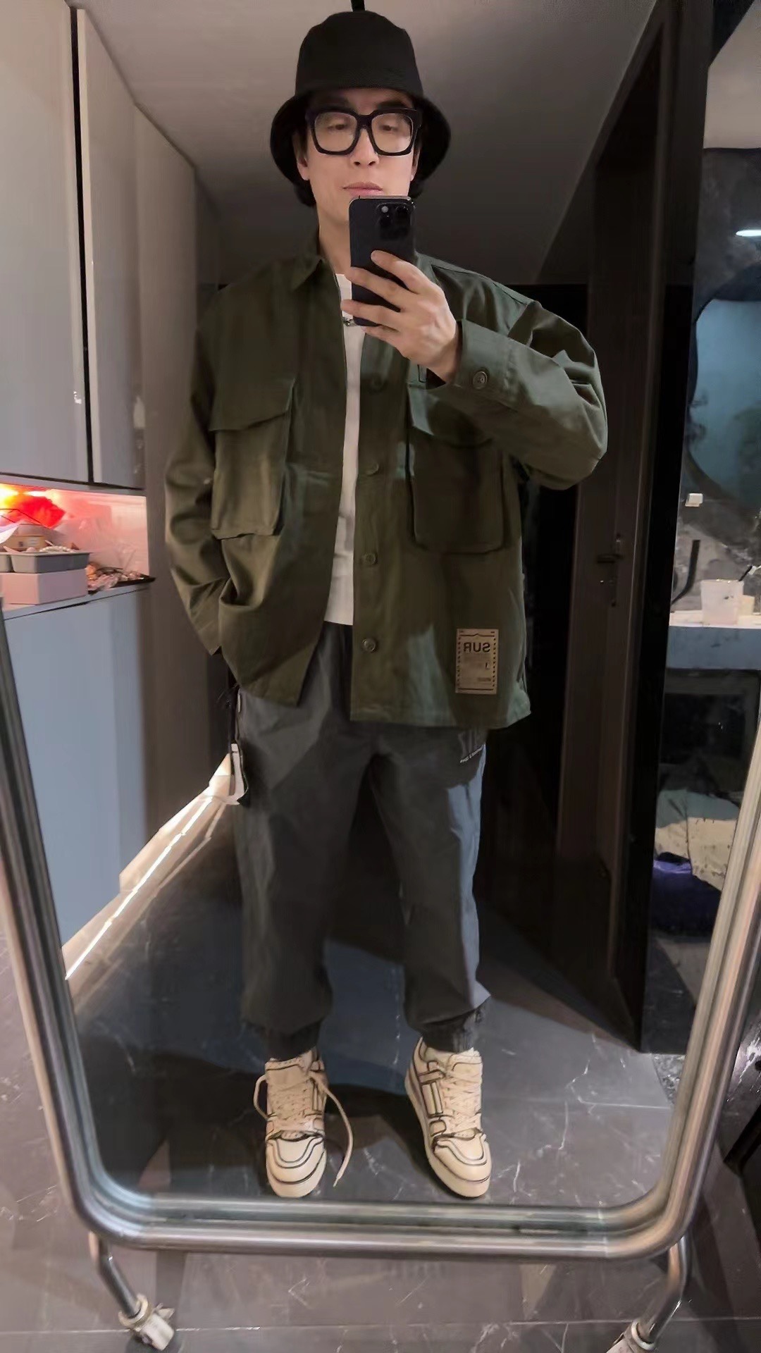 面料考究,剪裁得体,每一针每一线都透出耐磨与质感,简直是干练与帅气的最佳代言。面料是很硬挺的纯棉材质,上身立挺且舒适,整体版型偏宽松,作为夏季的外套很合适,复古绿的颜色很耐看!