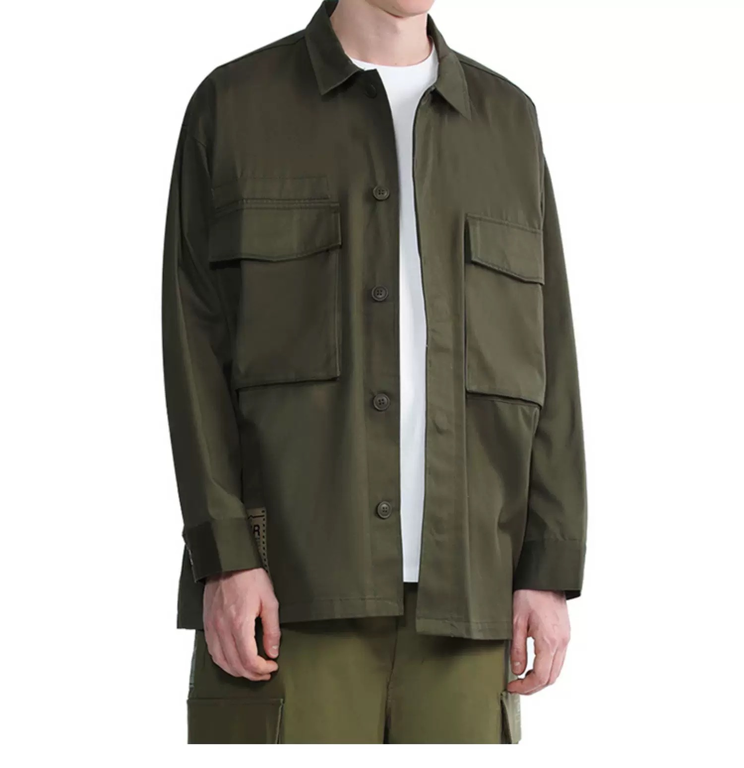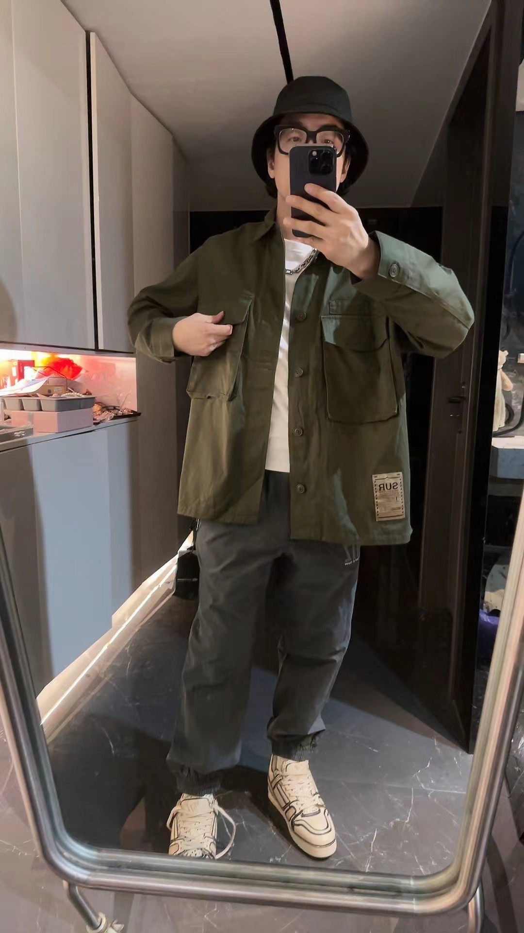C&HOCOOLATE春秋季男装长袖衬衫工装排扣上衣 工装风一直是男生的最爱的风格之一硬朗、街头、复古是它的代名词,工装夹克起源于早期工人日常的工作服装这类服装有着多口袋、大口袋的设计面料硬挺、结实耐磨版型宽松、活动自如。而如今Now,工装风开始横行于T台和各大秀场,潮流性、时装性、街头感也越来越突出,俨然成为了年轻人追捧的个性潮流文化
