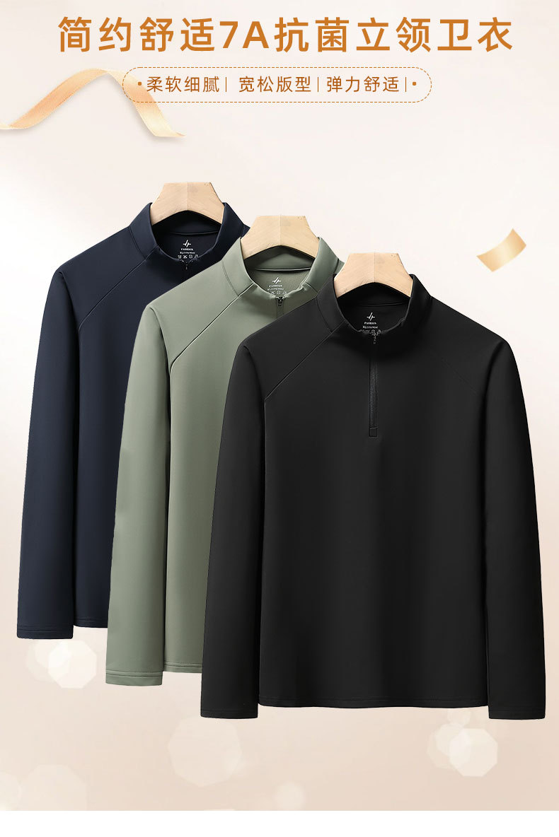 【7A抗菌】【DWP】大依优型大码男装立领卫衣秋季半拉链长袖休闲商务百搭宽松加肥加大