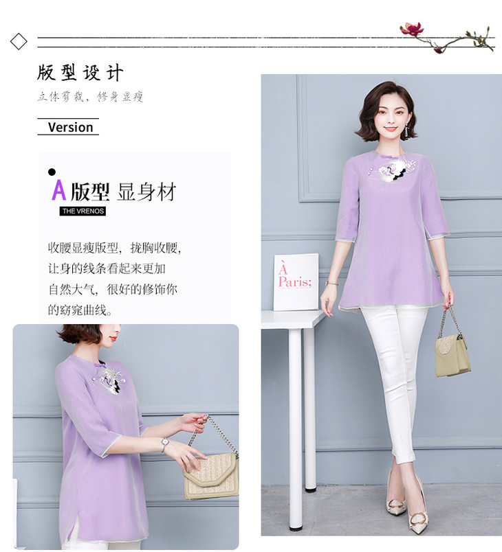 DJ-NL2032夏新款复古刺绣改良版旗袍上衣