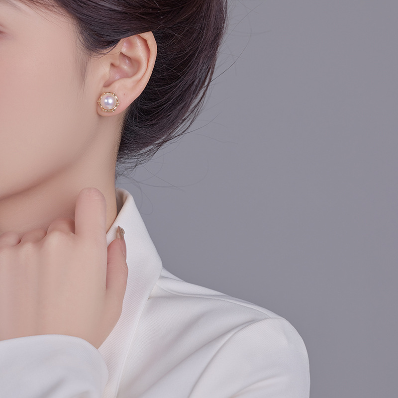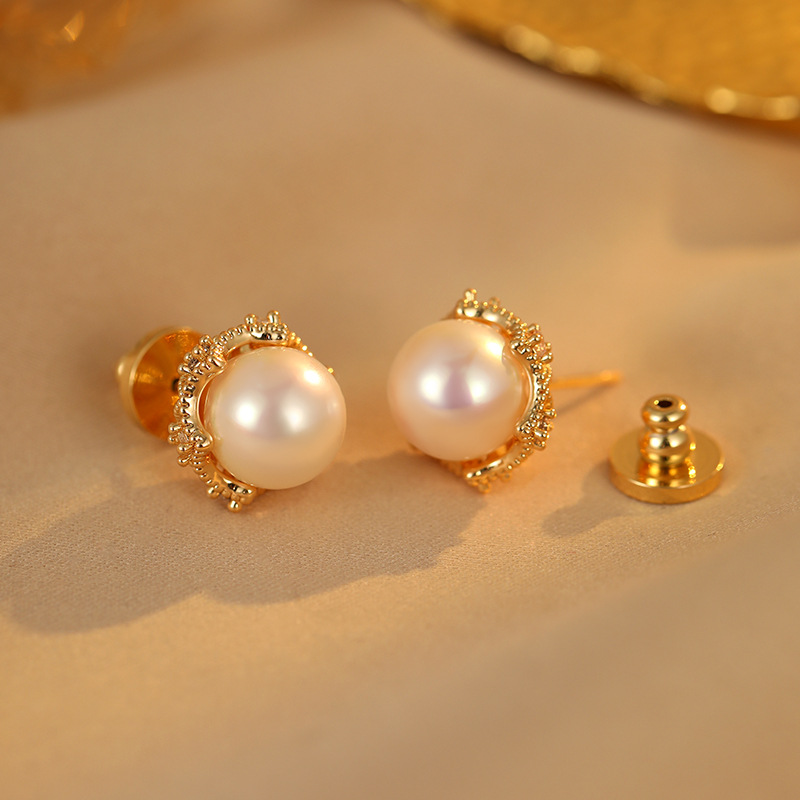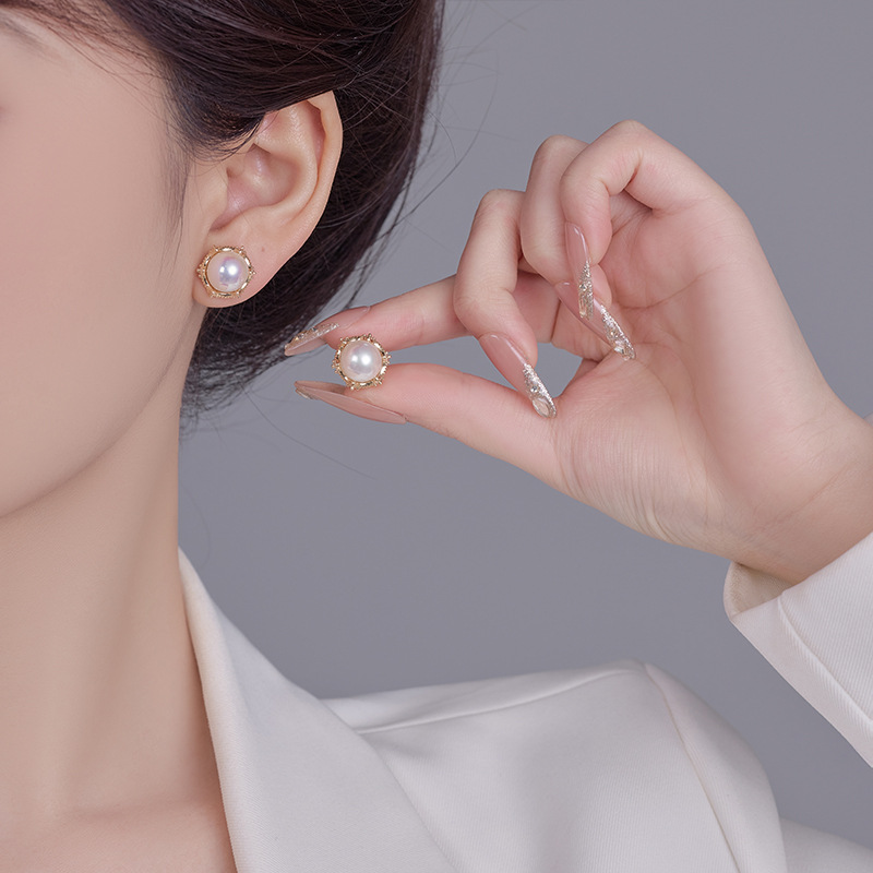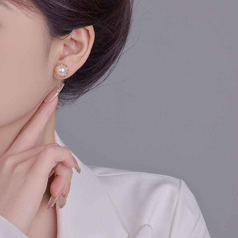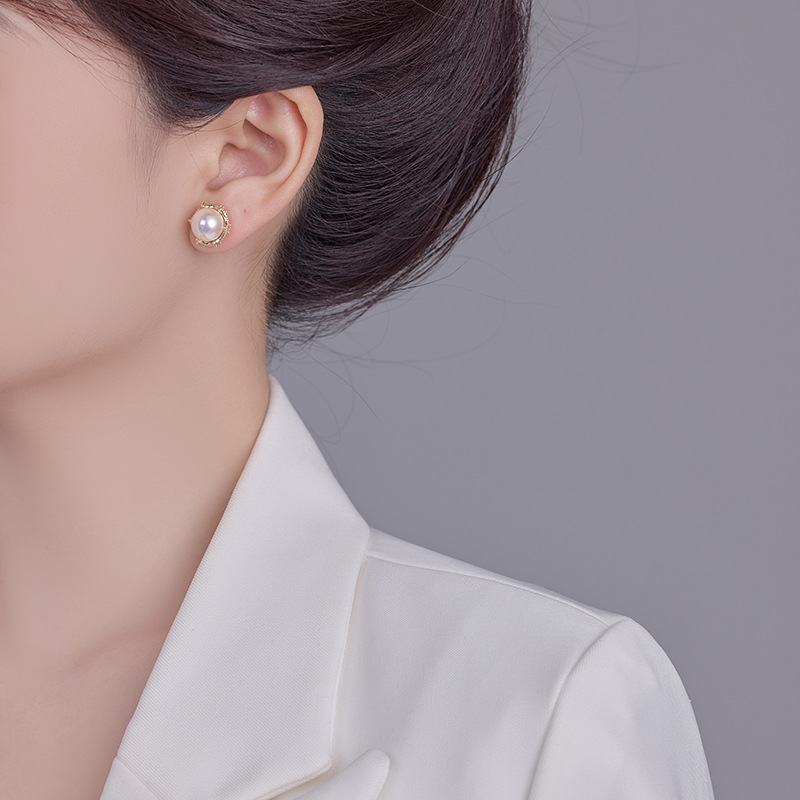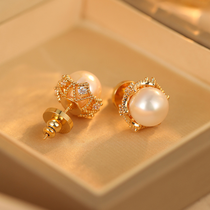 雀说法式复古锆石珍珠耳钉女轻奢高级感气质百搭耳环AL0941