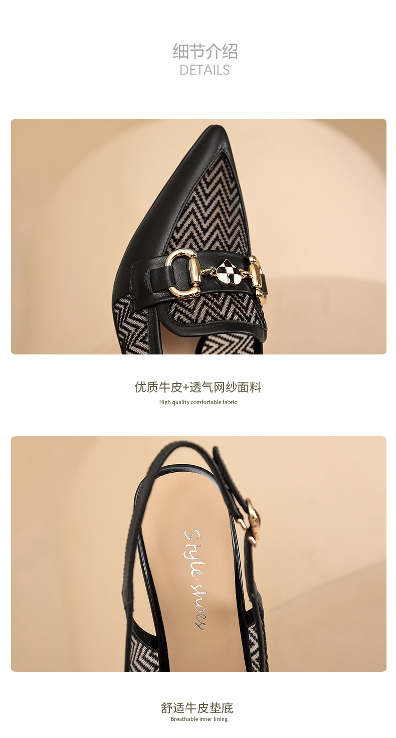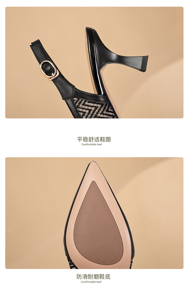 优雅通勤,尖头包头真皮高跟凉鞋GLS629