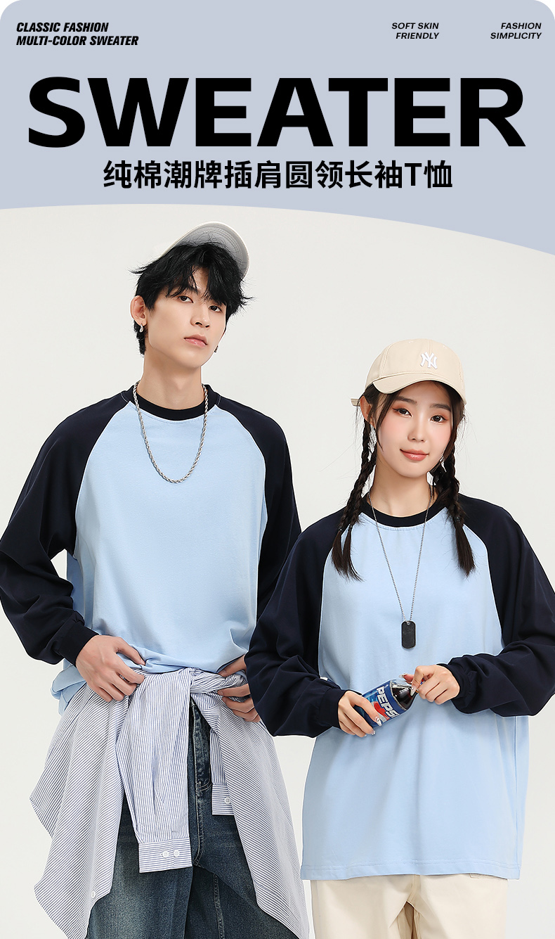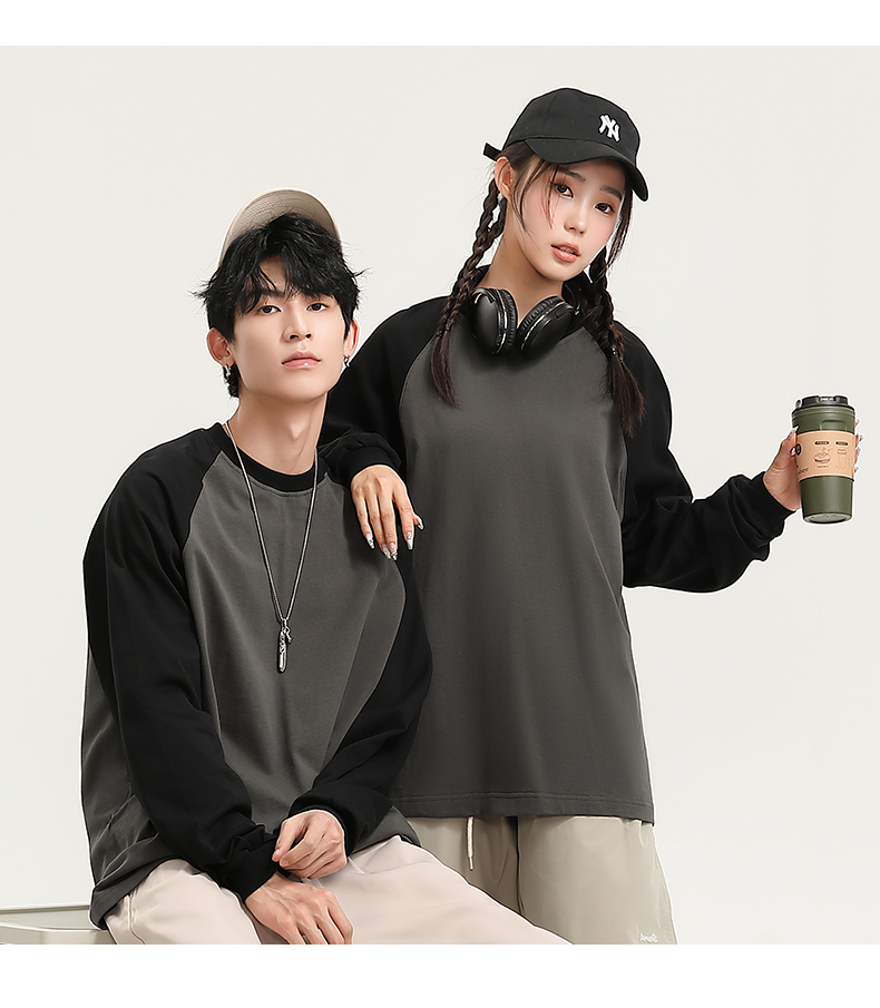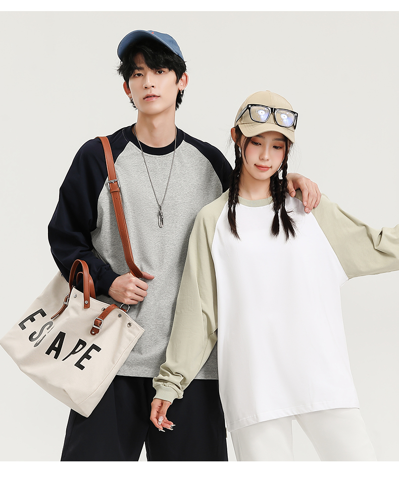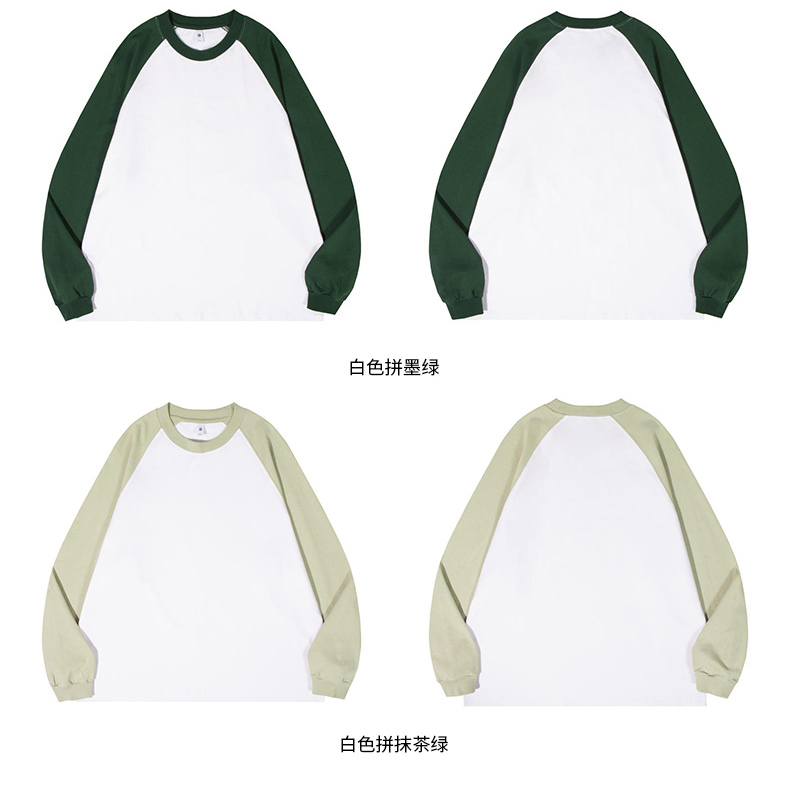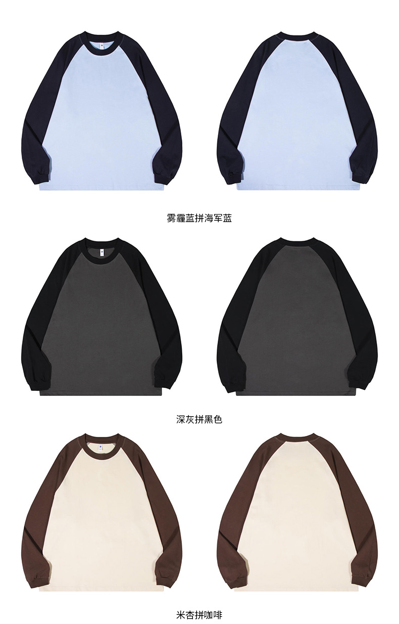 自由基地秋冬新款250克纯棉潮牌插肩圆领长袖T恤卫衣拼色男女同款 NMT-2181