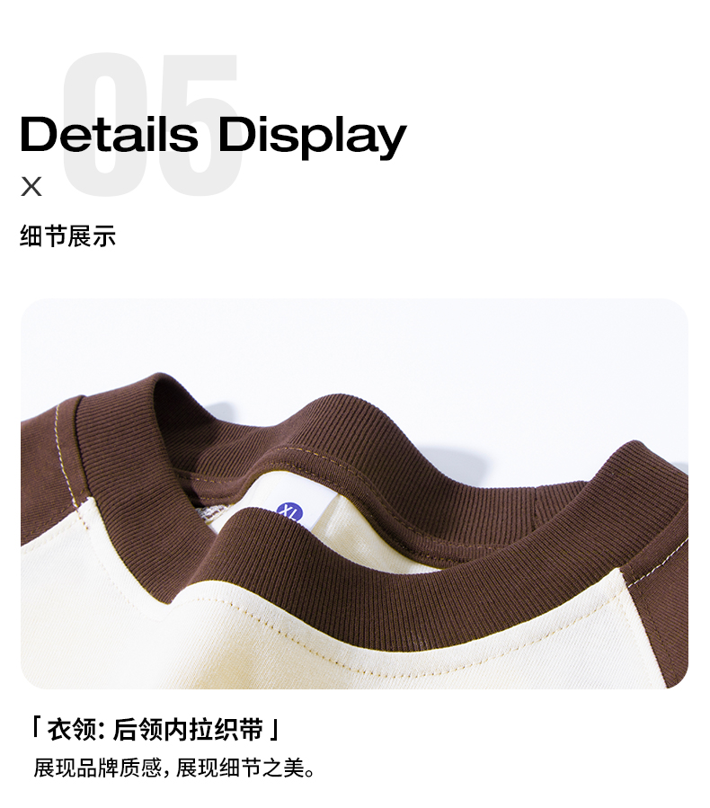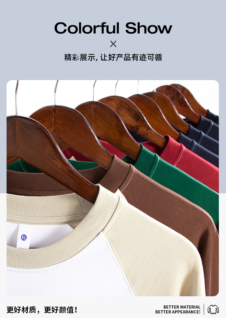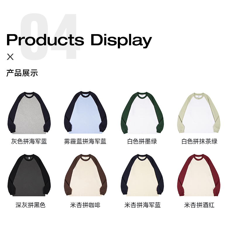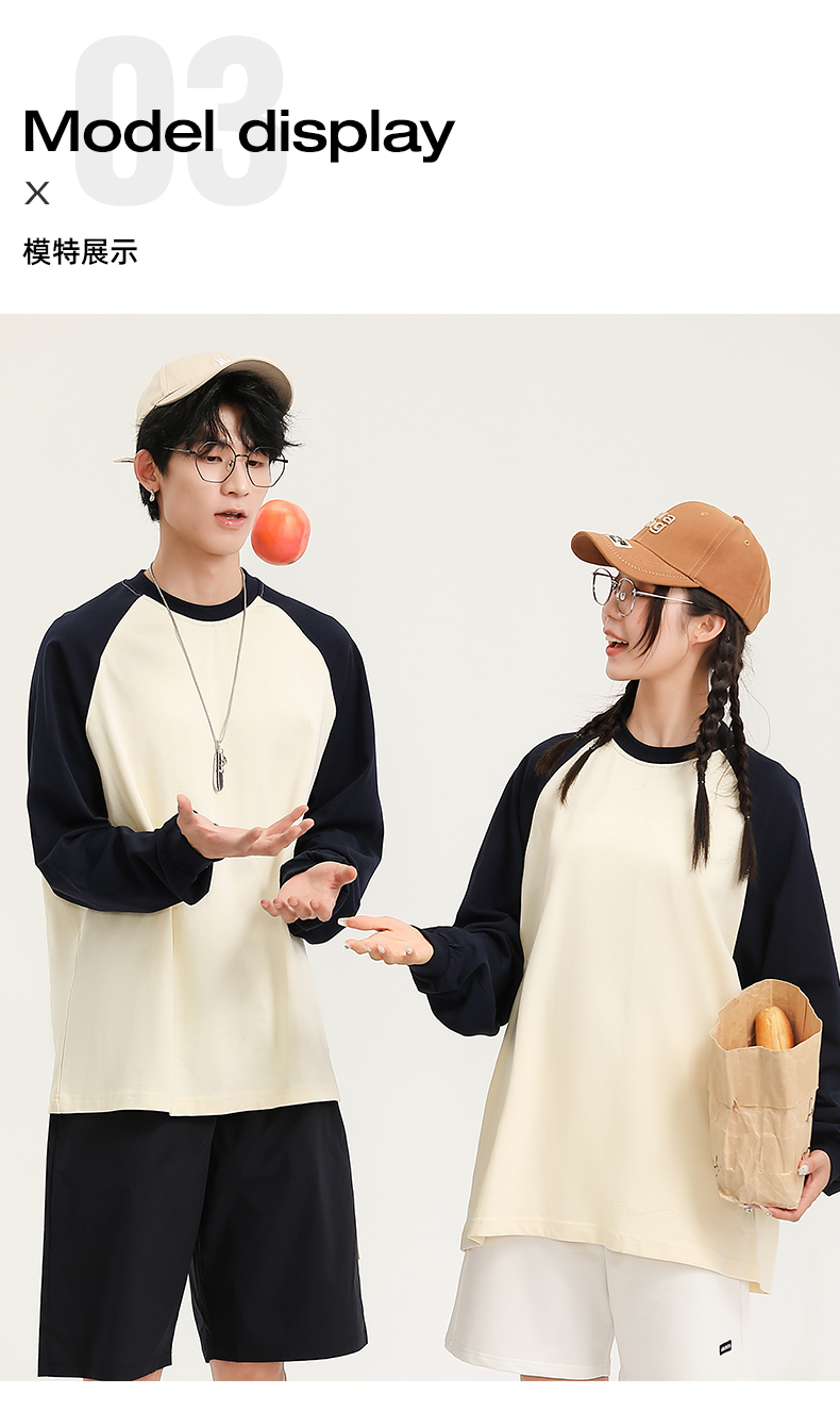 自由基地秋冬新款250克纯棉潮牌插肩圆领长袖T恤卫衣拼色男女同款 NMT-2181