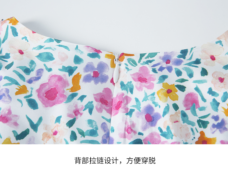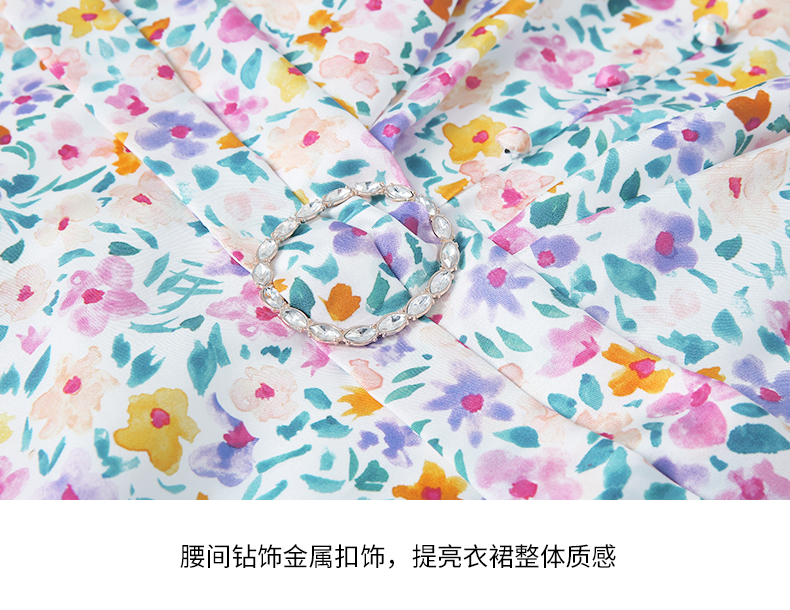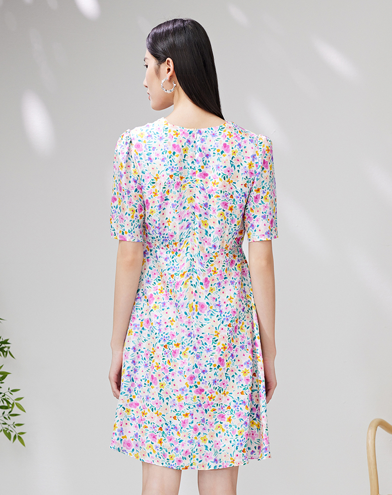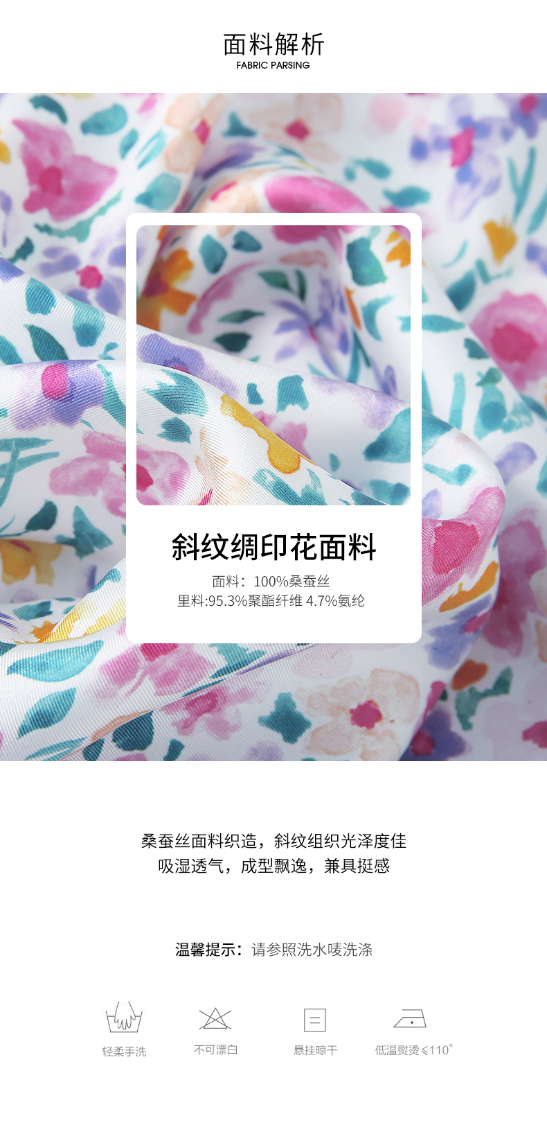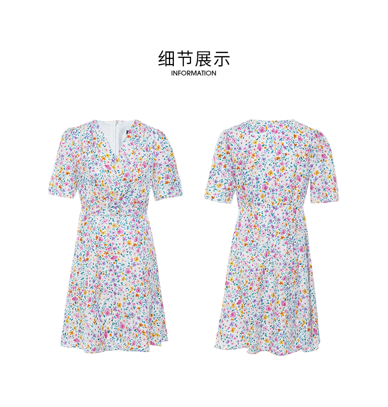 EITIE爱特爱夏款新品100%桑蚕丝显瘦V领舒适印花连衣裙7007767