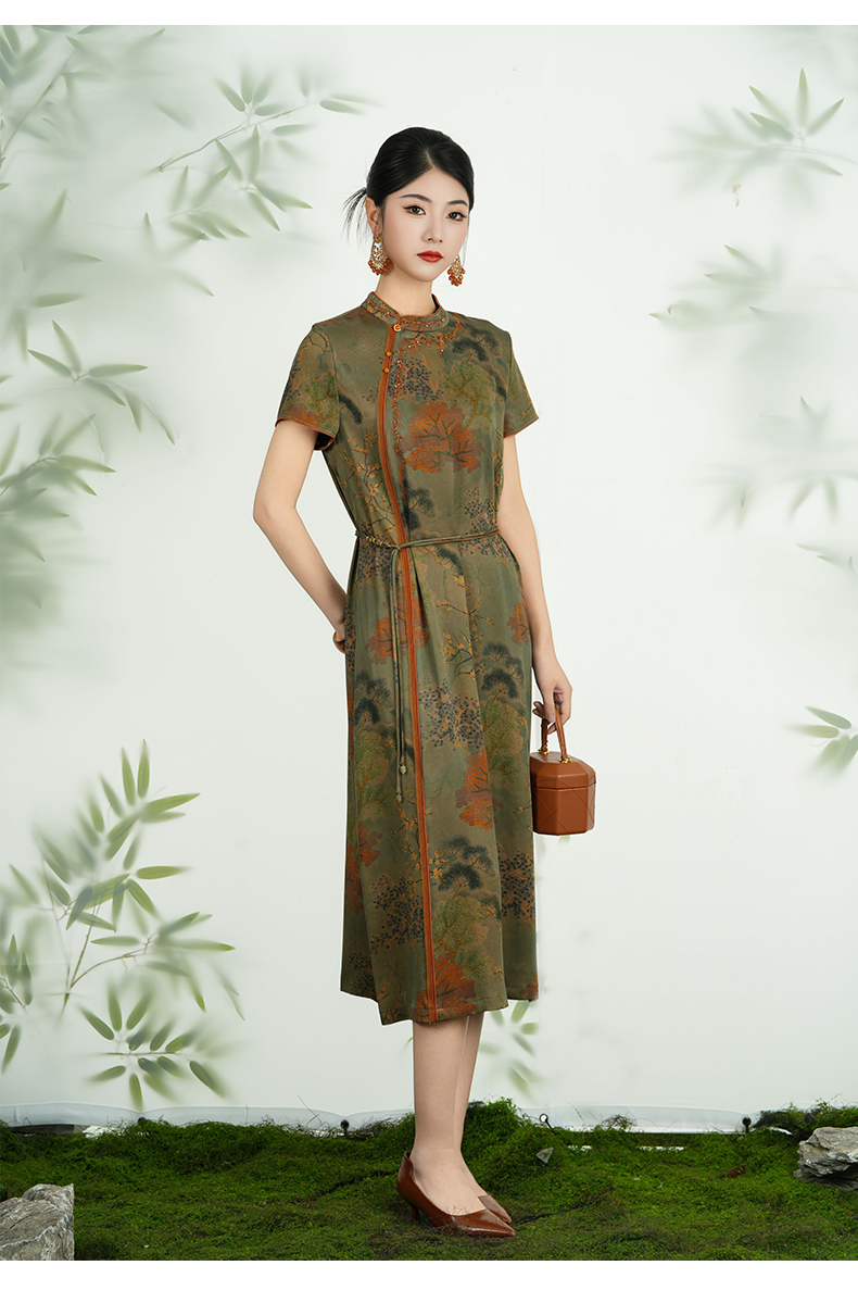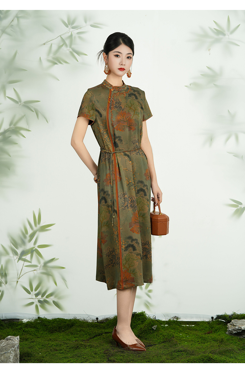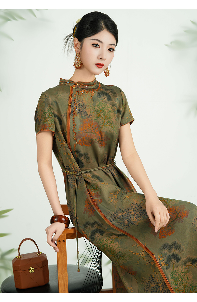 【琥珀松林】【香云纱】乔万尼2025重磅新品40mm新中式旗袍裙ED2E468