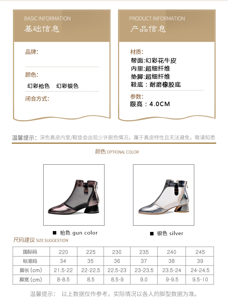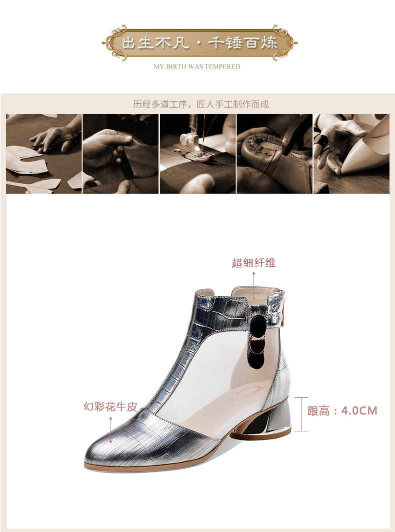 夏季新款,爆款粗跟纱网短靴真皮粗跟凉靴真皮爆款靴子HYT-272A