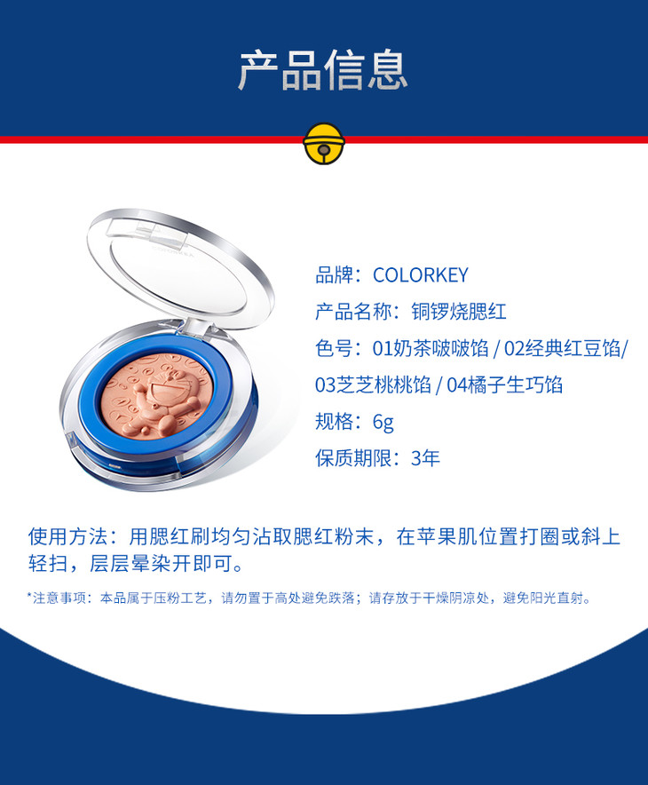 colorkey珂拉琪铜锣烧腮红(哆啦A梦版)