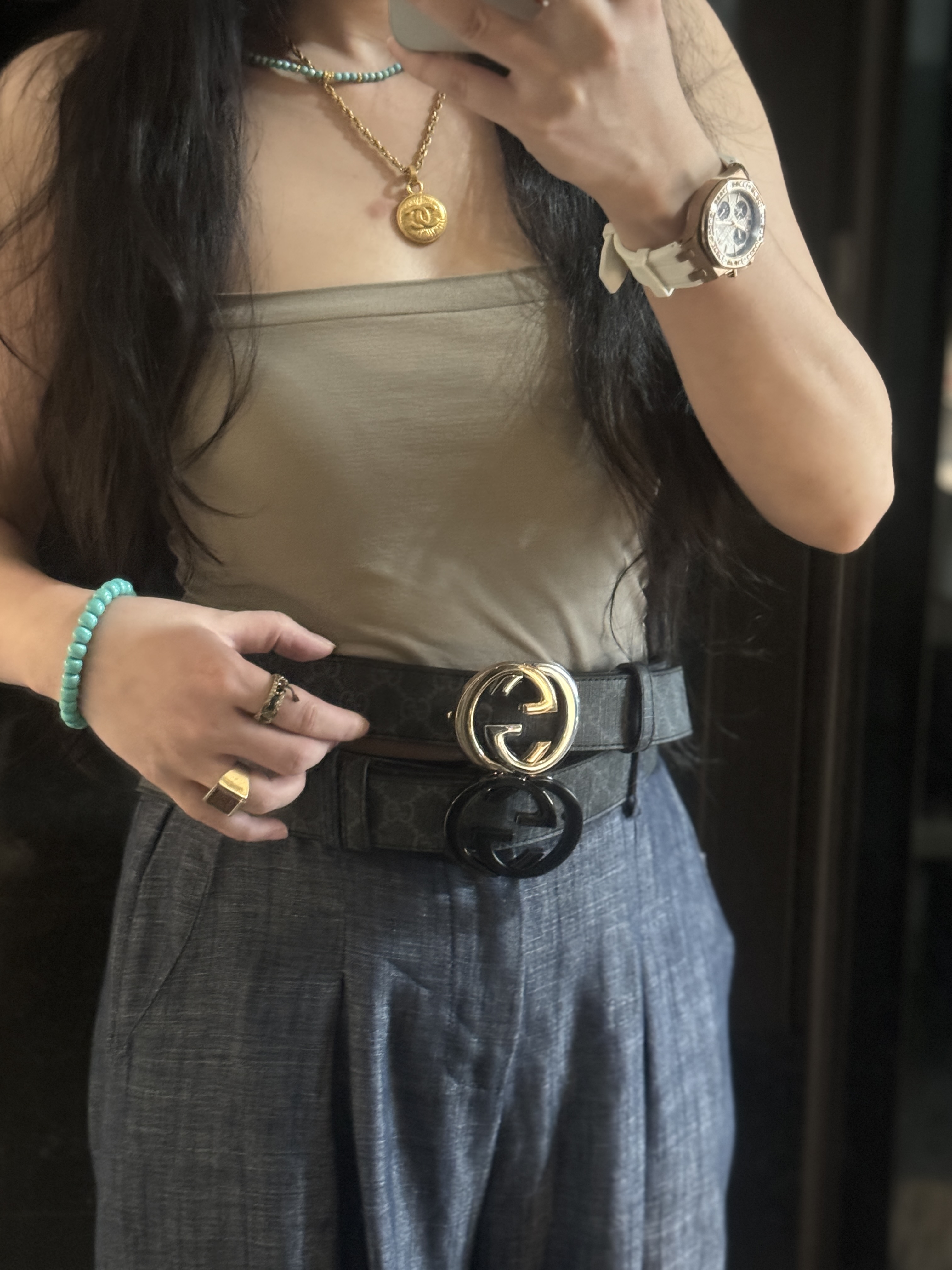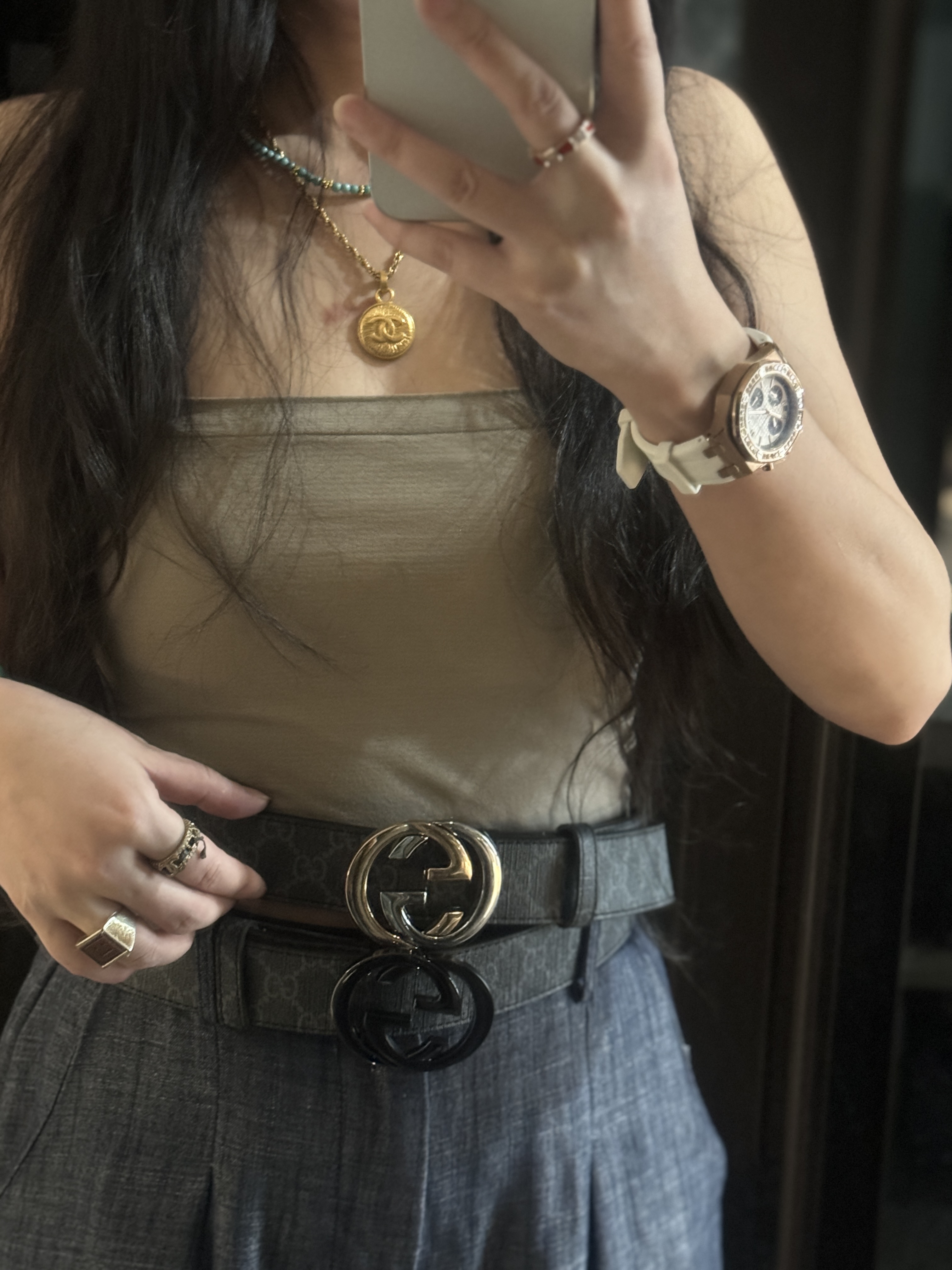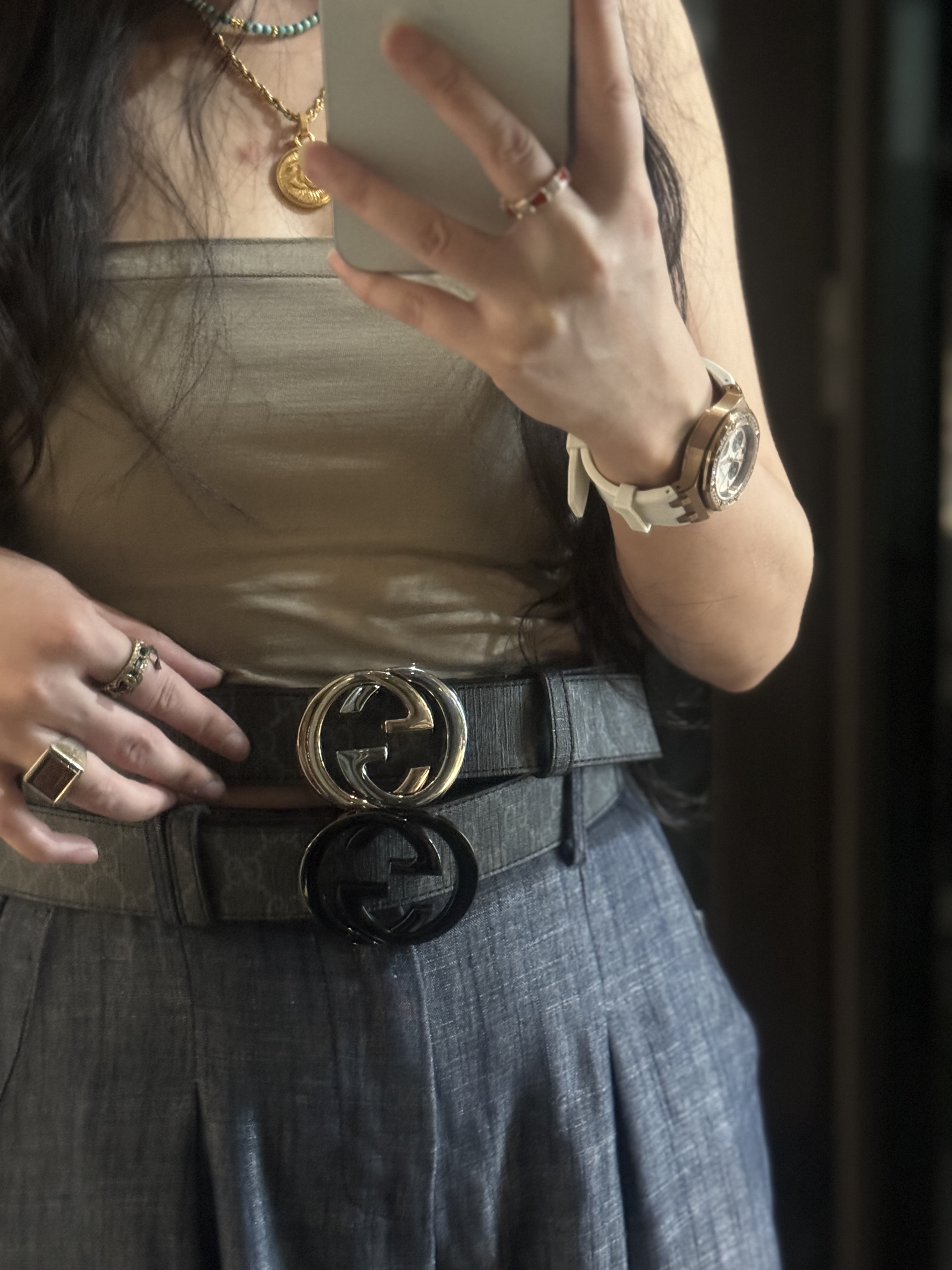 甄选质感面料,满幅GG老花低调彰显品牌基因,双G金属扣光泽高级,开合间尽是精致感。无论是搭配西装裤打造精英格调,还是配牛仔释放随性潮范,它都能精准拿捏风格,让你在每一次穿搭中,轻松跃升时尚焦点。 拥有它,就是拥有了GUC&CI百年奢品工艺的质感背书,让你的造型从“普通”到“高级”,仅差这一抹奢雅细节。