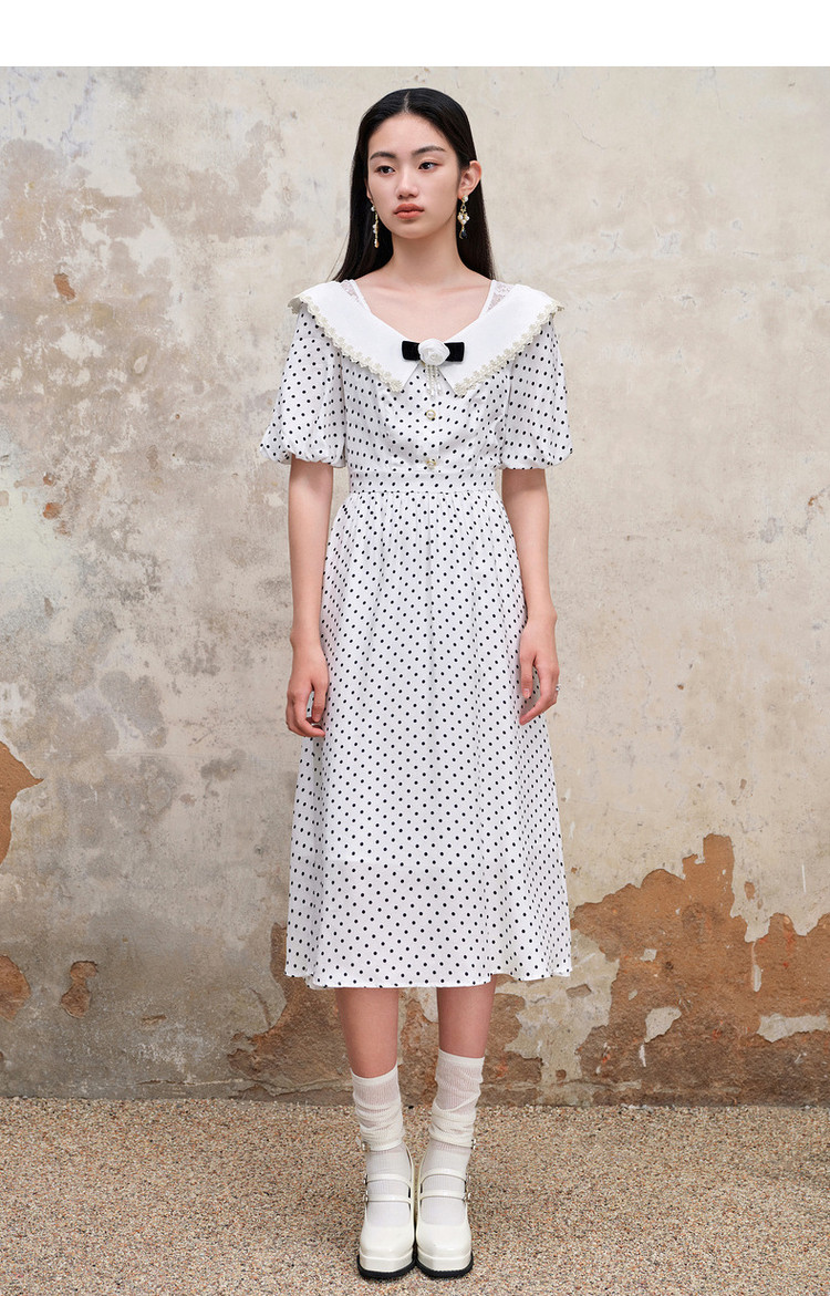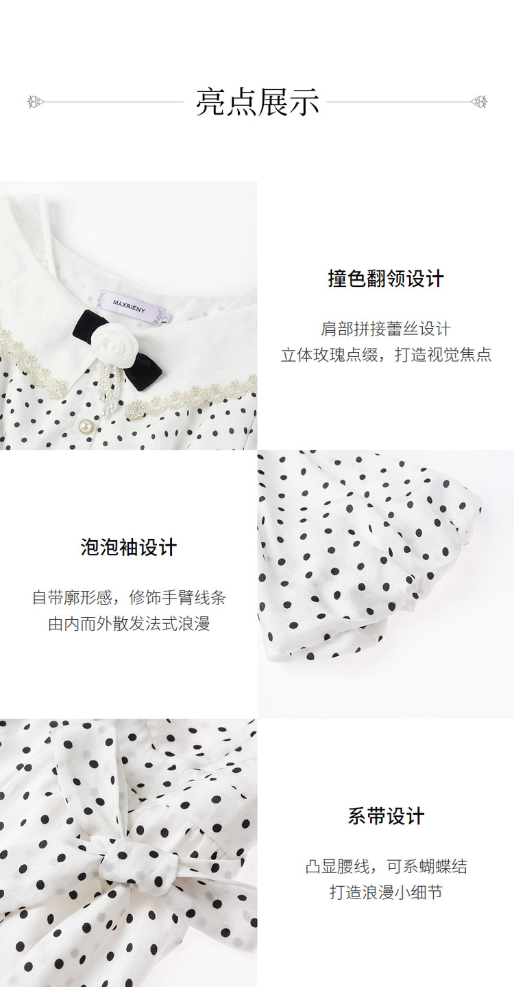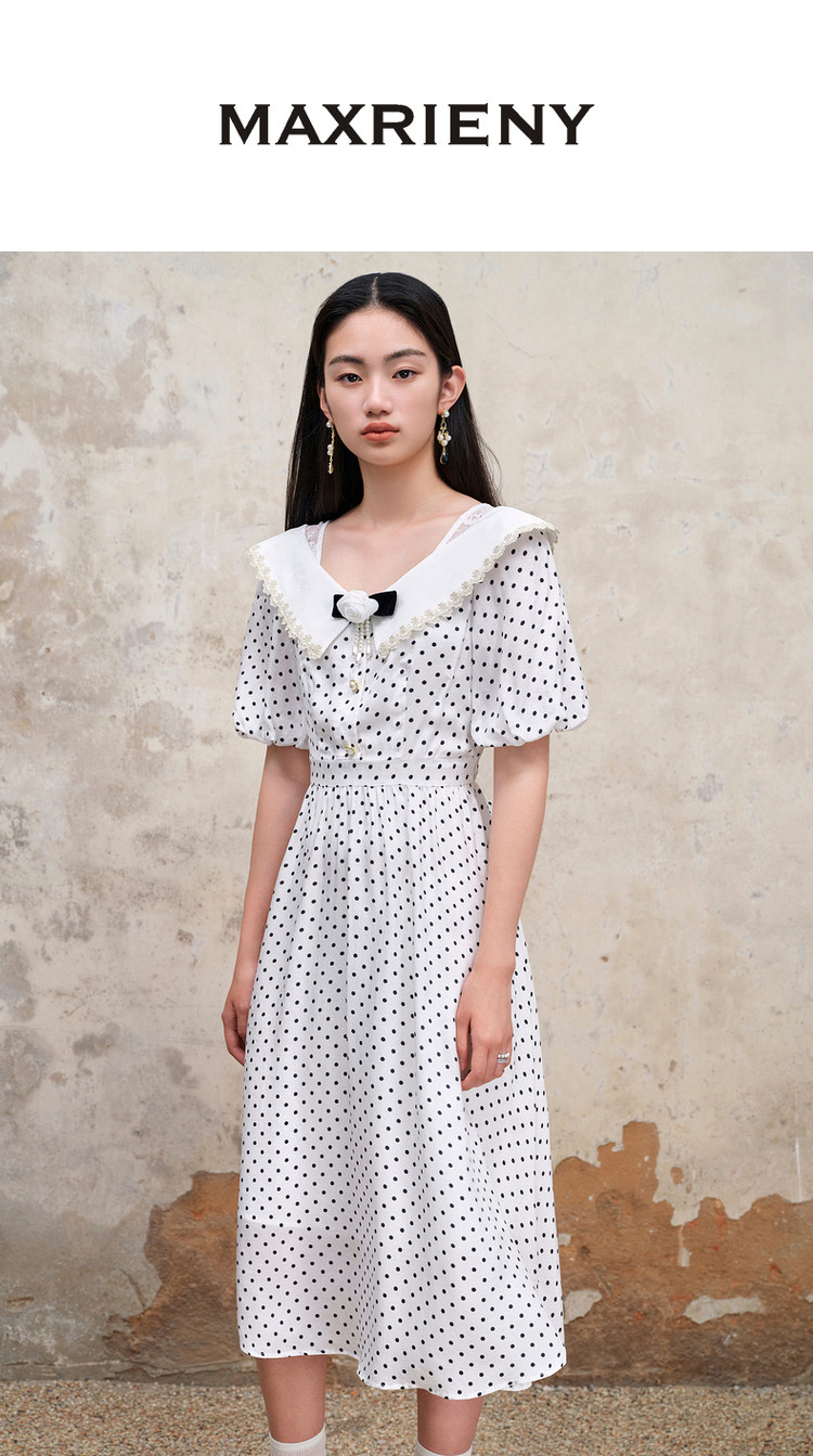 MAXRIENY海岛度假复古风波点连衣裙温柔甜美少女感翻领泡MS88DR351D00