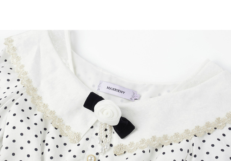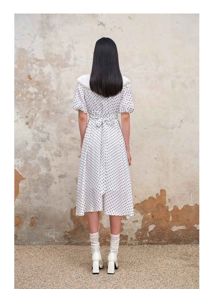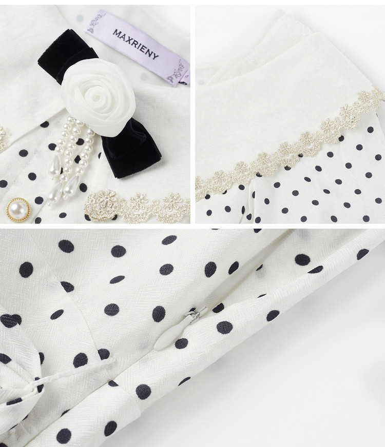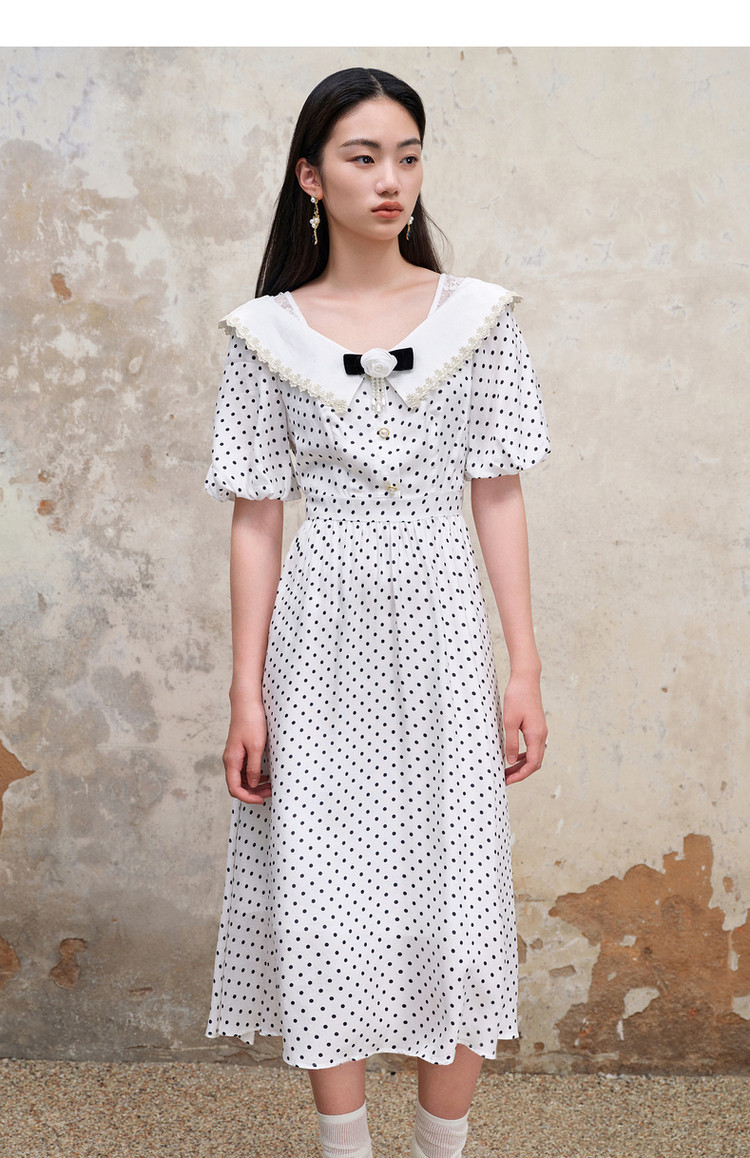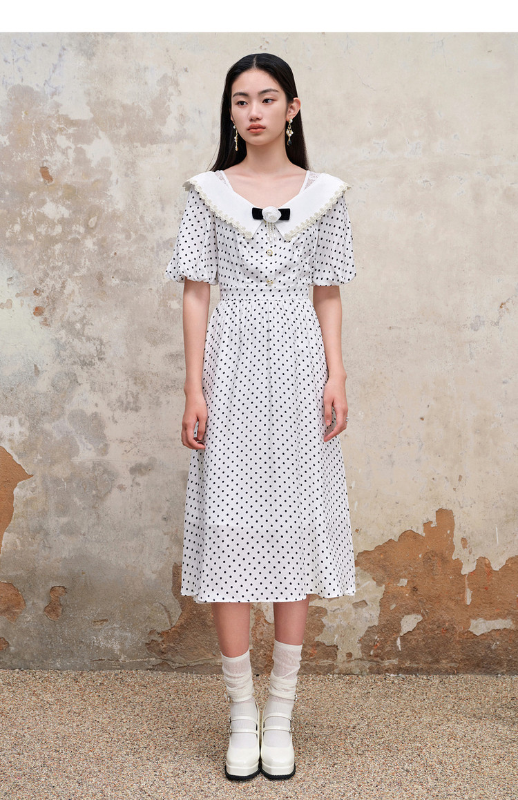 MAXRIENY海岛度假复古风波点连衣裙温柔甜美少女感翻领泡MS88DR351D00