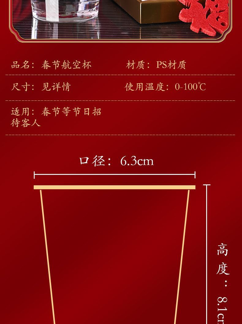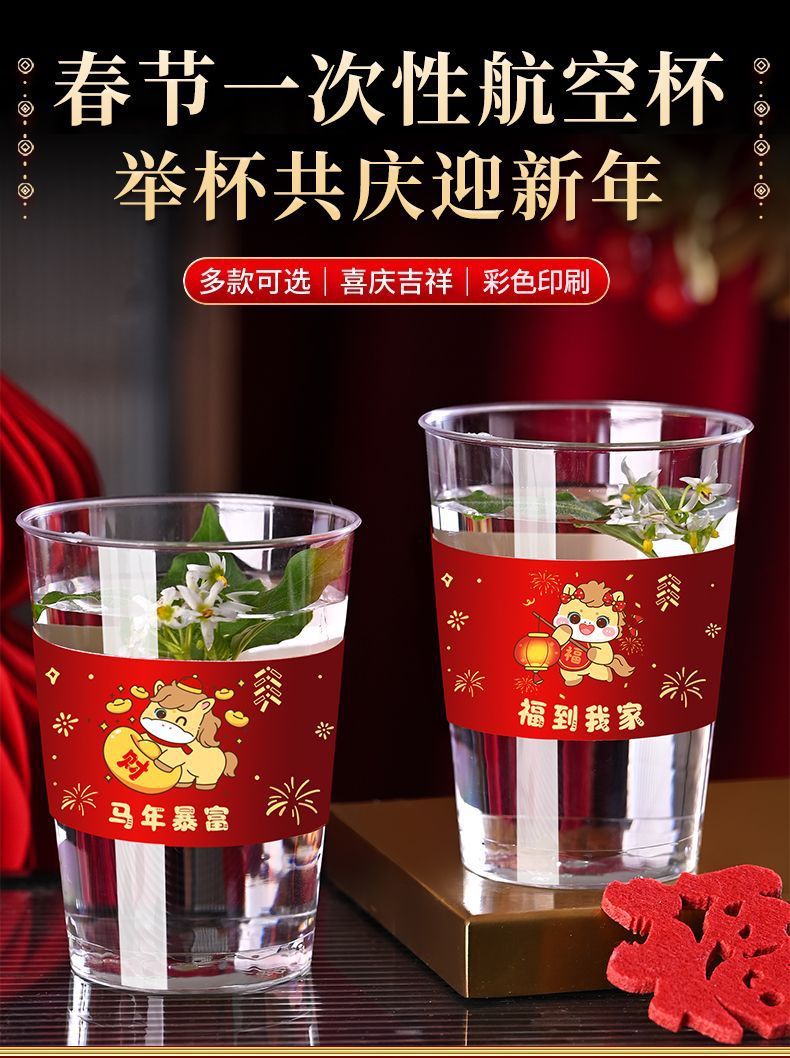 【春节一次性航空杯❗举杯共庆迎新年】加厚材质,不易变形,2026马年喜庆印花家用聚会举杯庆新年吉祥水杯。rg