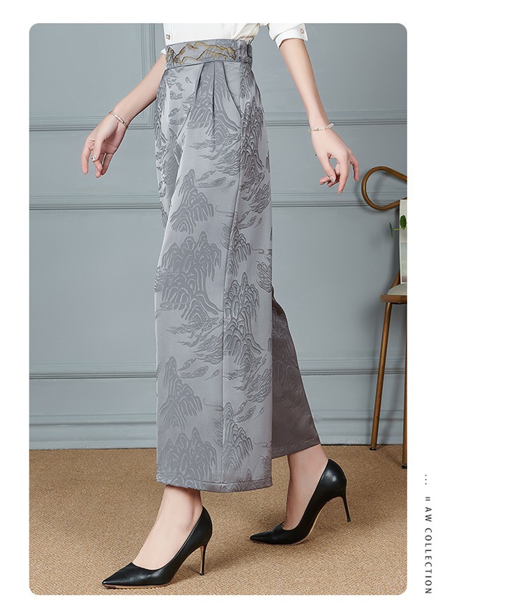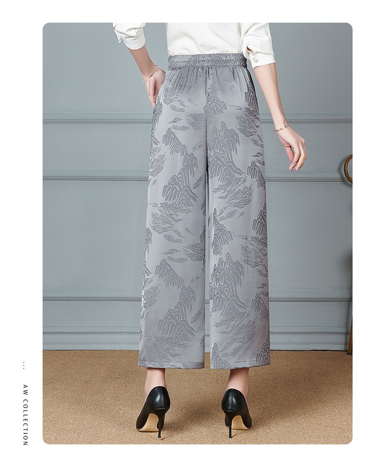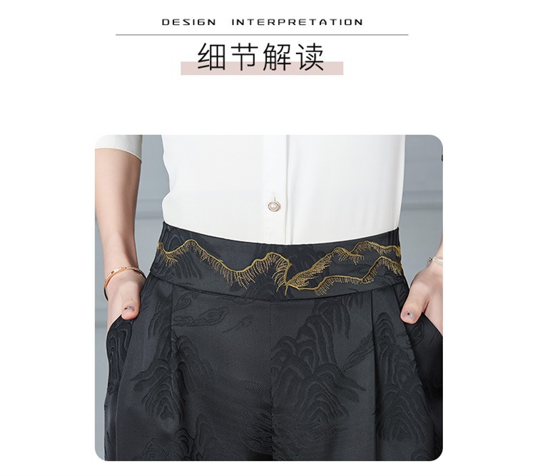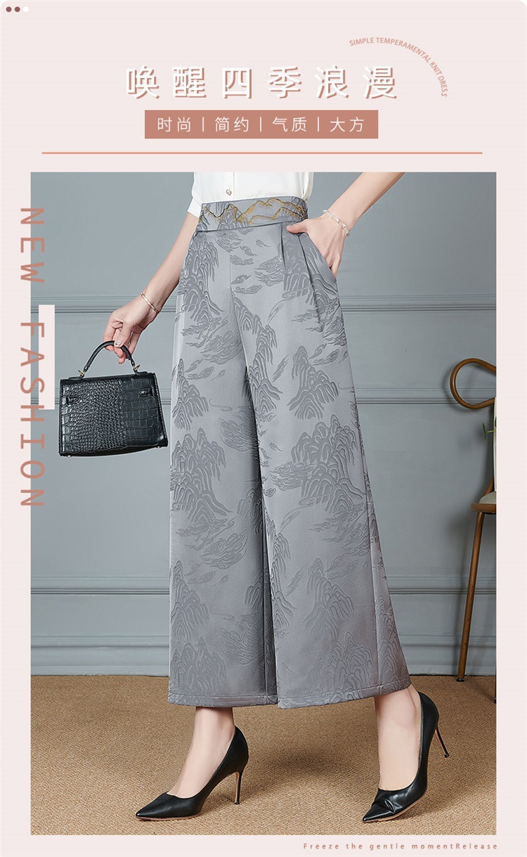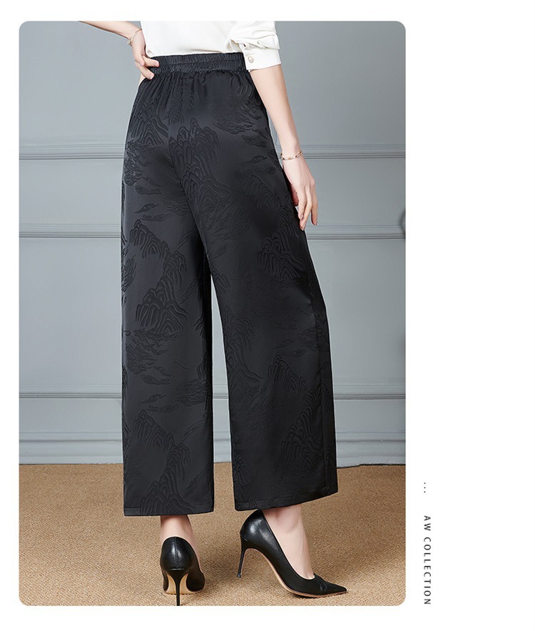 妈妈大码新款提花百搭高腰阔腿裤夏季休闲宽松中老年时尚国风裤子