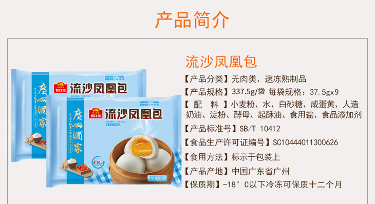 广州酒家利口福流沙凤凰包/1包(37.5g*9个)生产日期:25年8月补单专用