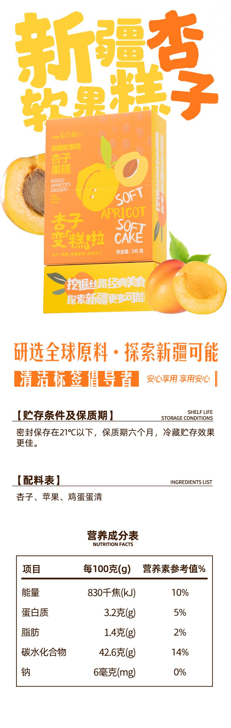 葡萄树·新疆杏子软果糕240g 控卡小零食 独立轻巧随身携带