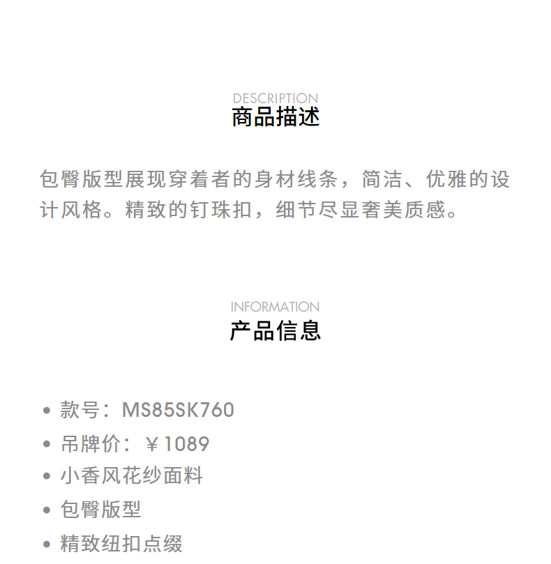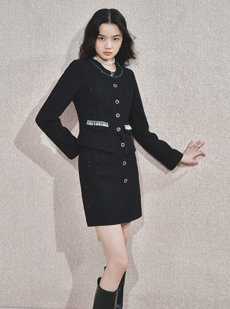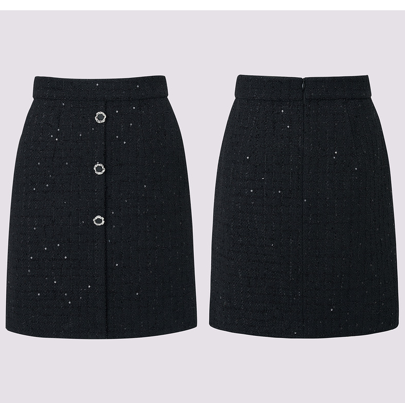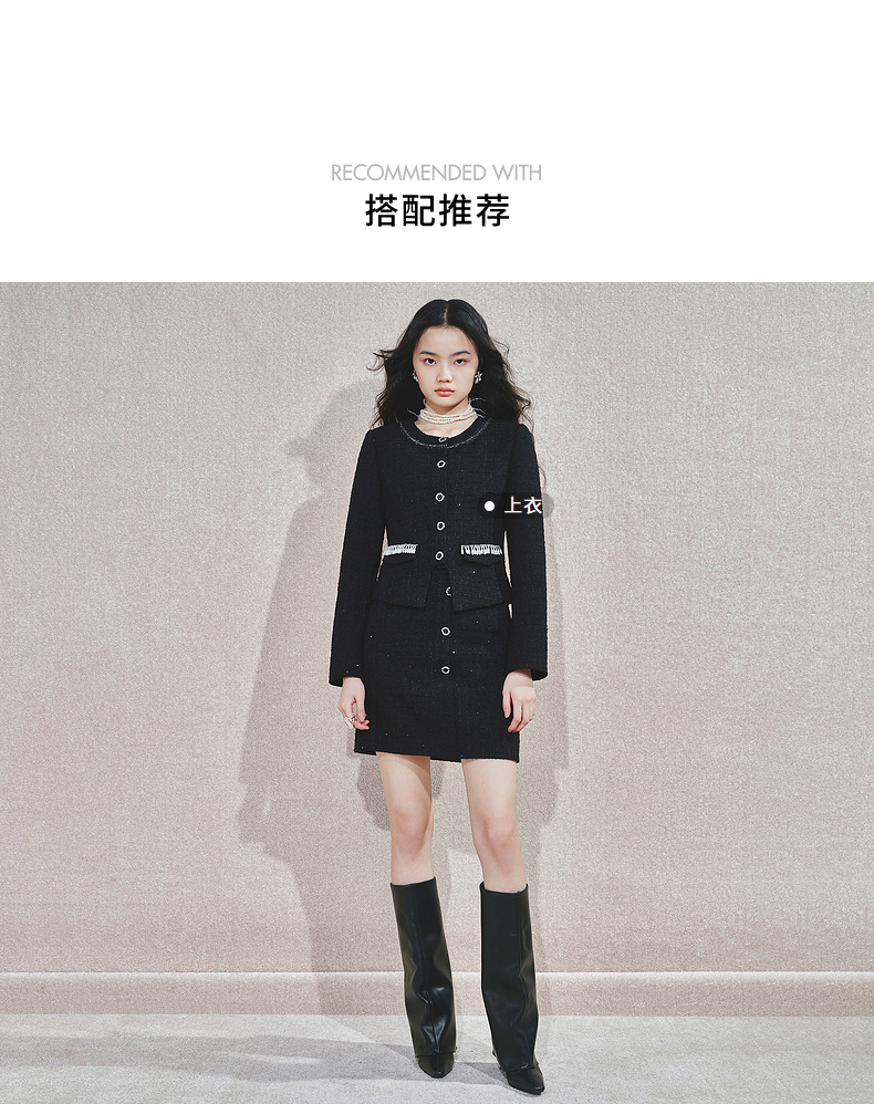 MAXRIENY秋冬小香风黑色高腰半身裙时尚显瘦秋季粗花呢短裙(货号:MS85SK760)