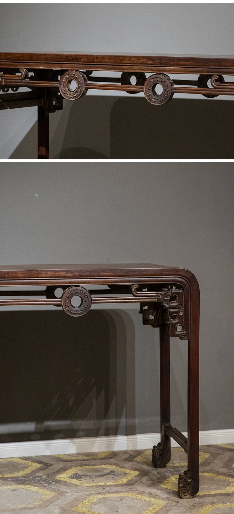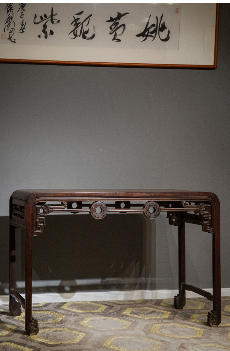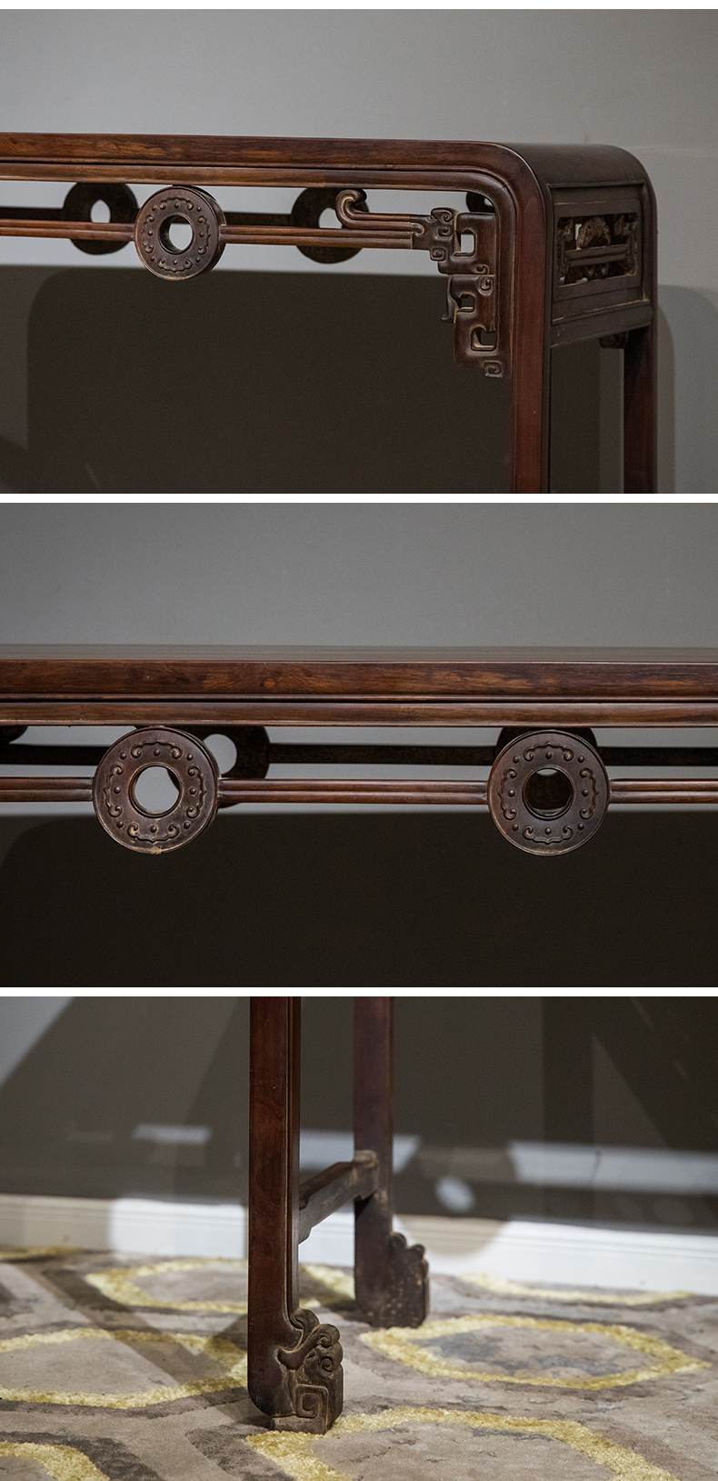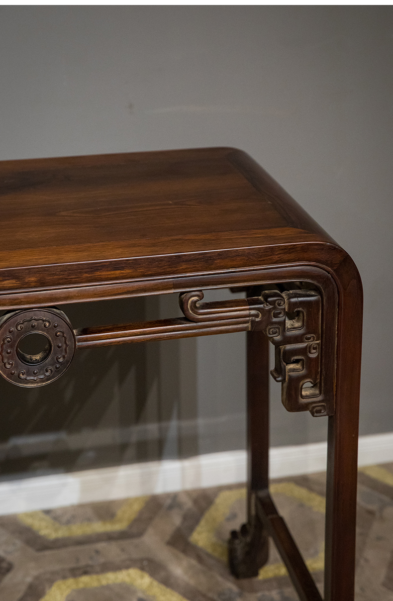二十世纪 黄花梨卷草纹三弯腿带托泥方香几(一对)