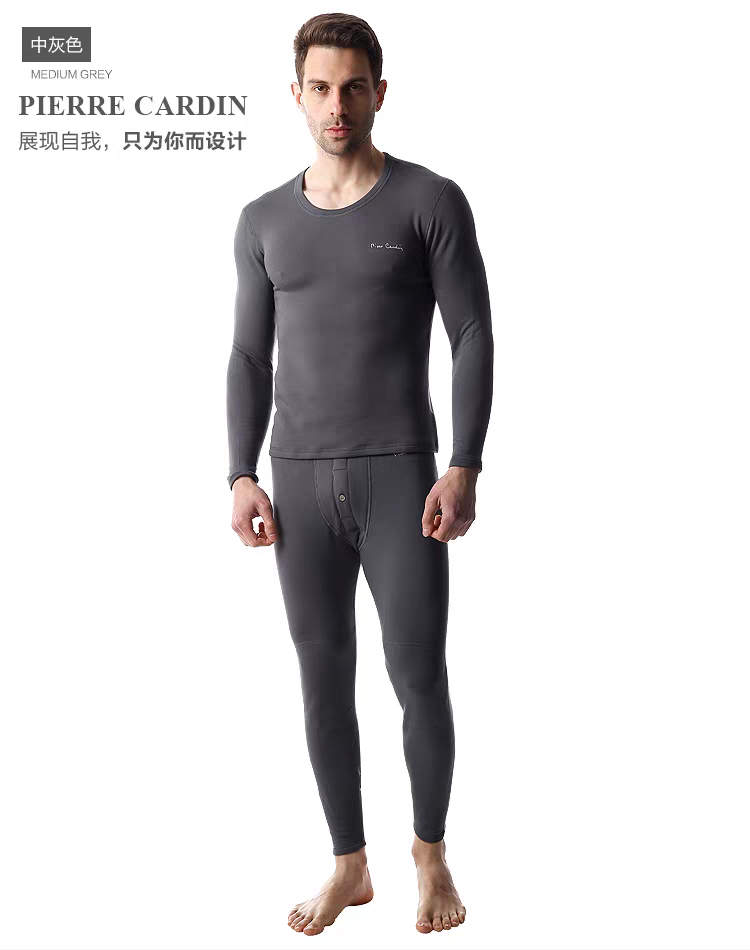 皮尔卡丹 男士加绒带护膝磨毛圆领保暖内衣P374913