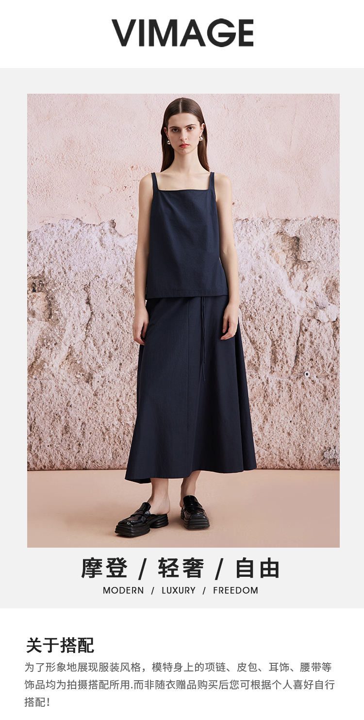 VIMAGE纬漫纪2024夏季新款纯色百搭显瘦吊带背心小上衣V2113708