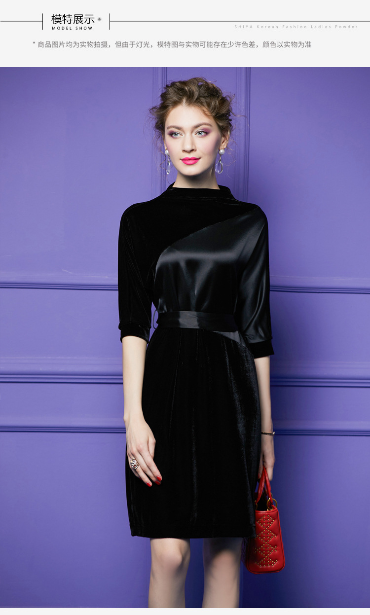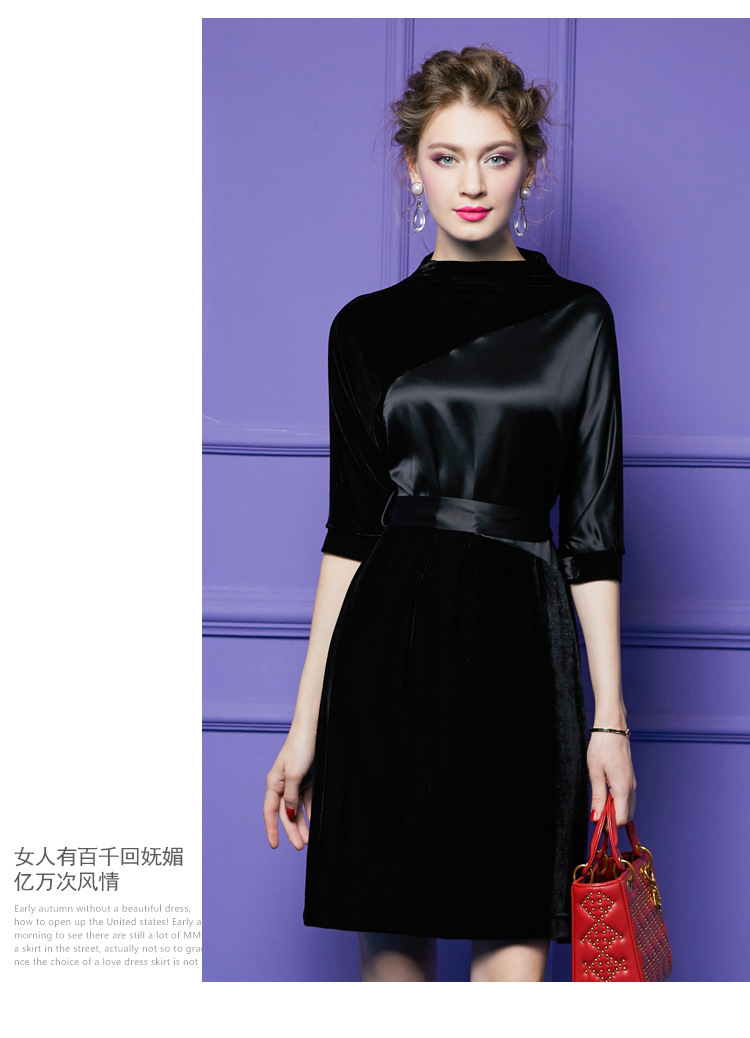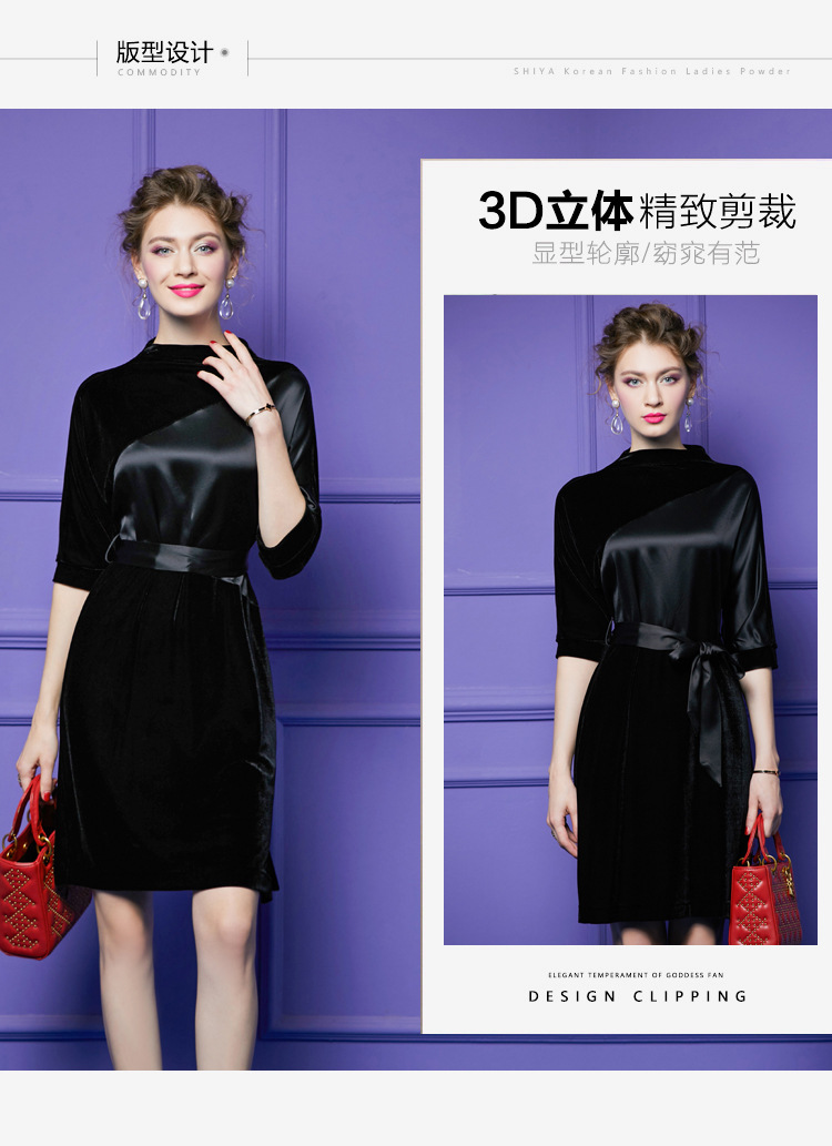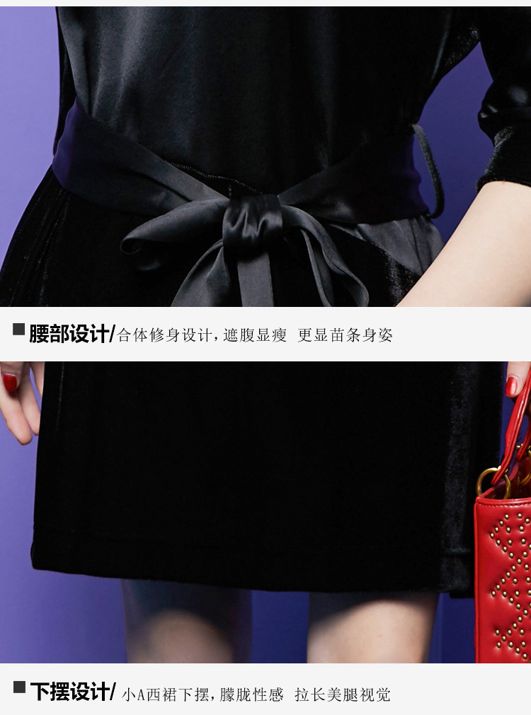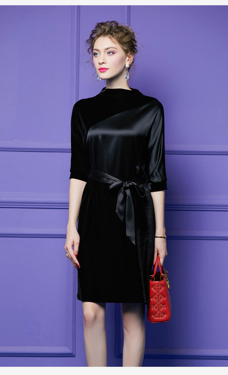 HXYY-90094气质丝绒拼接系腰带修身一步裙
