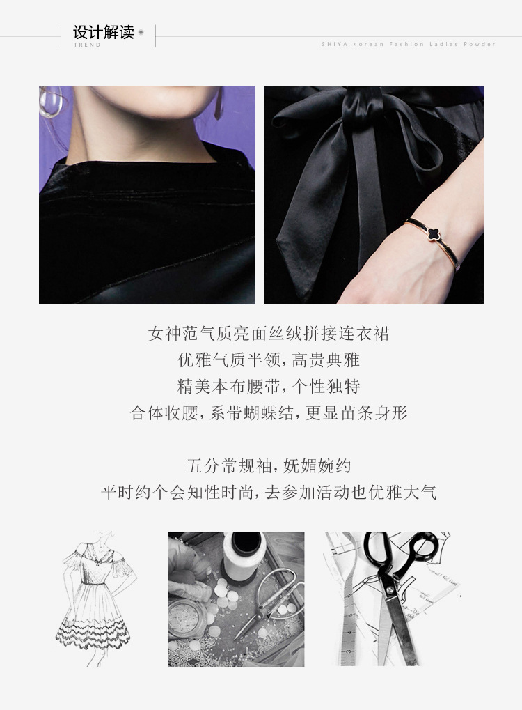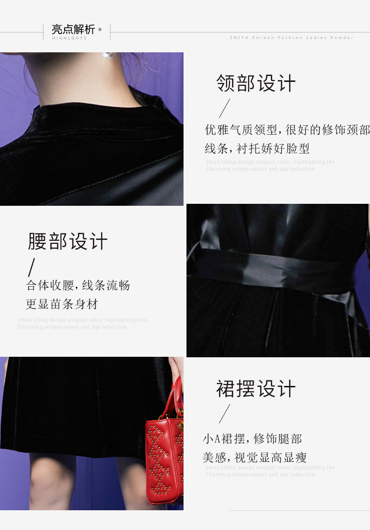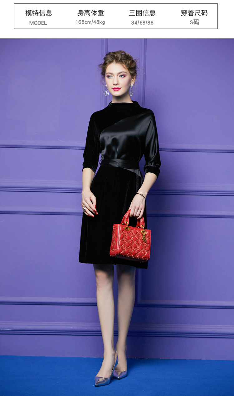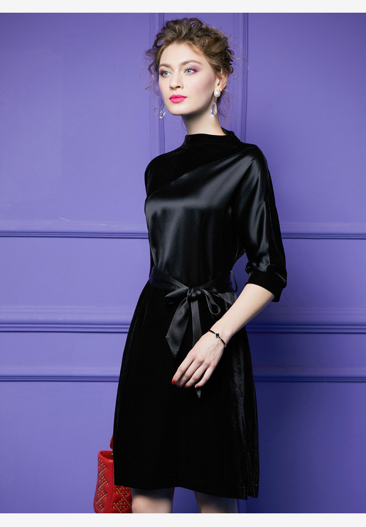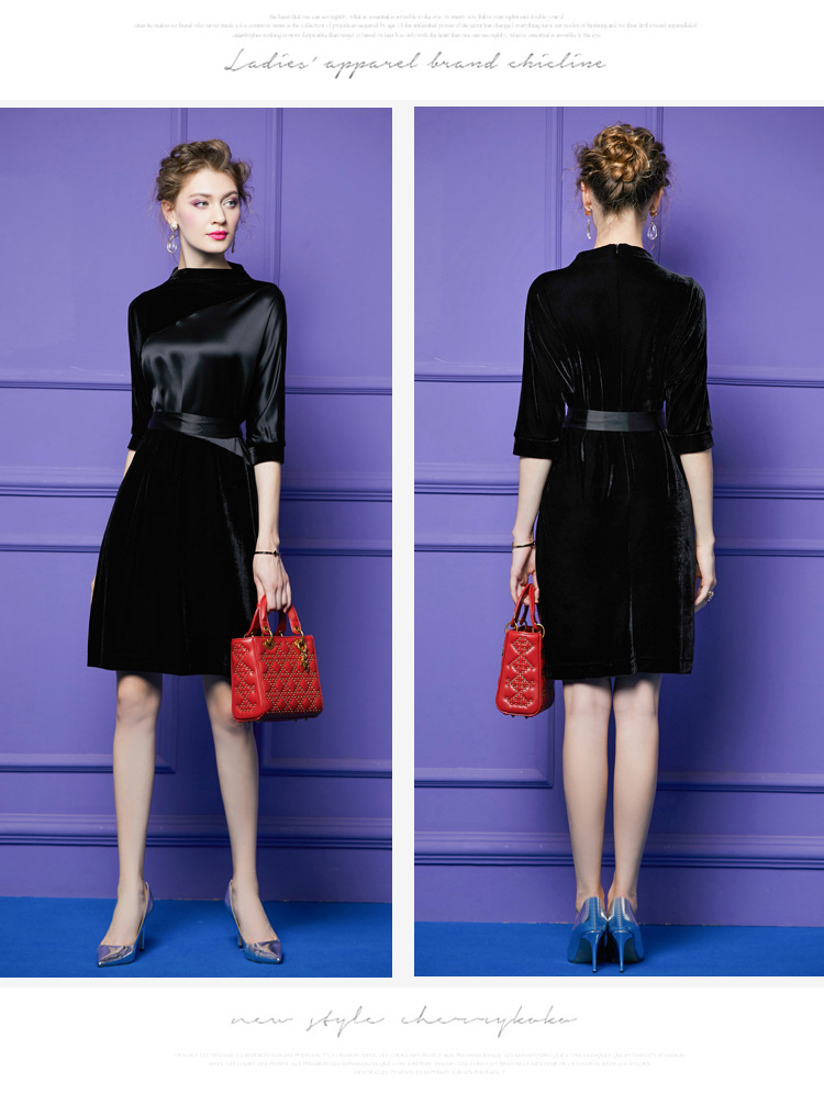 HXYY-90094气质丝绒拼接系腰带修身一步裙