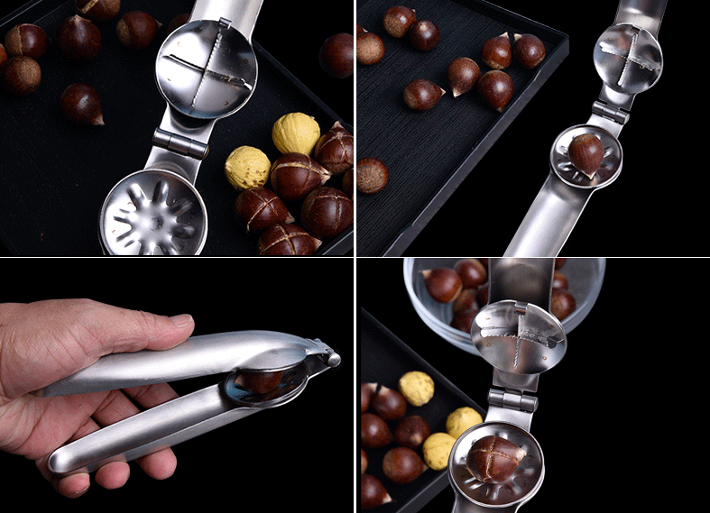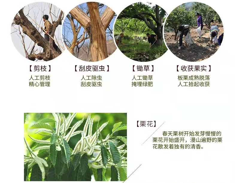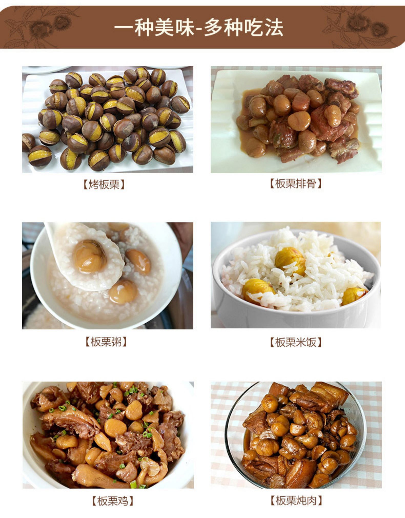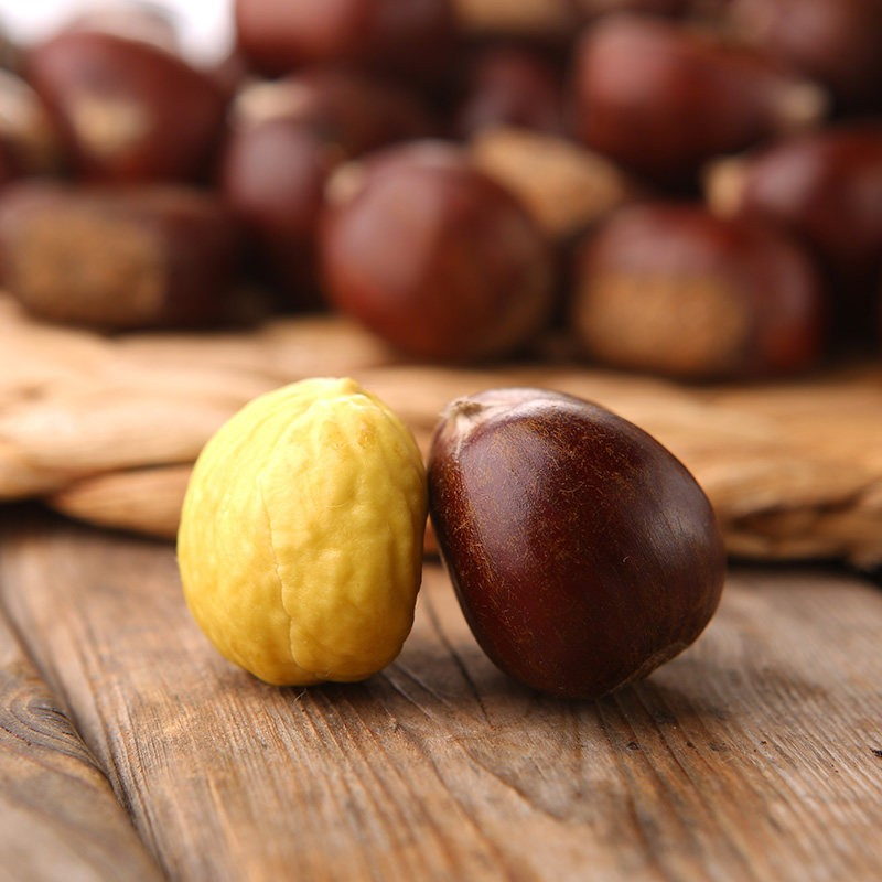 【剥壳方法】:生板栗洗净后用刀小心在外壳上划十字开口,深度以划到栗仁为宜,用热水漫泡10分钟,然后放微波炉、电饼铛、炒锅内,中高温加热,待板栗开口,降温后可直接剥壳。