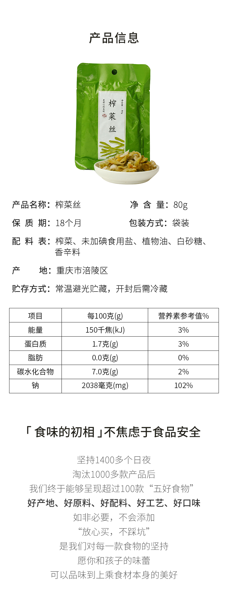 食味的初相*榨菜 80g*10袋 不含味精