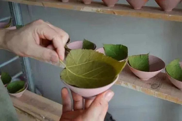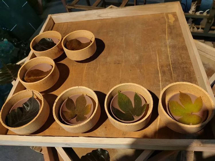 为自然的木叶经高温烧制,印留在胎胚上的印痕。