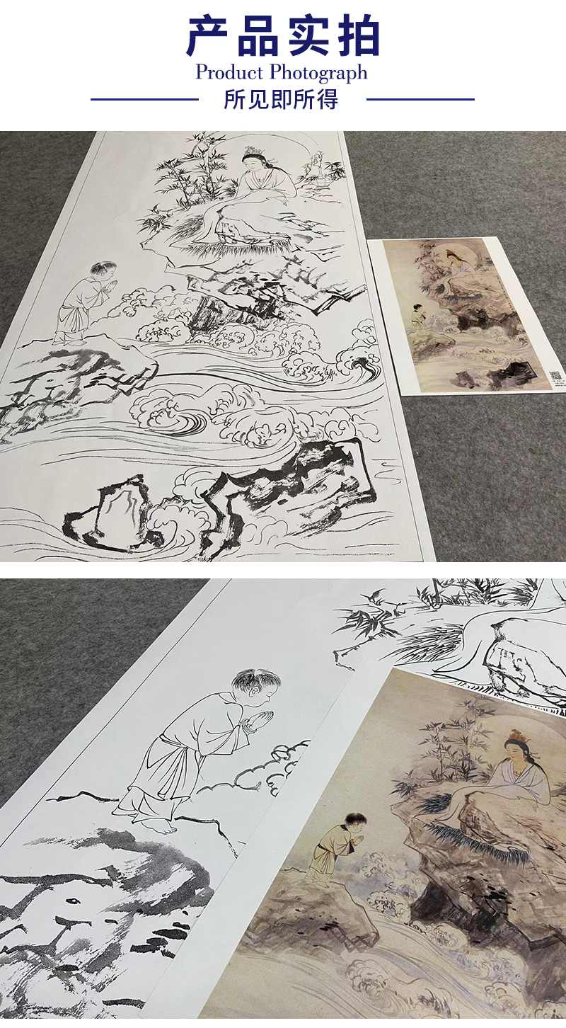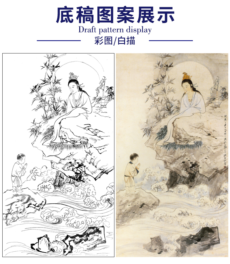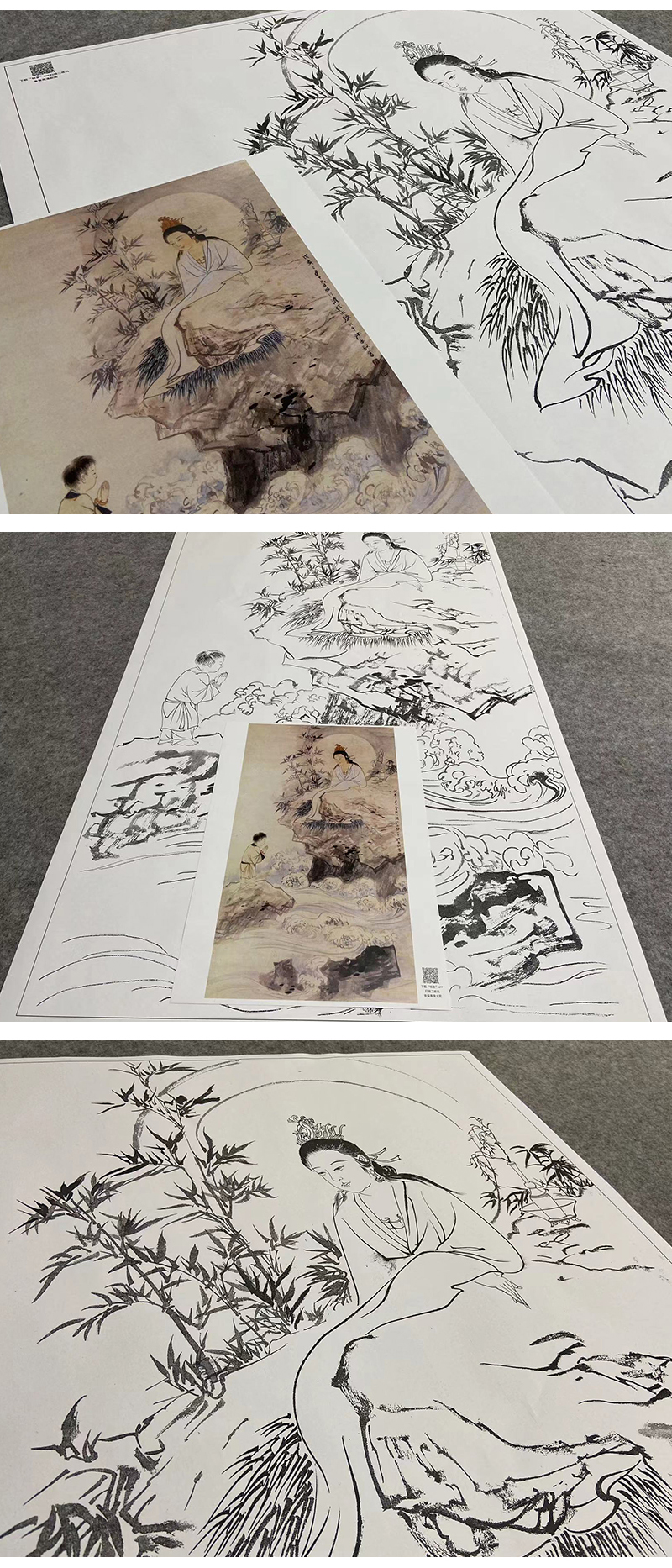 张大千竖幅工笔人物白描底稿-佛像菩萨-《观音大士像》-多种白描尺寸可选-QD68
