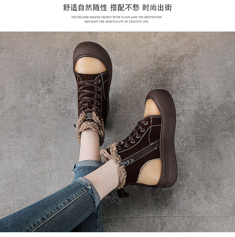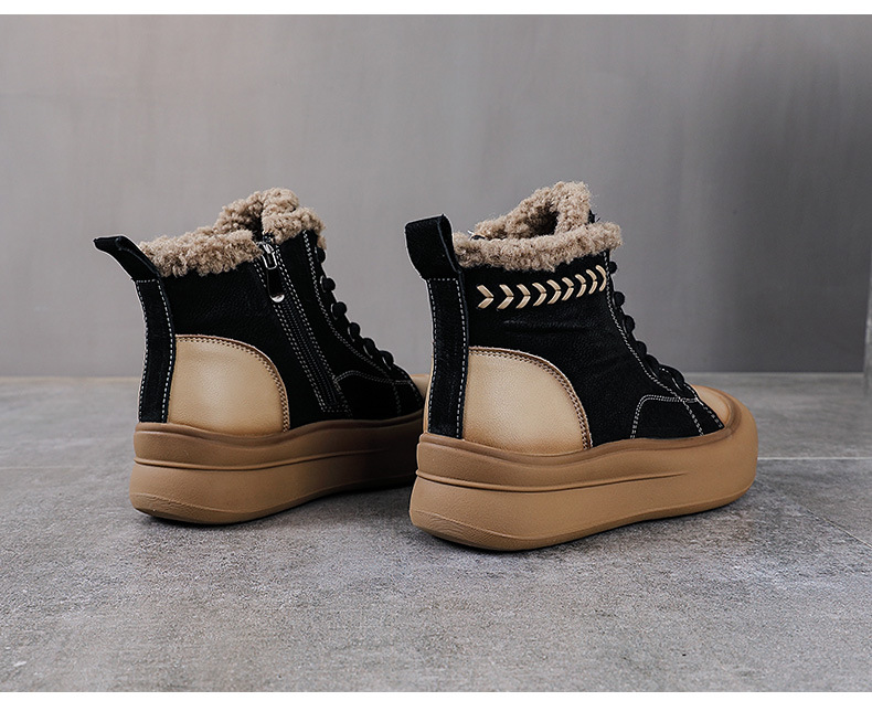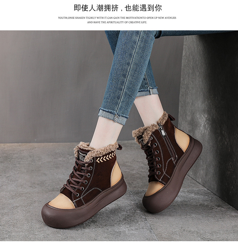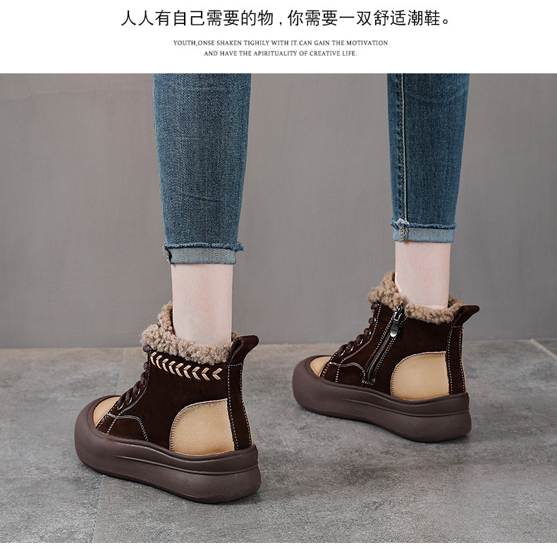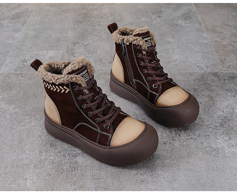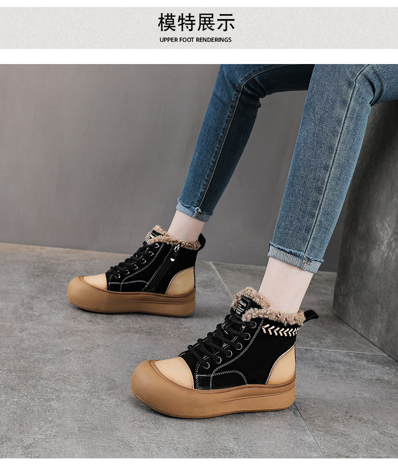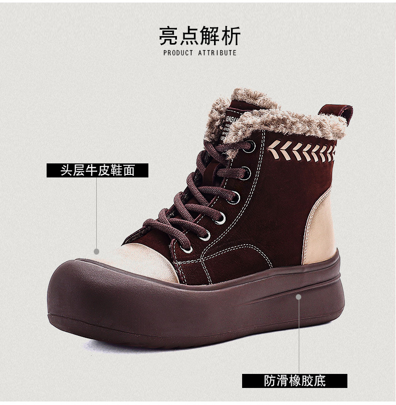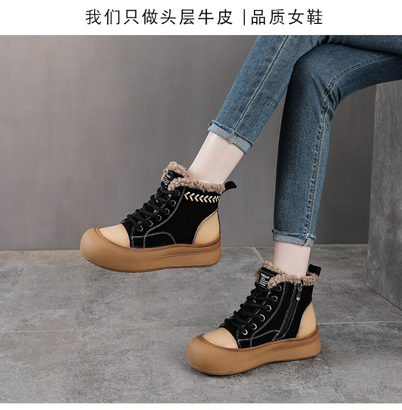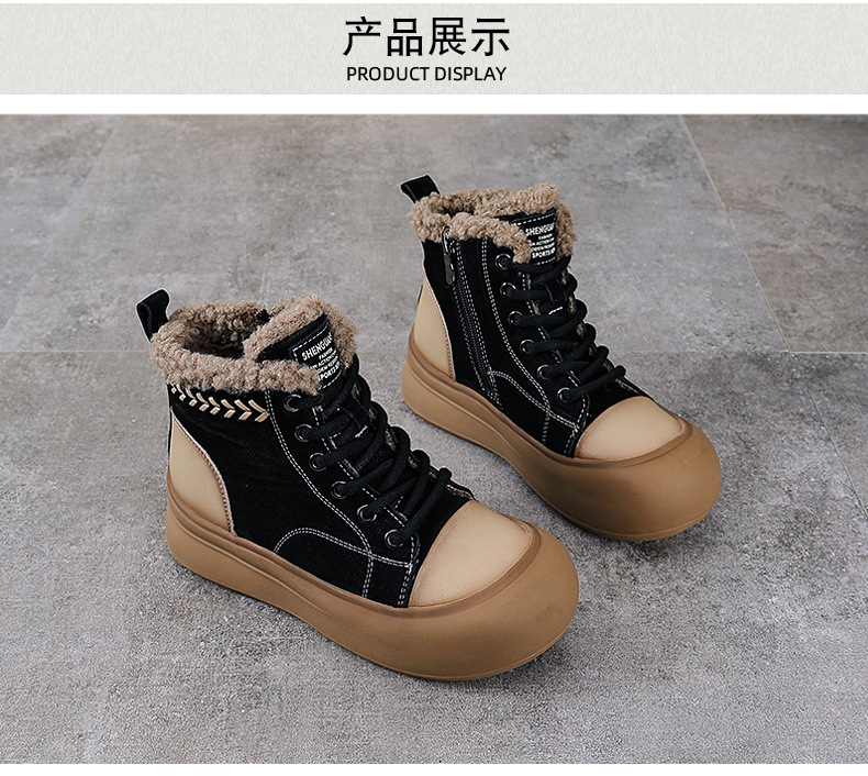 YR 2953复古拼色加绒保暖棉鞋高帮休闲板鞋轻奢短靴 商品图4