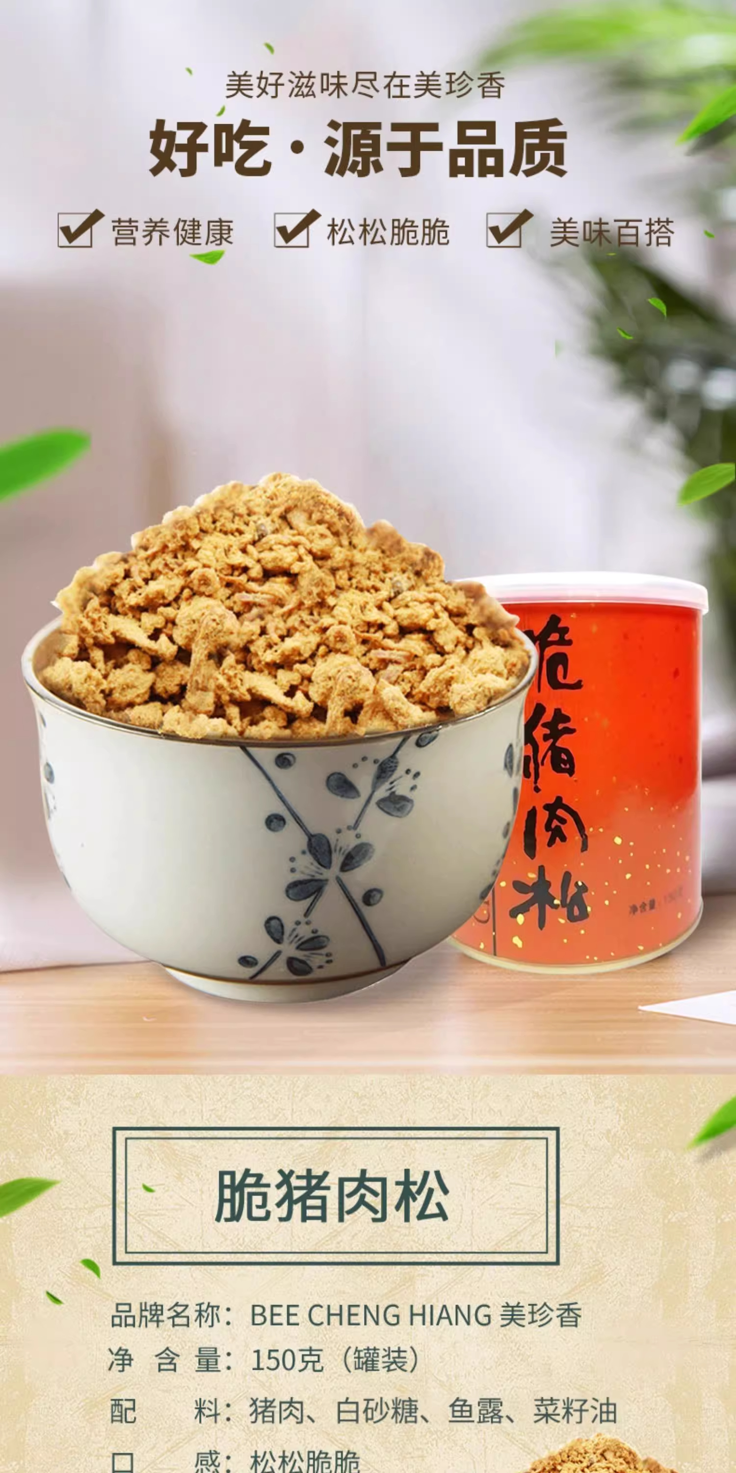 美珍香脆猪肉松150g新加坡特产寿司烘焙香脆可口健康零食罐装锁味