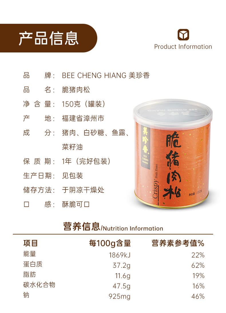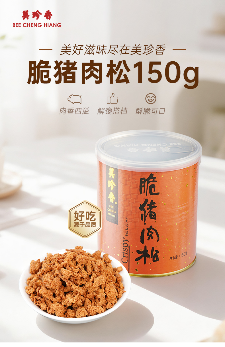 美珍香脆猪肉松150g新加坡特产寿司烘焙香脆可口即食零食罐装锁味