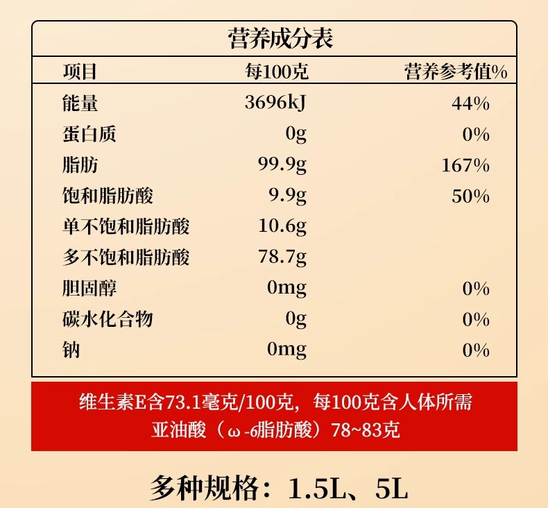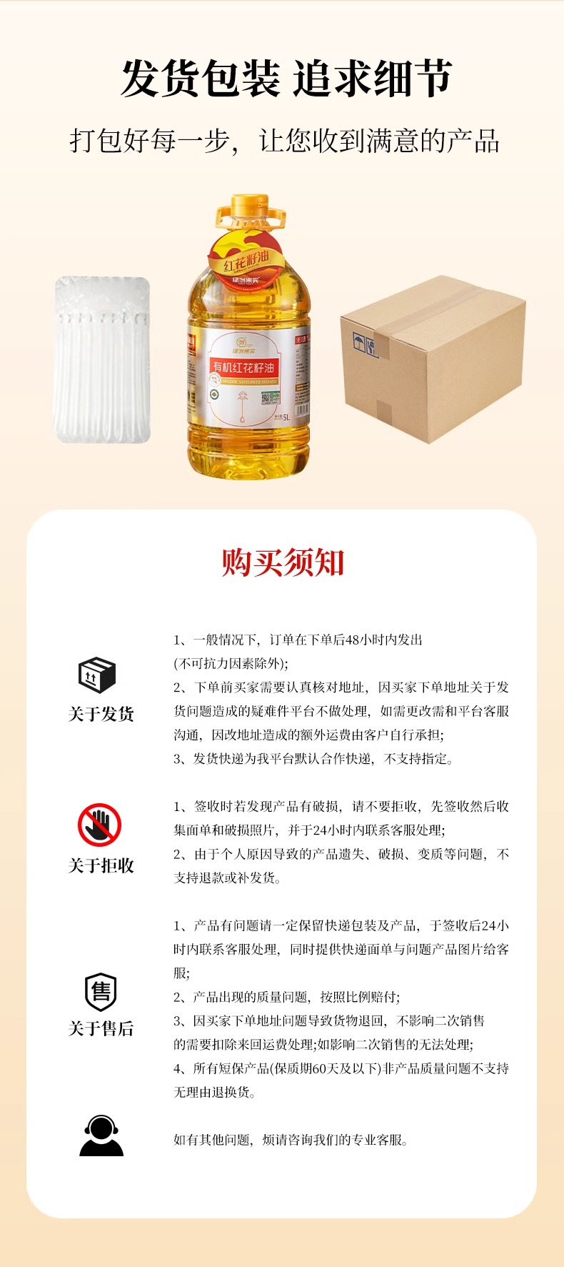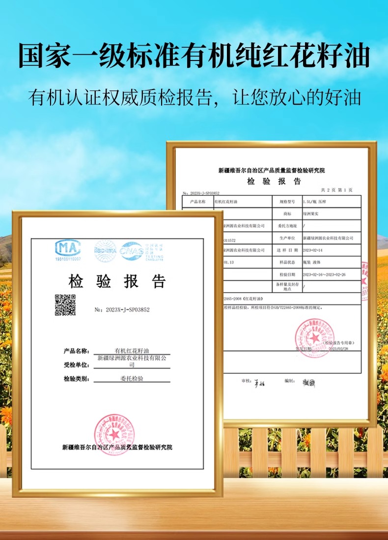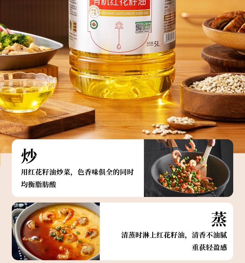 绿洲果实·有机红花籽油5L(一级)亚油酸含量≥78g
