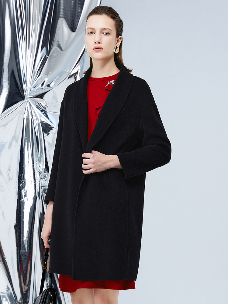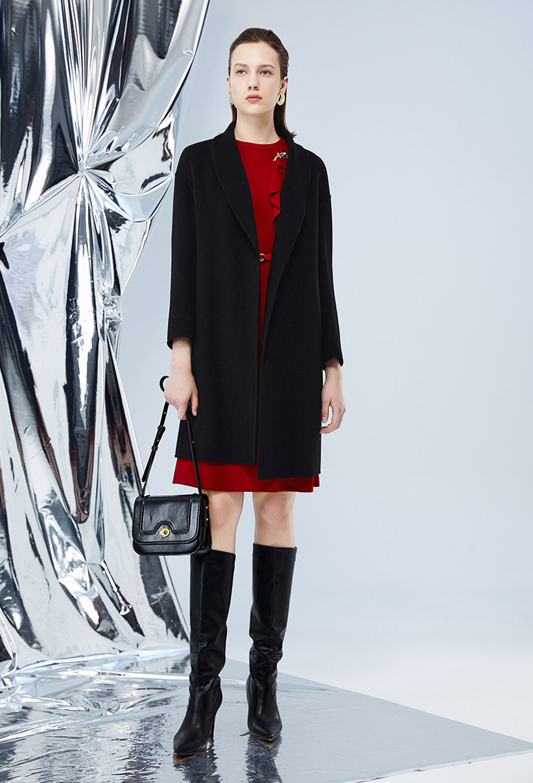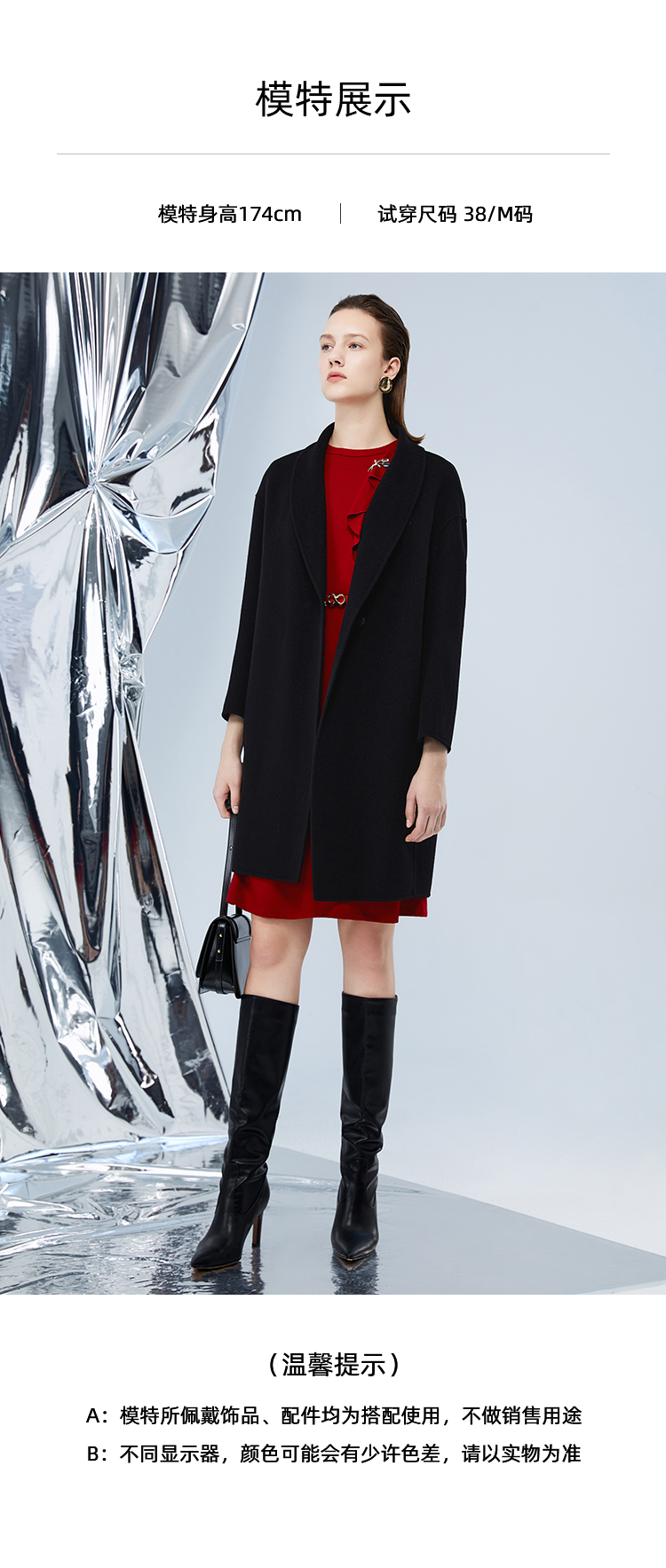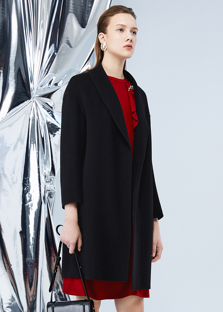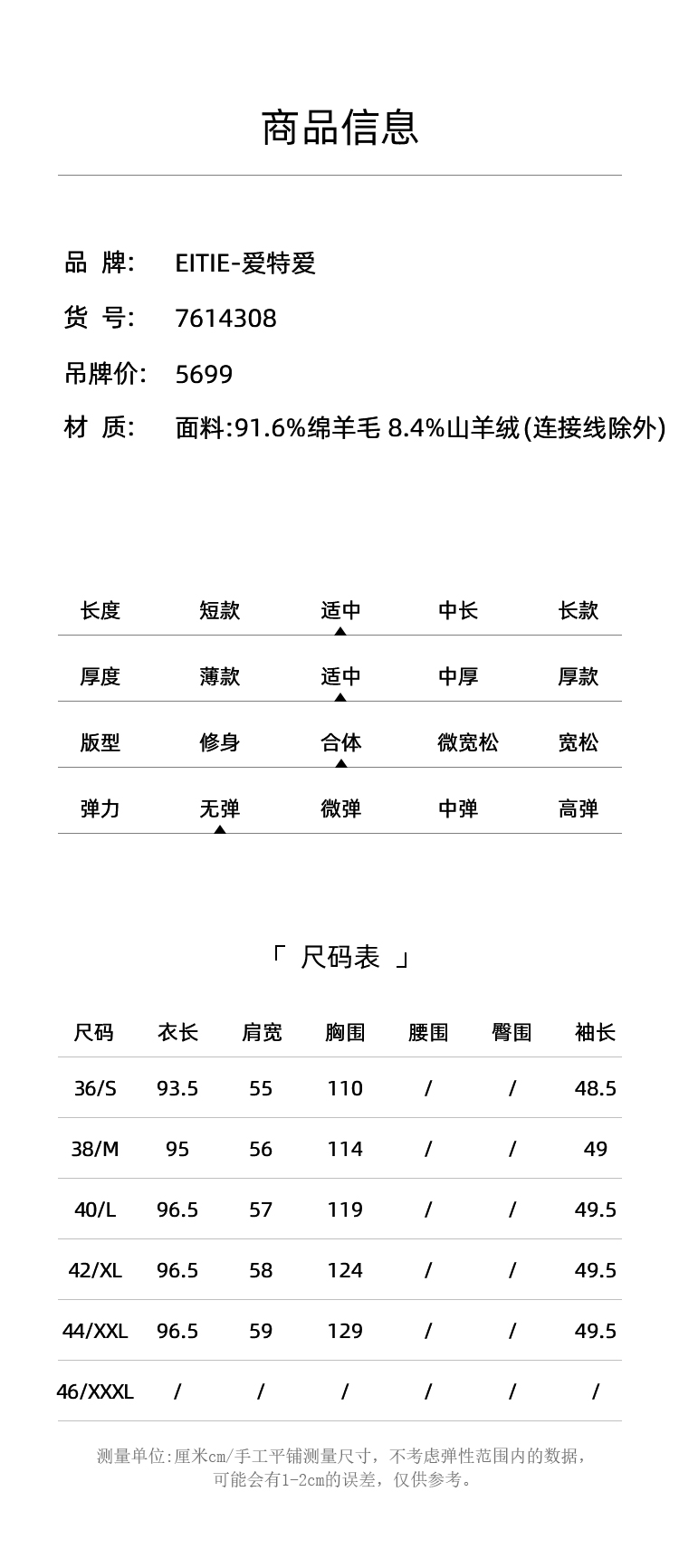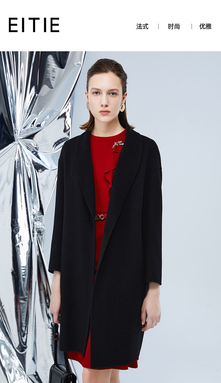 EITIE爱特爱冬装新款一粒扣中长款毛呢外套大衣7614308