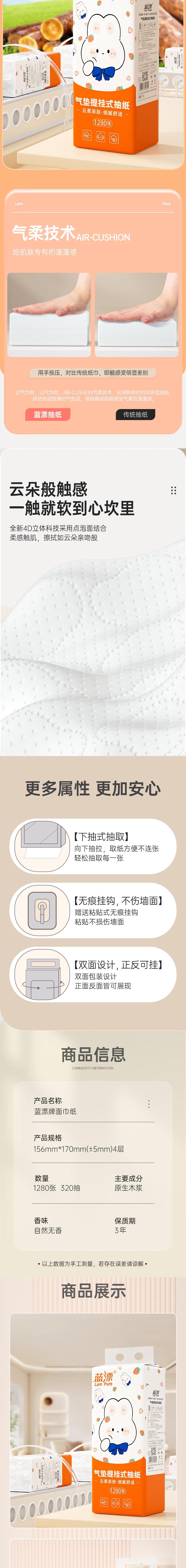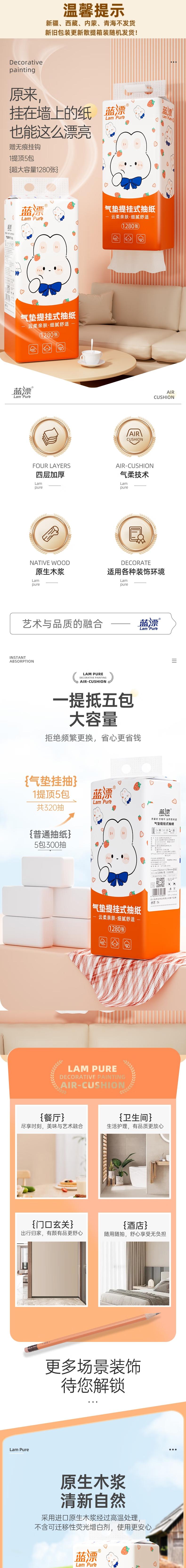 蓝漂 白色气垫挂式抽纸4层1280张*2提 LP0TC002T